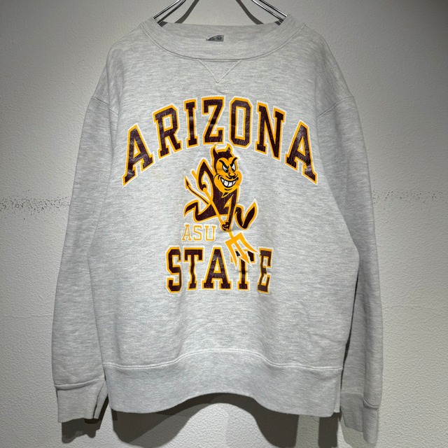 80年代のチャンピオンスウェット。 こちらは”ARIZONA STATE(アリゾナ州立大学)” プリントも綺麗に残っております。 コンパクトなサイズ感なのでジャストで着たい方におすすめです◎ *古着慣れしていない方、状態に特にこだわりのある方はご遠慮ください。 《発送について》 ・基本的にご購入されてから当日〜2日後 発送になります。 金曜日ご購入の場合 ・基本的に週明けの月曜日発送となります。 ご購入されたタイミング次第では、当日発送となります。 土日ご購入の場合 ・基本的に週明けの月曜日発送となります。 ご了承下さい。 【ブランド】 Champion チャンピオン 【カラー】 グレー、イエロー、エンジ 【素材】 コットン88% ポリエステル12% 【サイズ】 M 着丈 51cm 肩幅 44cm 身幅 47.5cm 袖丈 49cm 【CONDITION】 D ※プリント割れあり。 ※フロントプリント周り、左肩、バック、左裾に汚れあり。 ※左袖リブに破れあり。 【CONDITION RANK】 S:新品・未使用品 A:使用感やダメージがほぼ無いUSED品 B:多少の使用感があるUSED品 C:使用感があり、多少のダメージがあるUSED品 D:使用感があり、汚れなどのダメージがあるUSED品 《注意事項》 ※平置き採寸になりますので若干のずれが生じる場合がございます。予めご了承下さい。 ※商品はお使いのPCや携帯電話の環境や画質により、掲載画像の色味が実物と若干異なる場合がございます。 ※USED品の為、返品・交換・クレーム等は一切お受けできません。予めご了承下さい。 ※店頭でも販売しているアイテムのため、 同じタイミングで売れてしまう可能性がございます。その場合は店頭を優先させて頂きます。 ご了承ください。 ※イメージしていた物と違った、実寸を記載しているのにも関わらず、サイズが合わなかった等の対応致しかねます。十分にご検討、ご判断いただいてからご購入下さい。 ※used アイテムについては画像に写りきらない、しみ・色落ち・ほつれ・リペア等はデザインとして捉えていただくようご理解ください。 《新品商品の返品》 返品を受け付ける条件について 未開封・未使用のもので、商品ご到着後3営業日以内に電話連絡いただいたもののみお受けいたします。 返品の送料・手数料の負担について 初期不良の場合は当社が負担いたします。 お客様都合の場合は再発送料や返金振込手数料等はお客様負担になります。 返金について 返品商品到着確認後7営業日以内にご指定口座にお振込いたします。