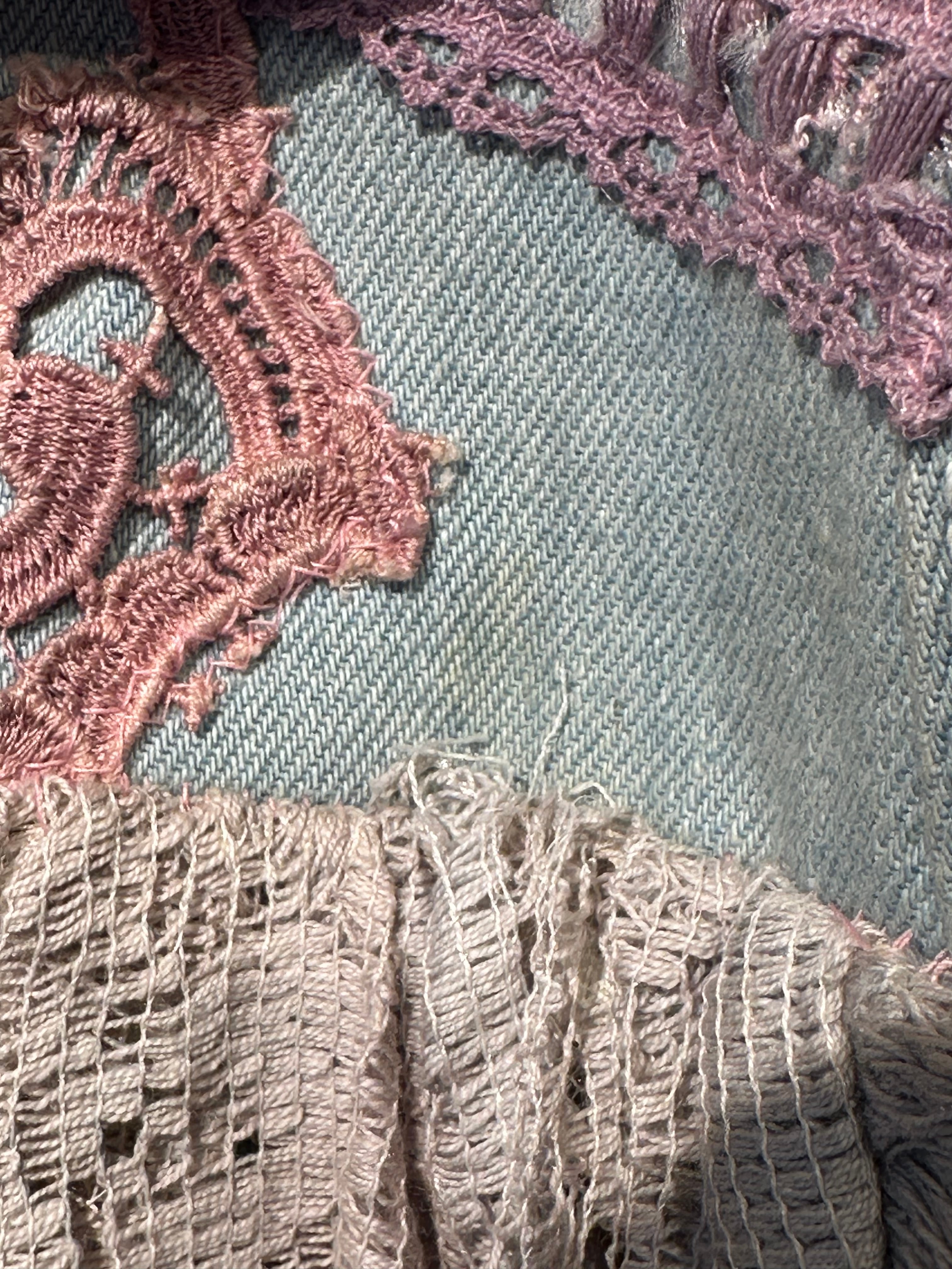 上部はデニム素材に、華やかな刺繍とビーズが施され、ヴィンテージ感たっぷり◎