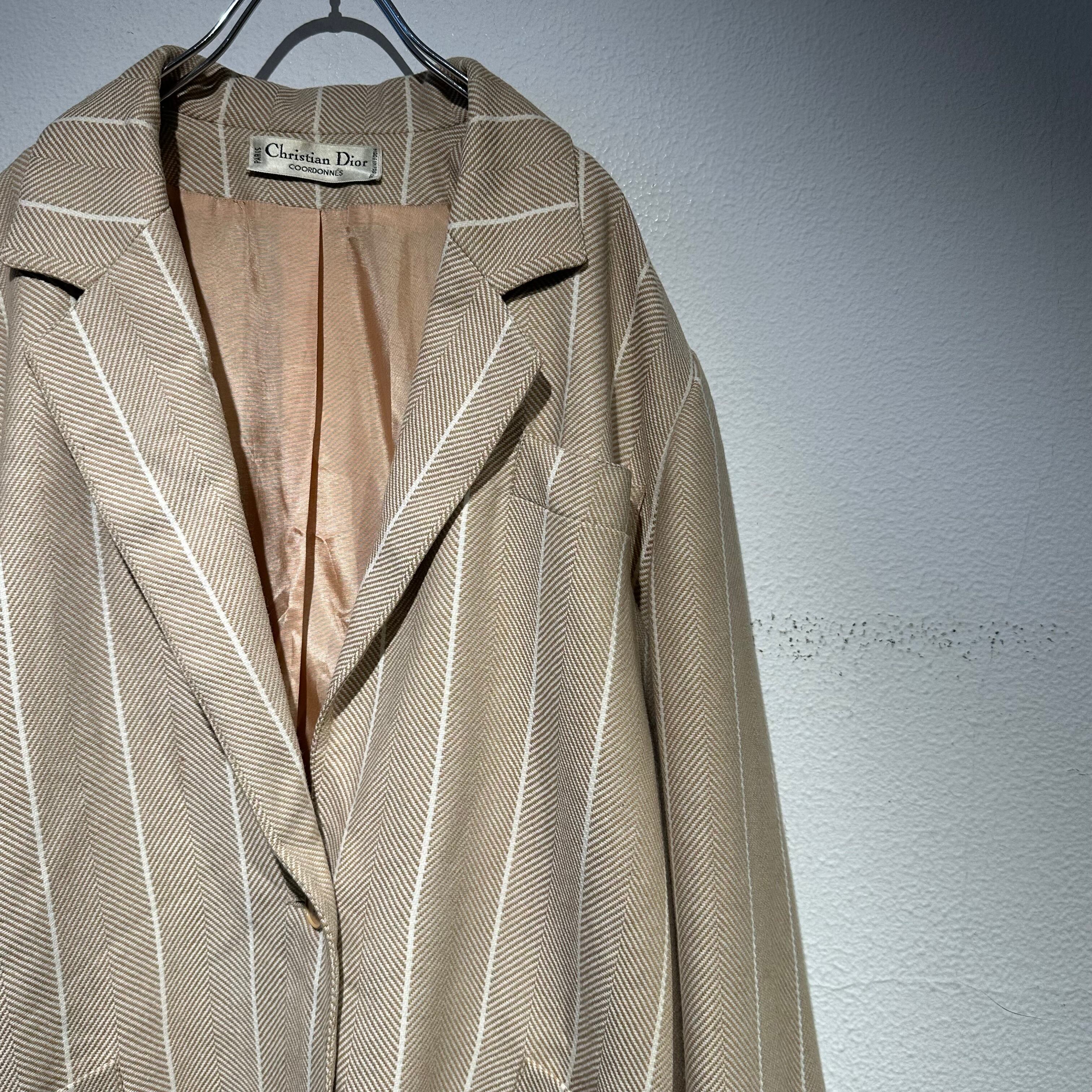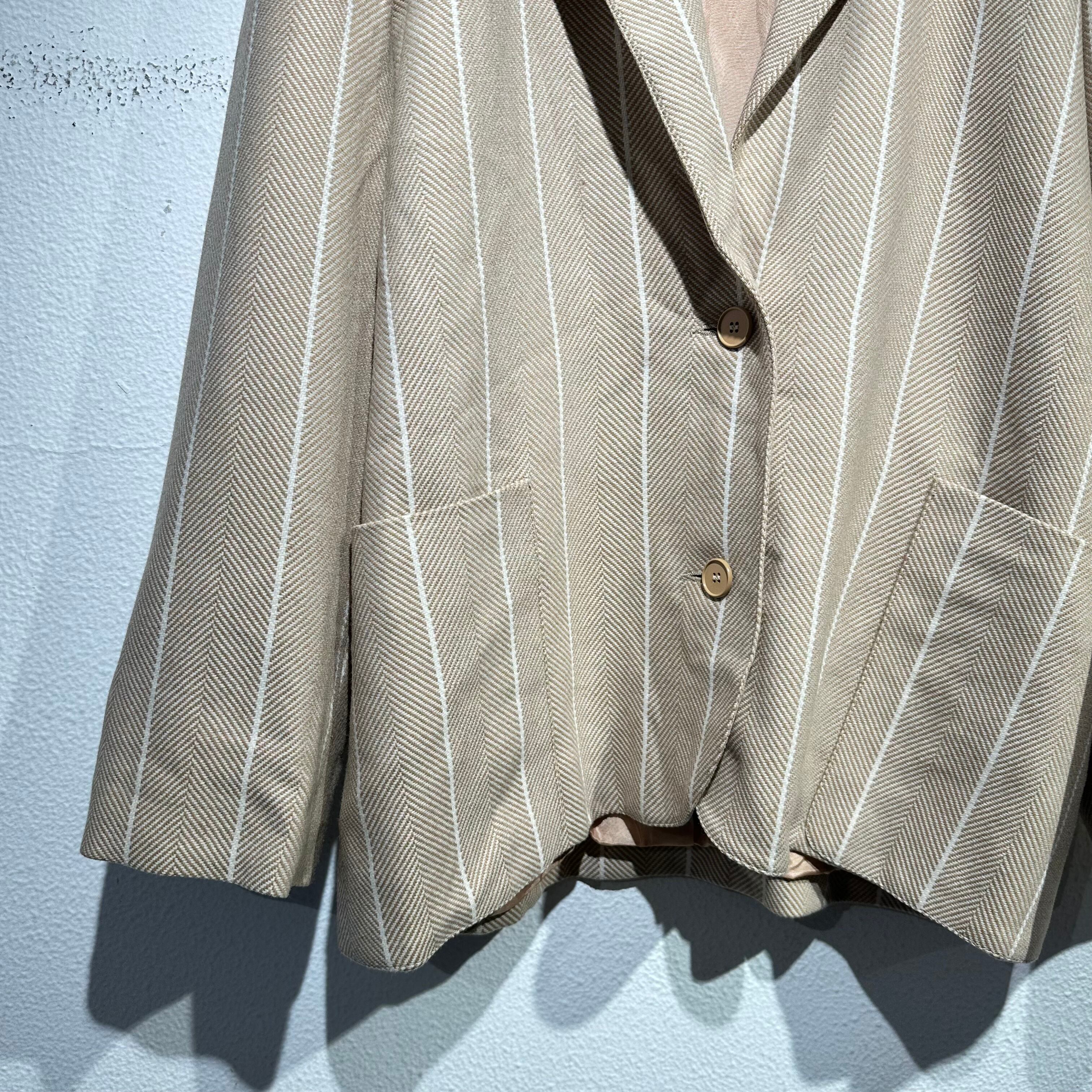 柔らかなベージュトーンに繊細なストライプ柄をあしらった1着です。