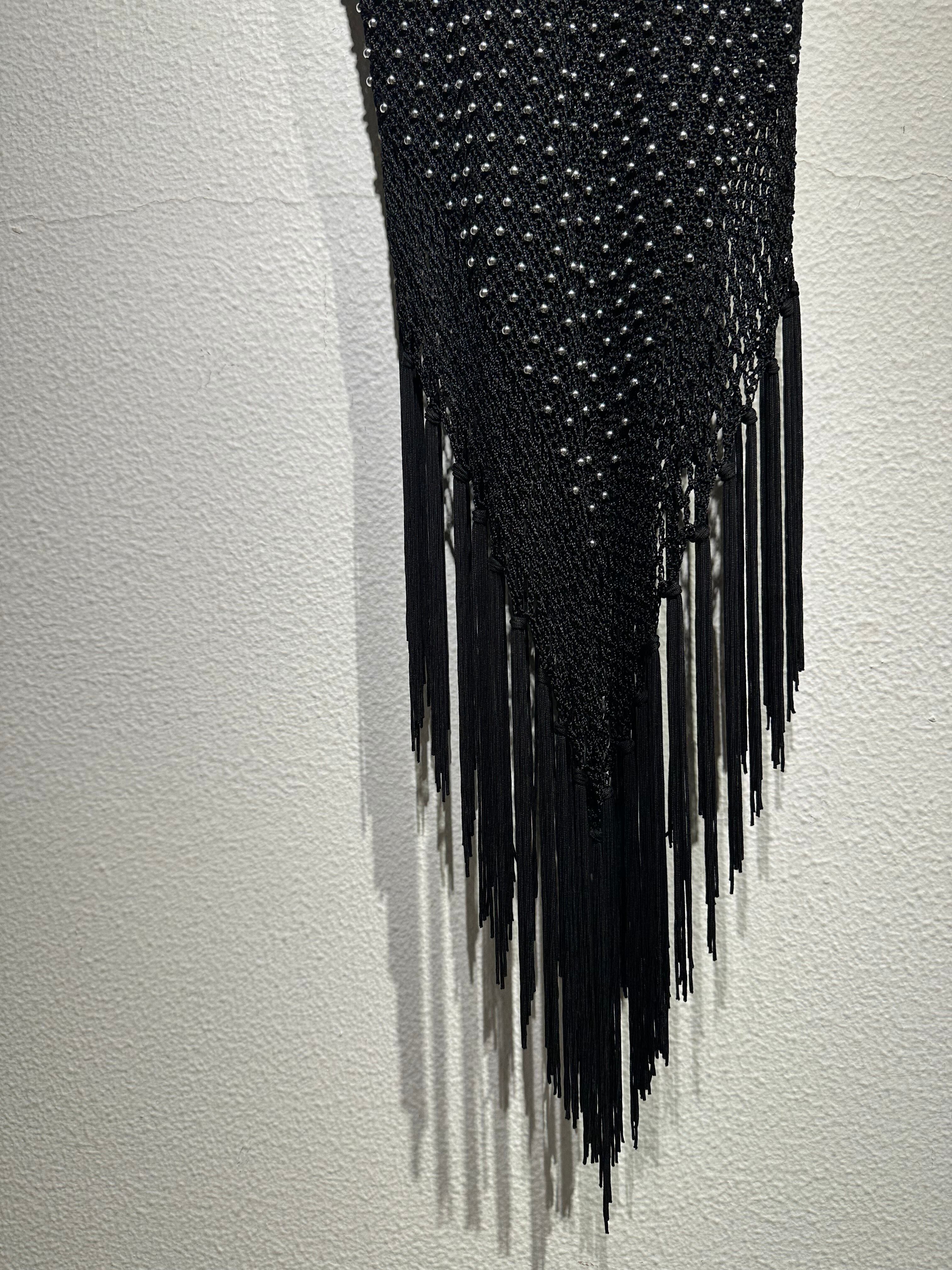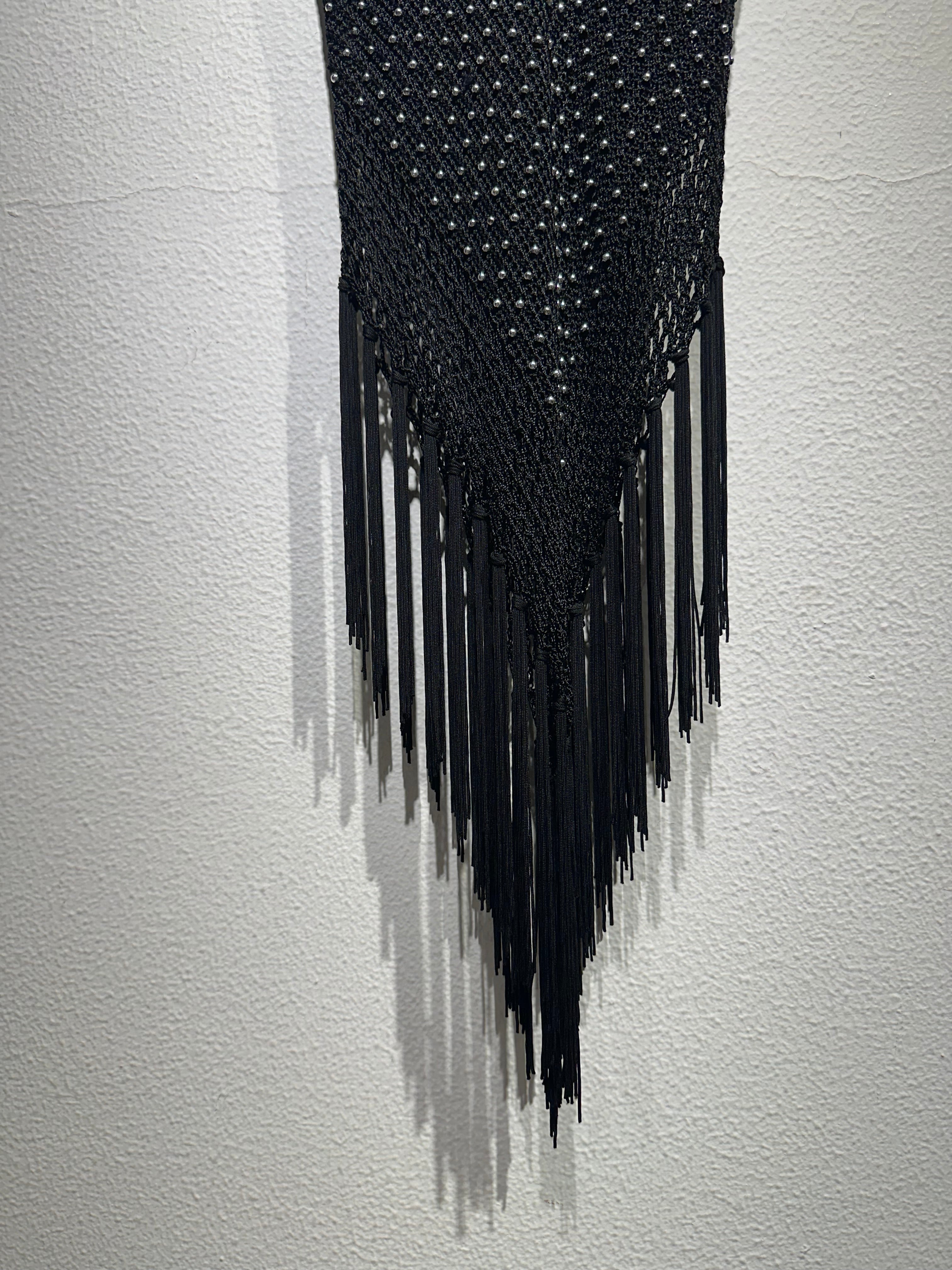 全体的なメタルビーズの装飾と裾のフリンジが可愛らしい1枚です◎