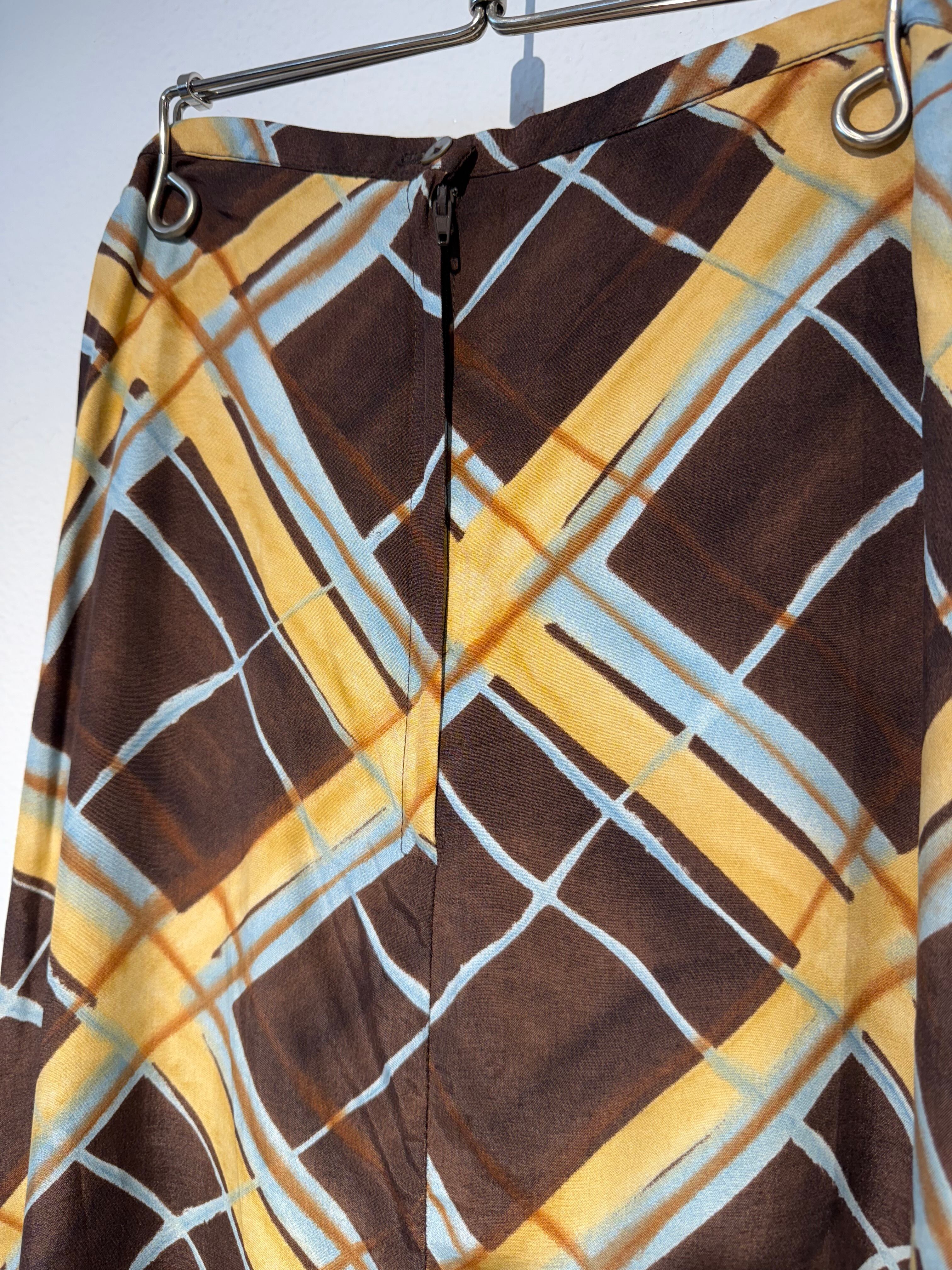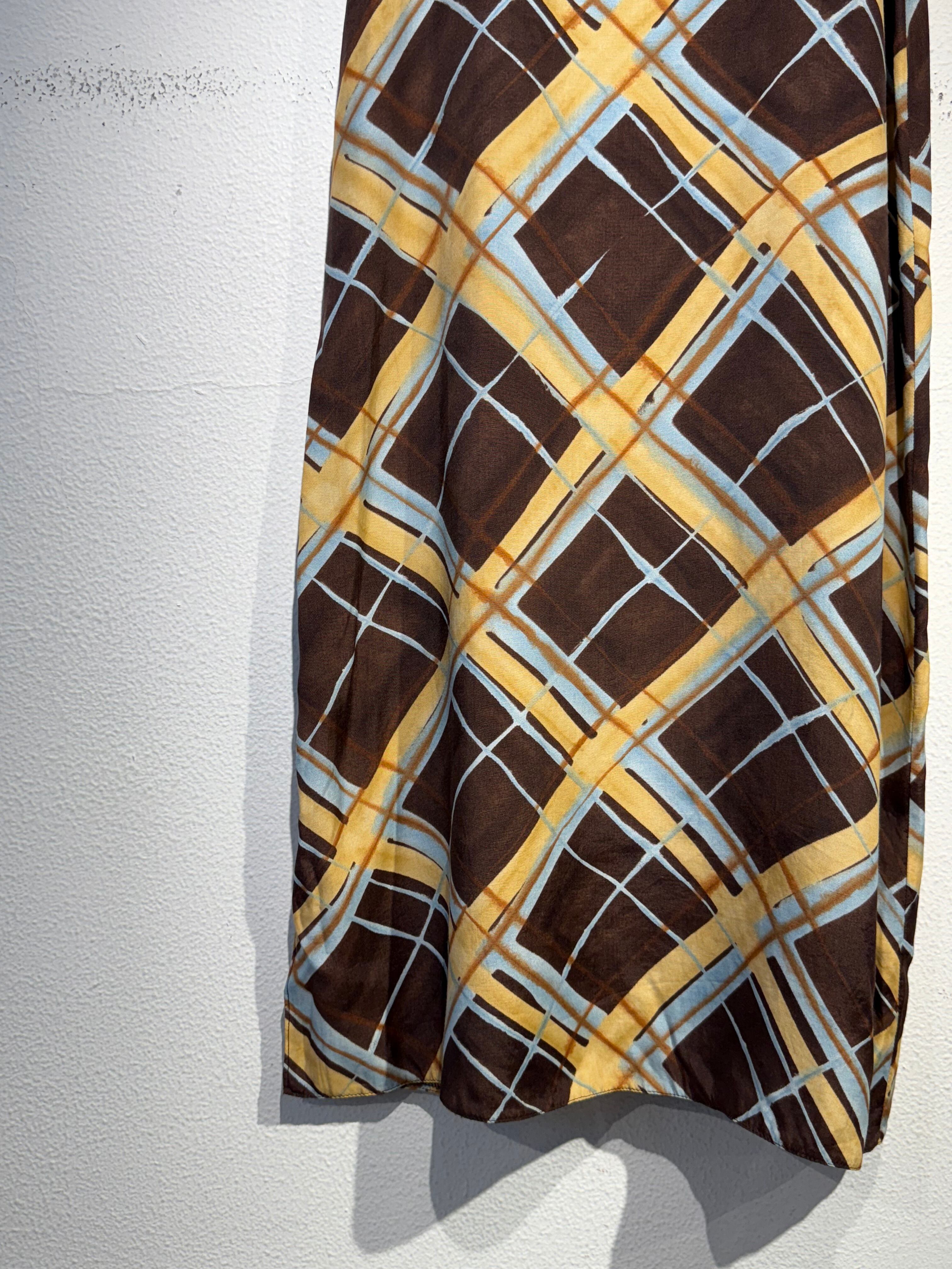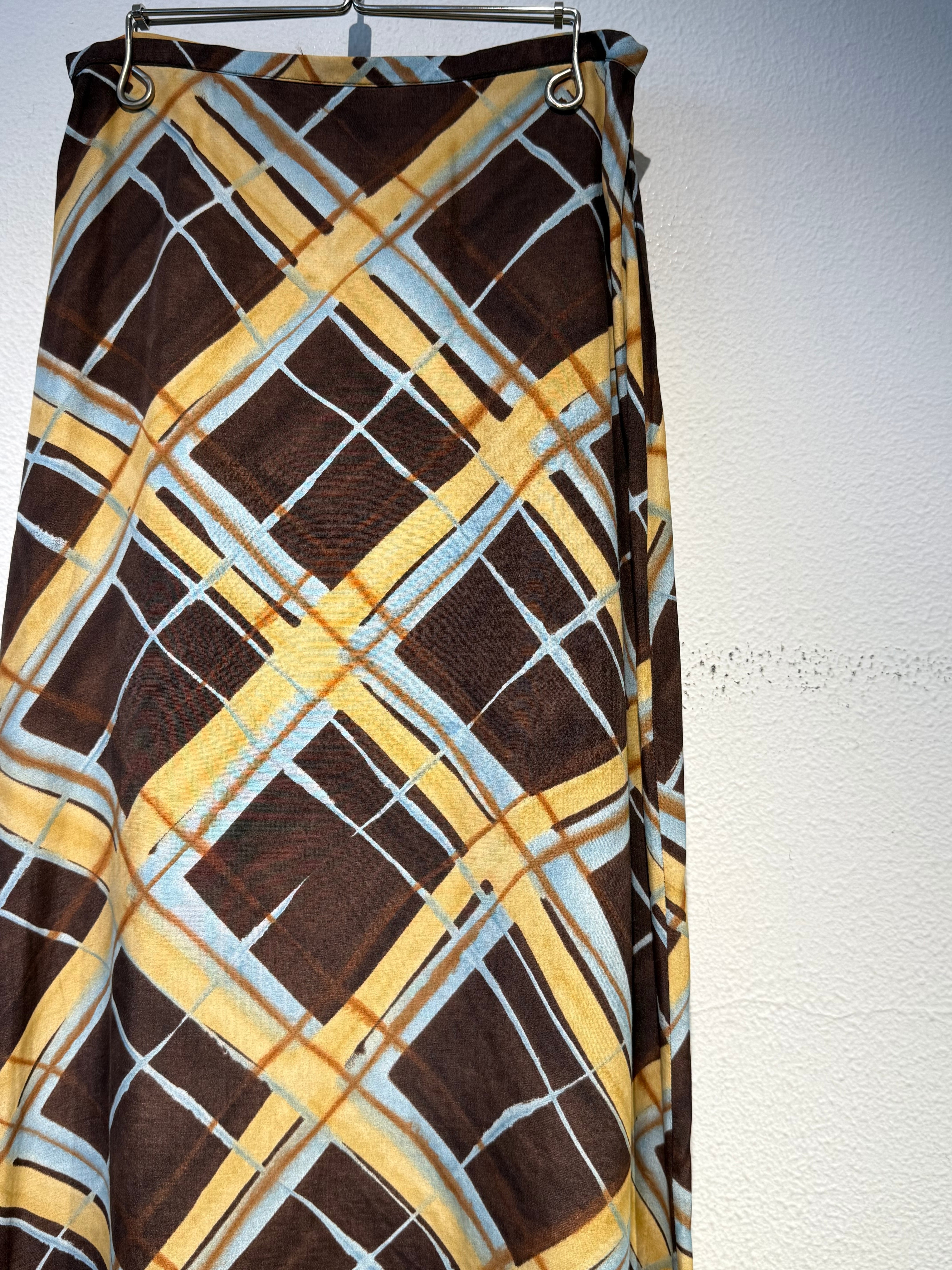こアシンメトリーなスリットが印象的な、アート感漂うプリントスカート。