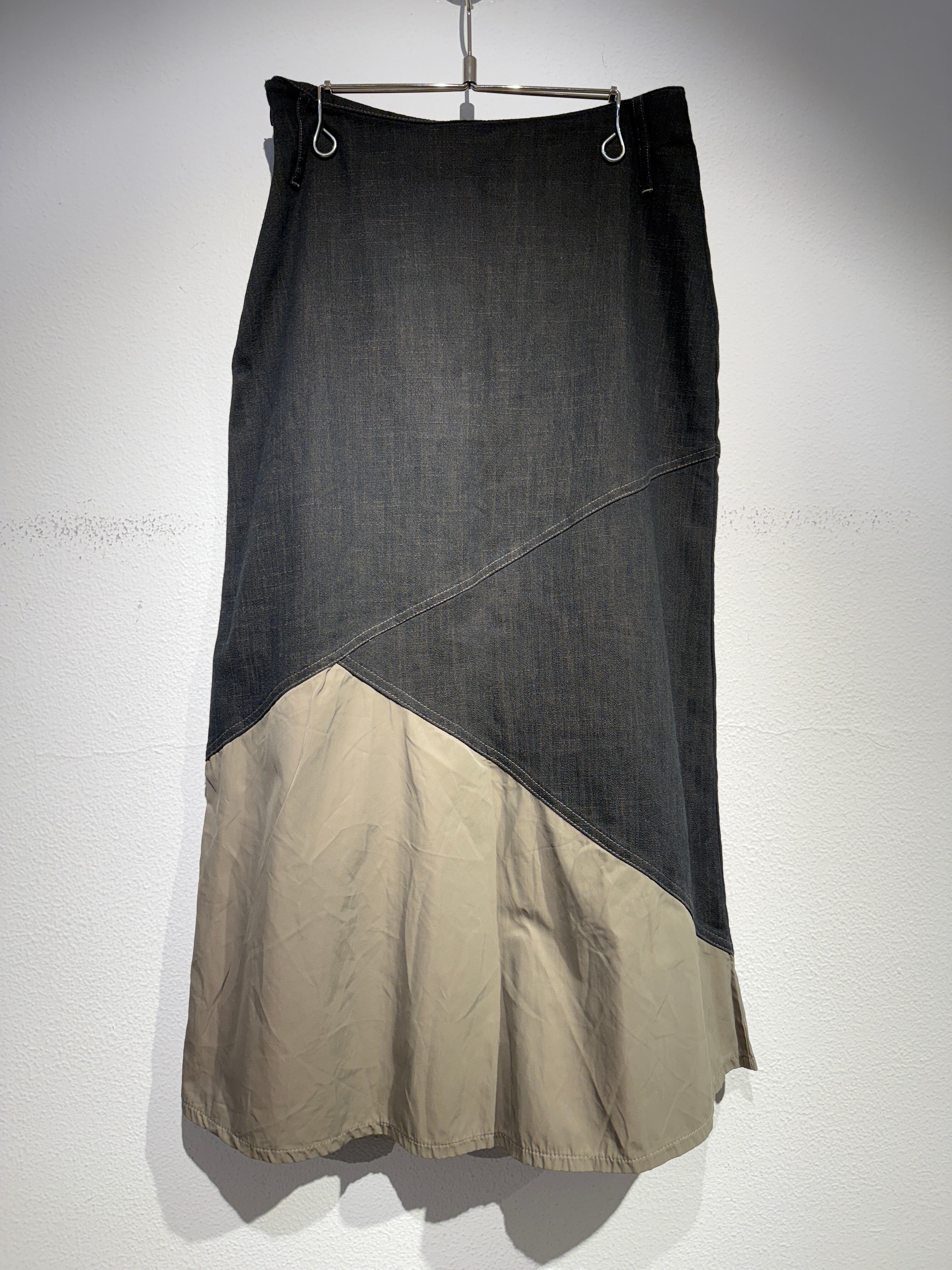 デニムとナイロンの切り替えデザインが可愛らしいスカート。