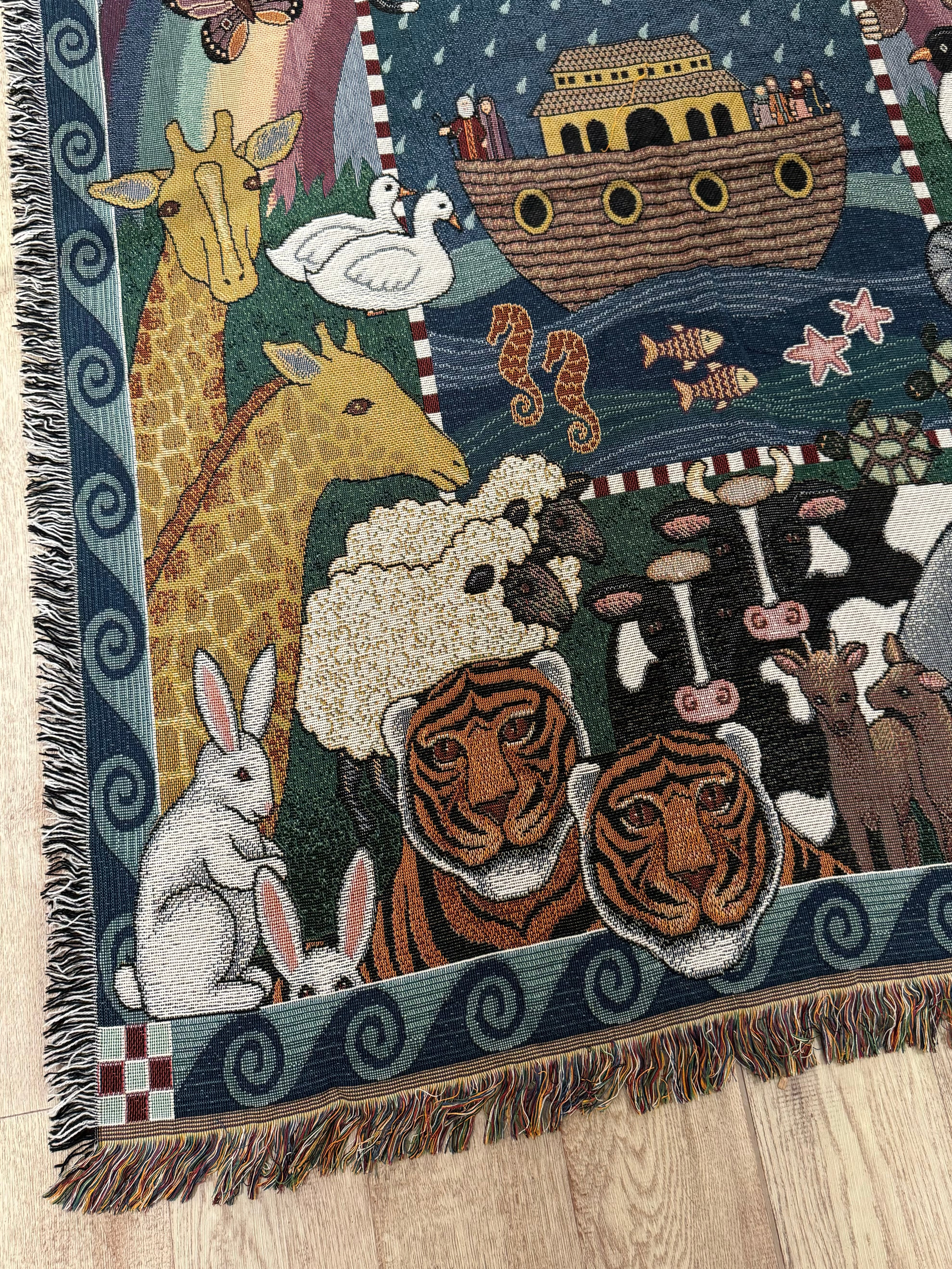 たくさんの動物達が描かれたラグ。