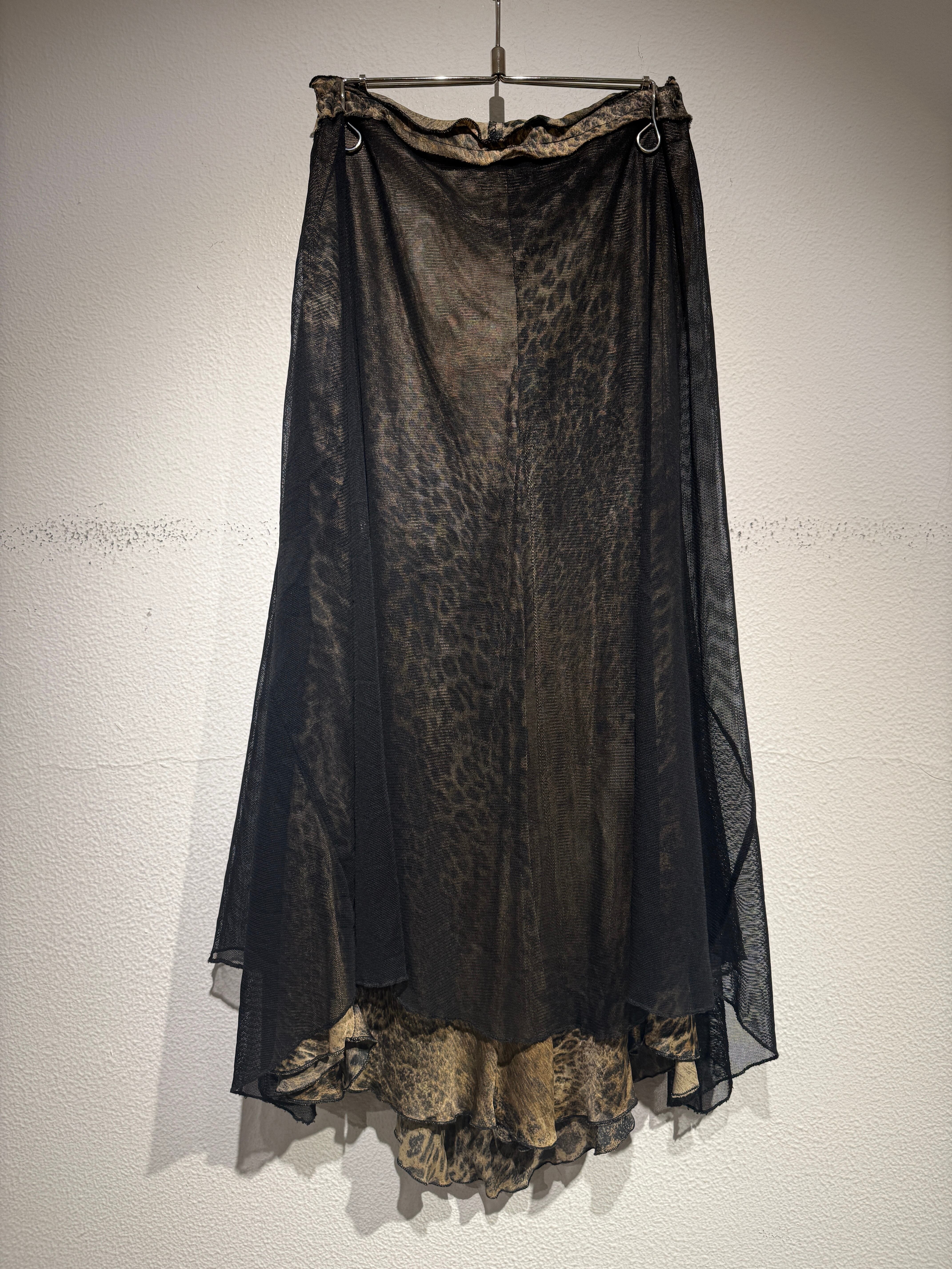 レオパードのベースの上にシアー素材が掛かっており、フレアシルエットなので歩くたびにふわっと広がる可愛らしい1着です。