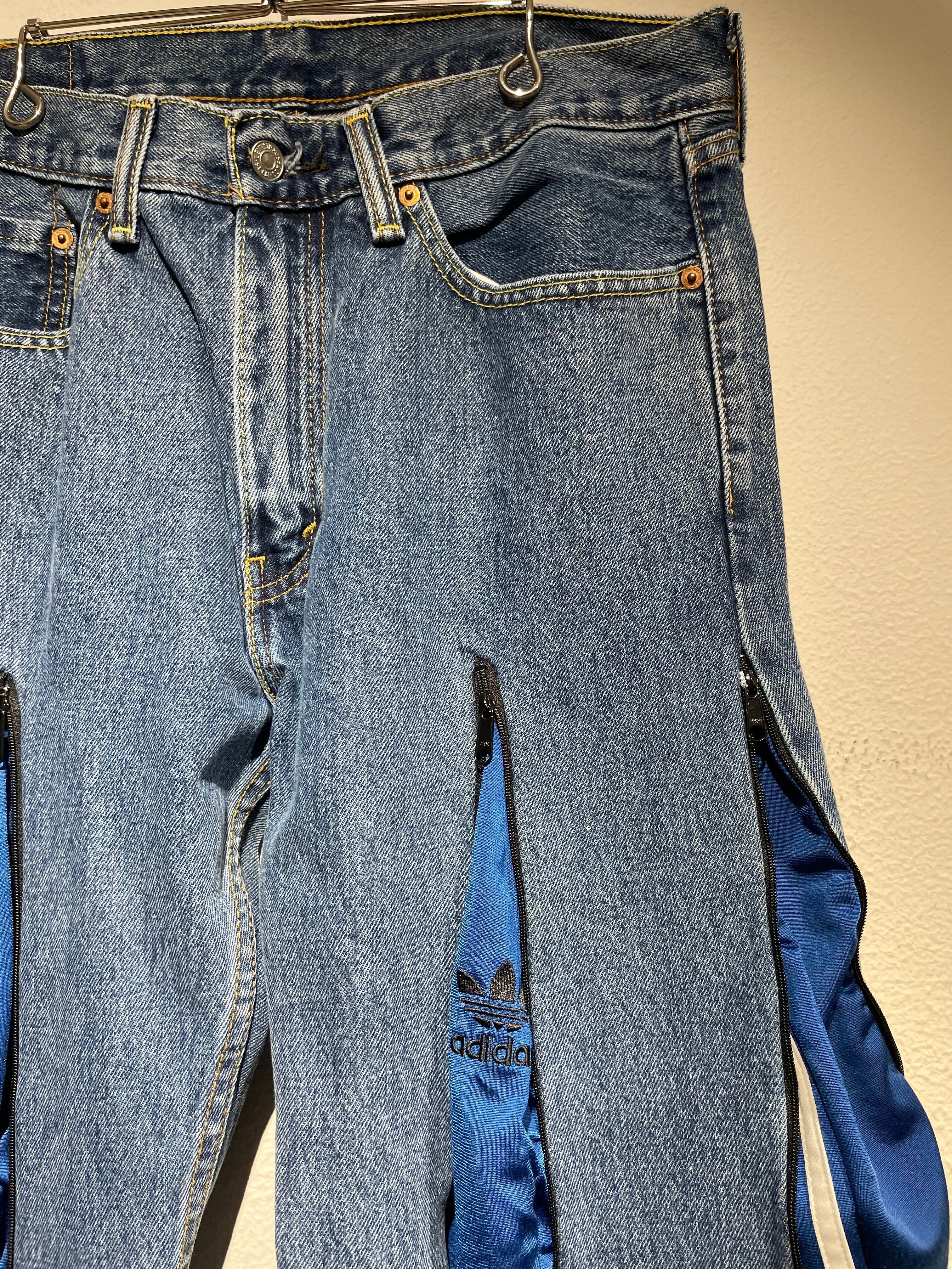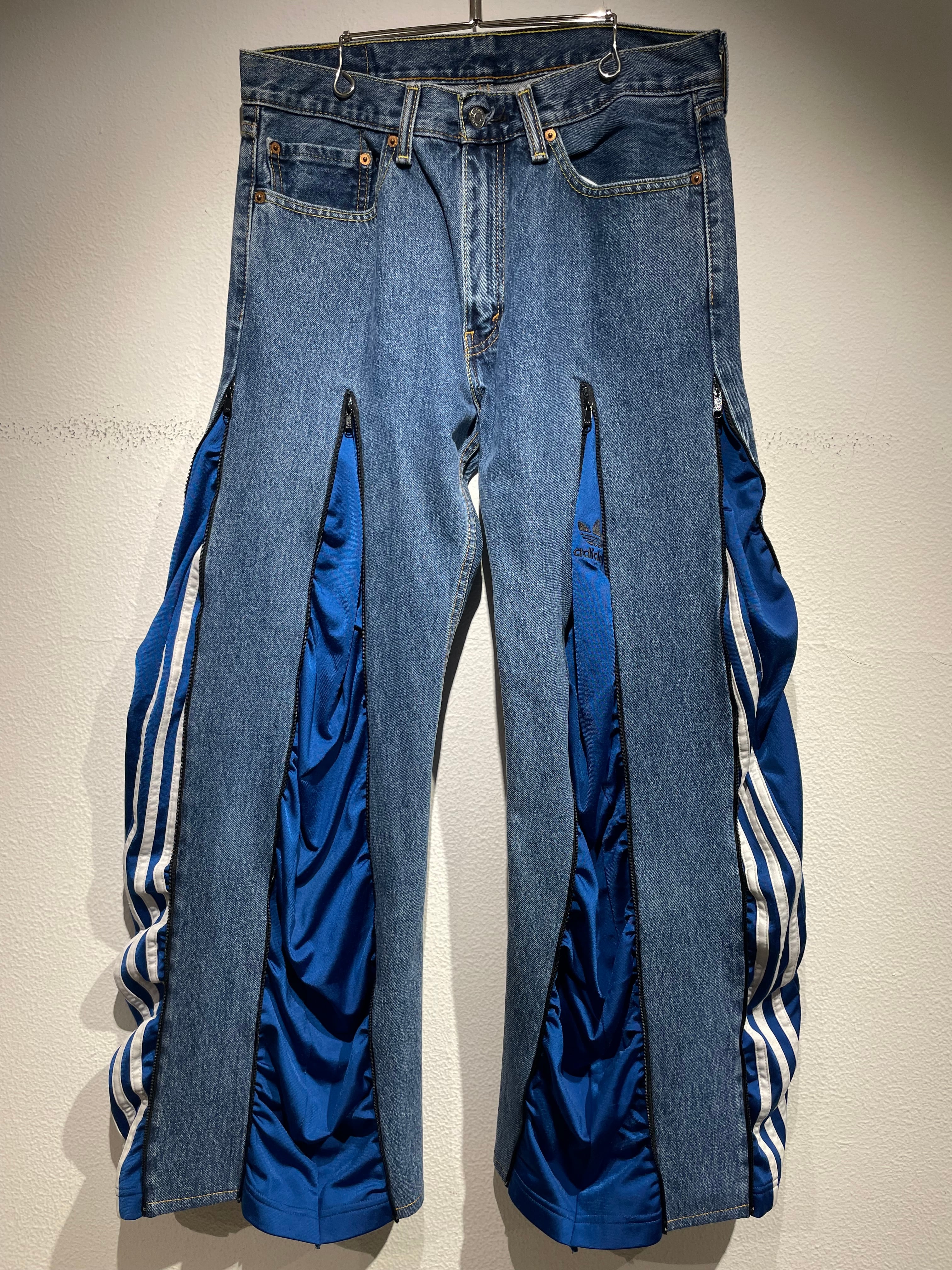 リーバイス×トラックパンツをドッキングしたリメイクパンツ。