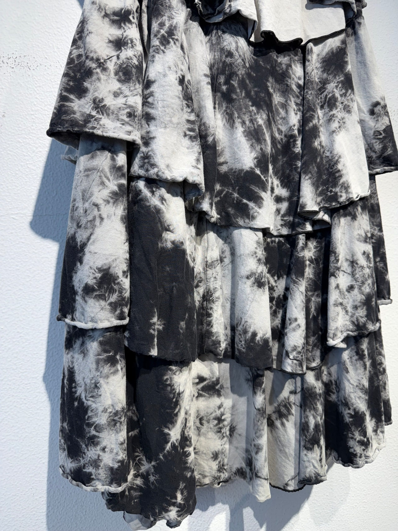 裾にかけて重なり合うフレアが立体的な動きを生み出し、歩くたびに揺れるシルエットが可愛らしいです◎