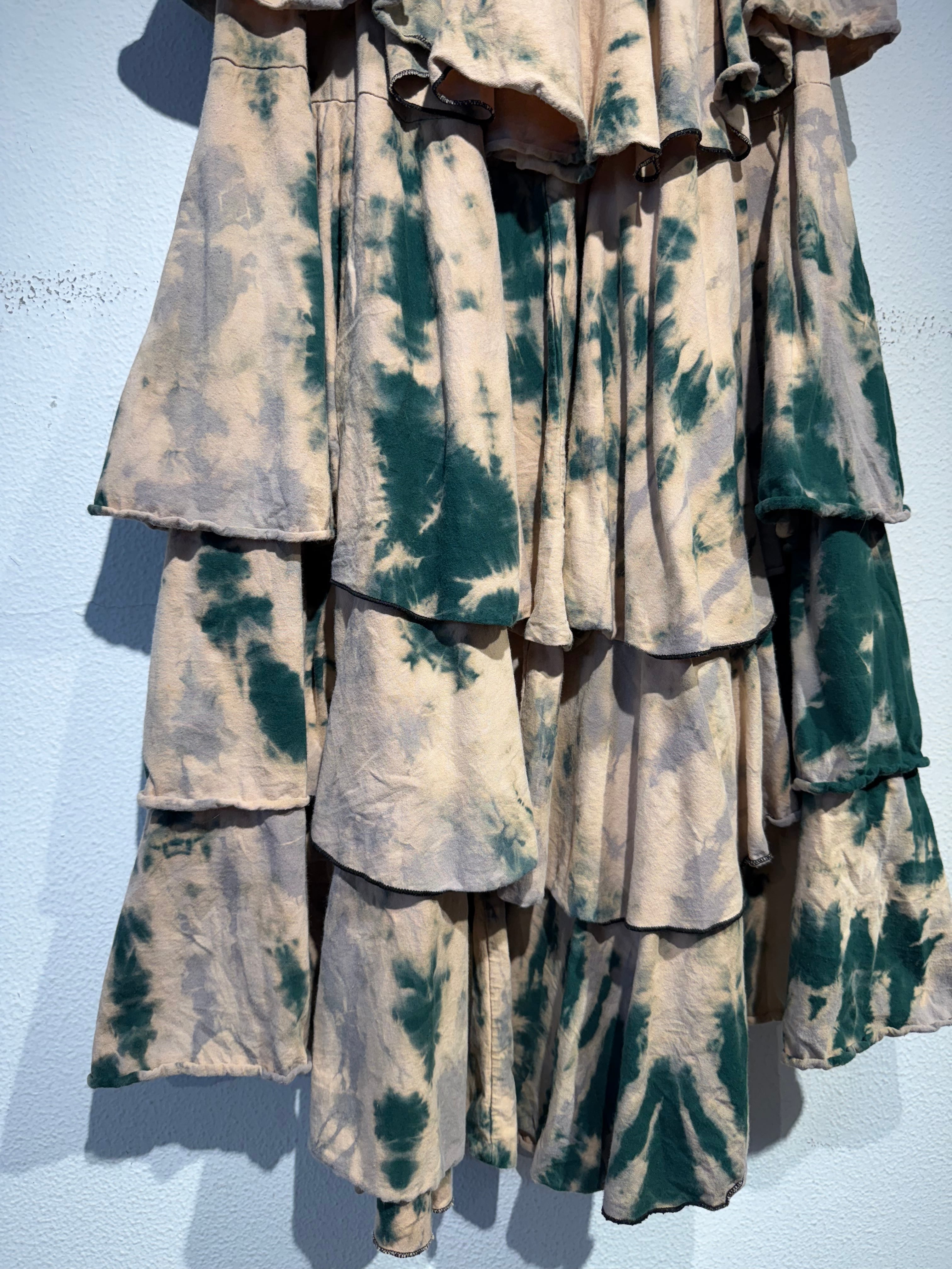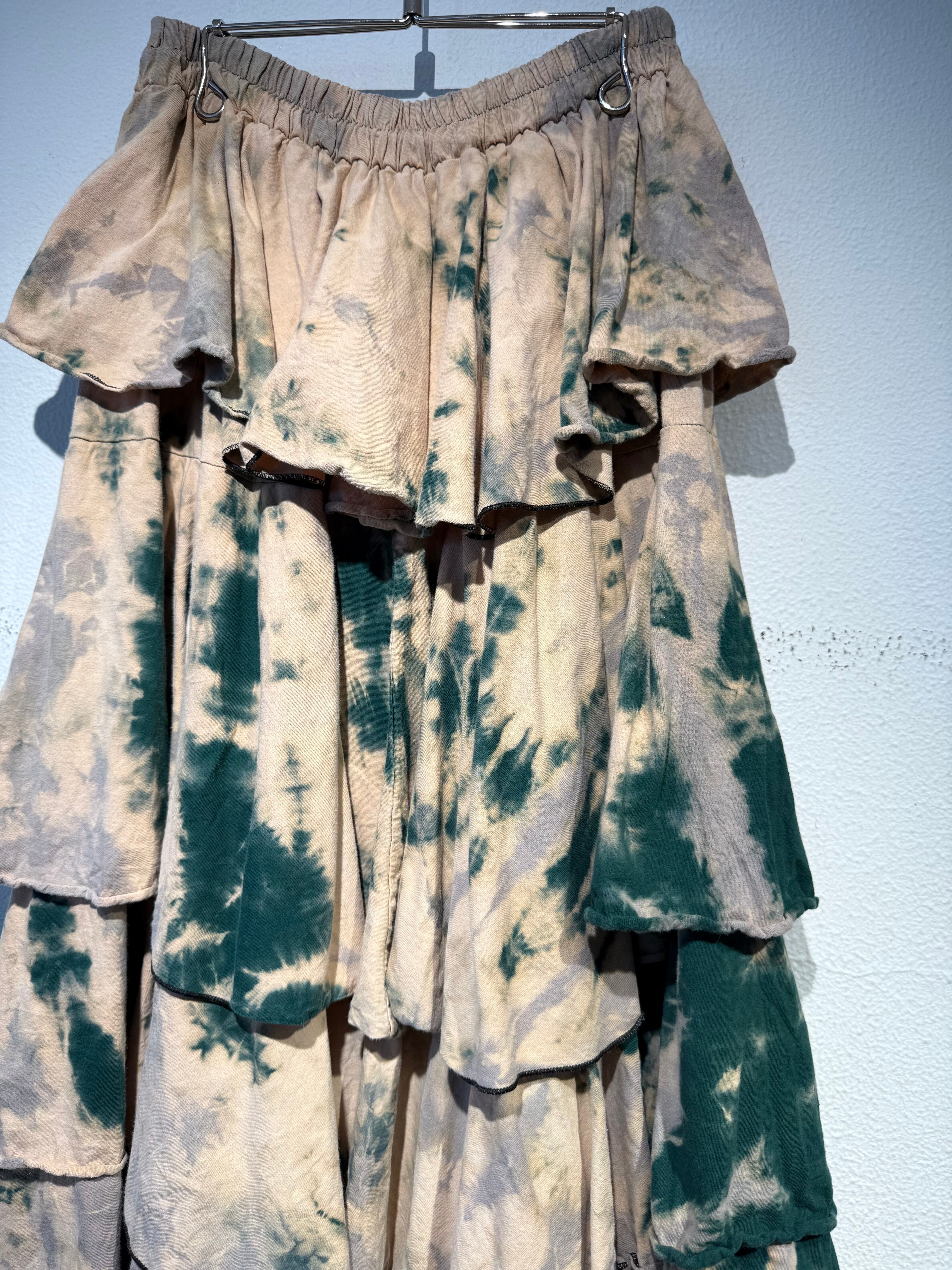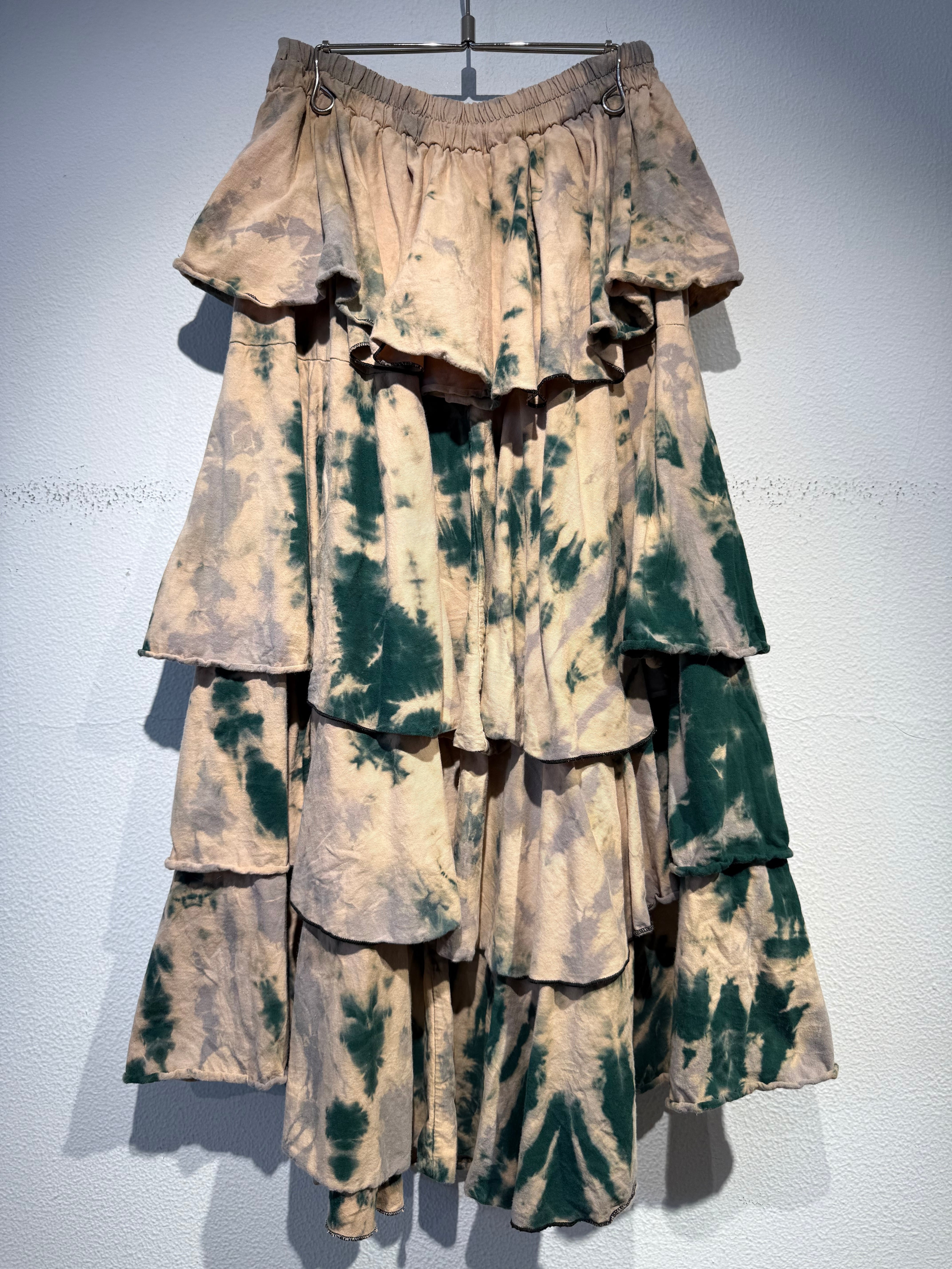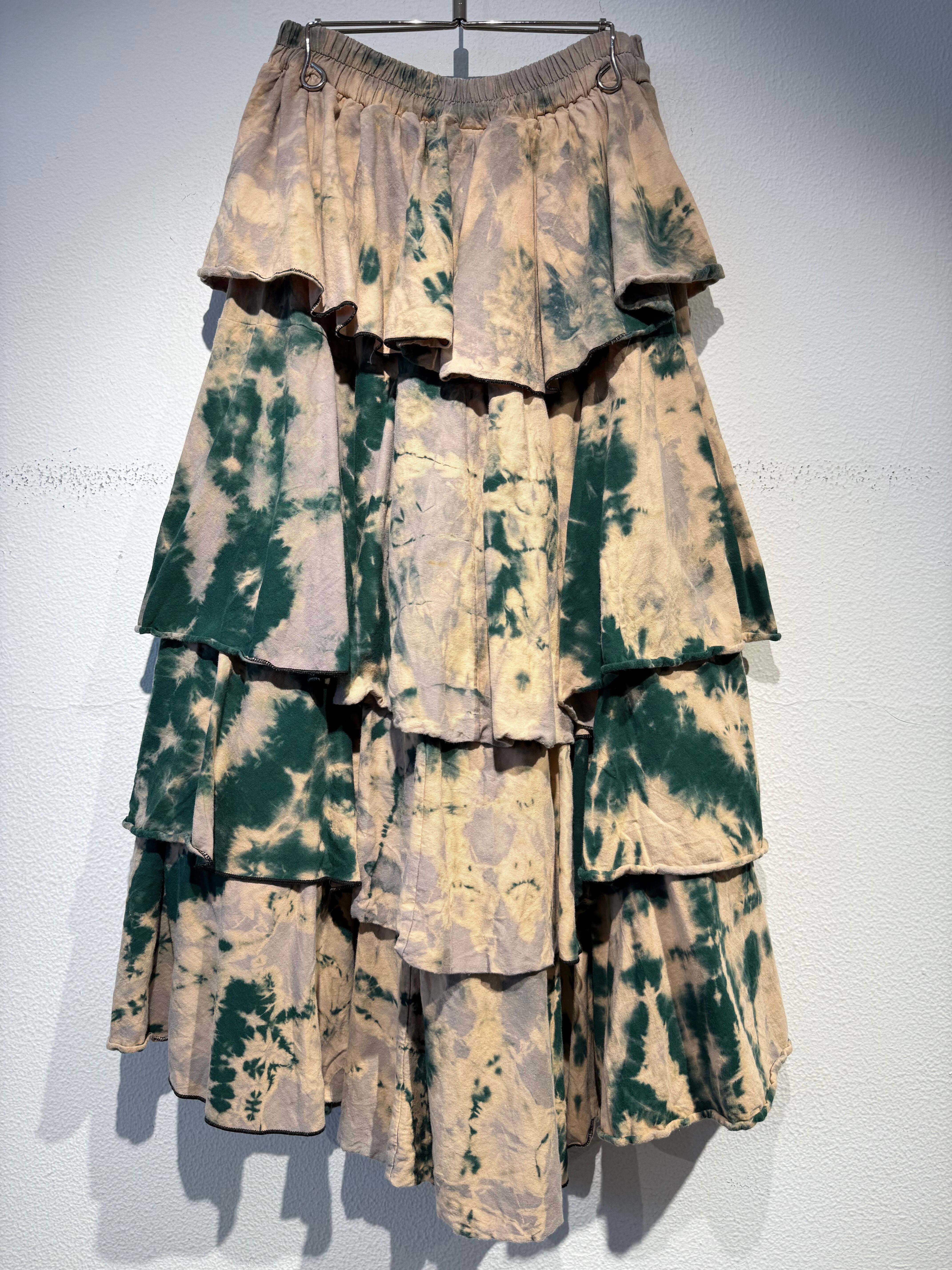 ウエストはゴム仕様でリラックスした穿き心地。裾にかけて重なり合うフレアが立体的な動きを生み出し、歩くたびに揺れるシルエットが◎