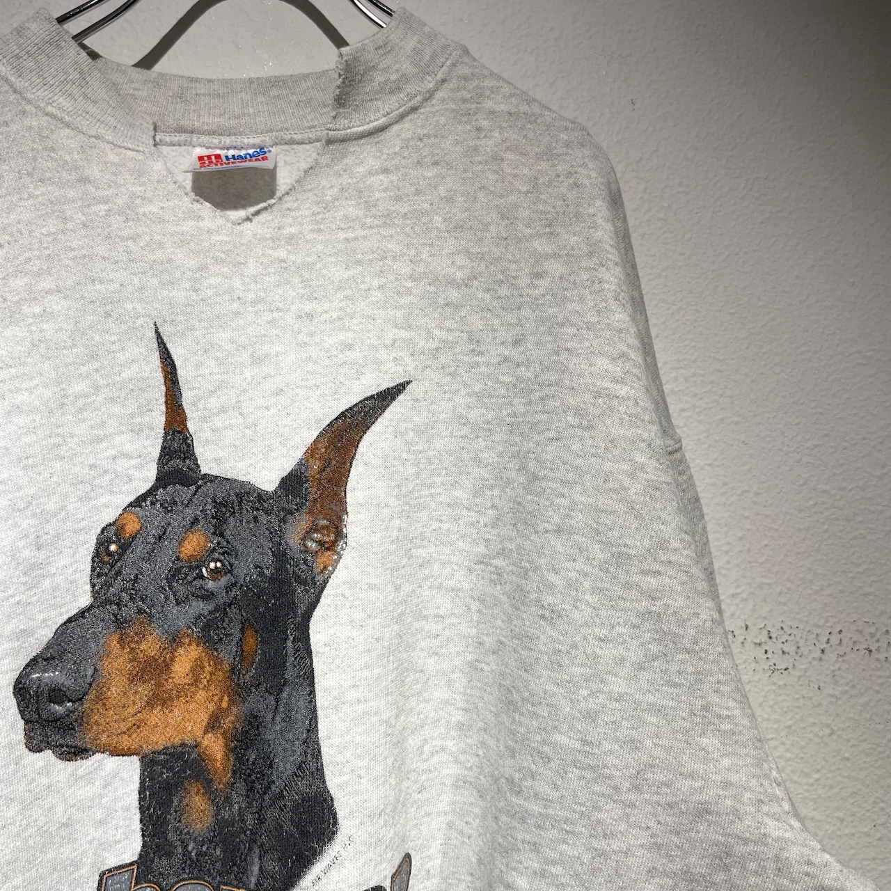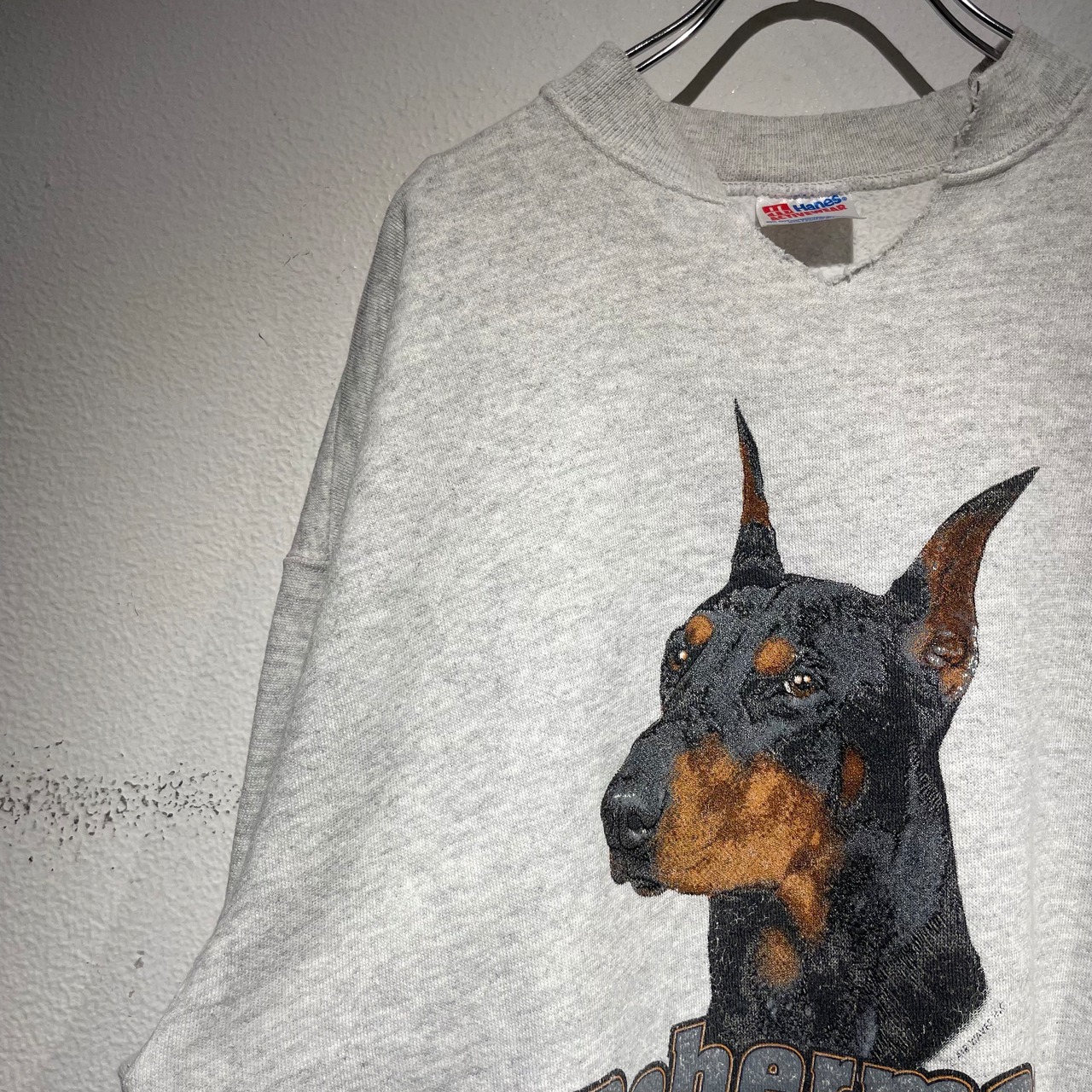 フロントに大きく描かれたドーベルマンプリントが目を惹くスウェット。