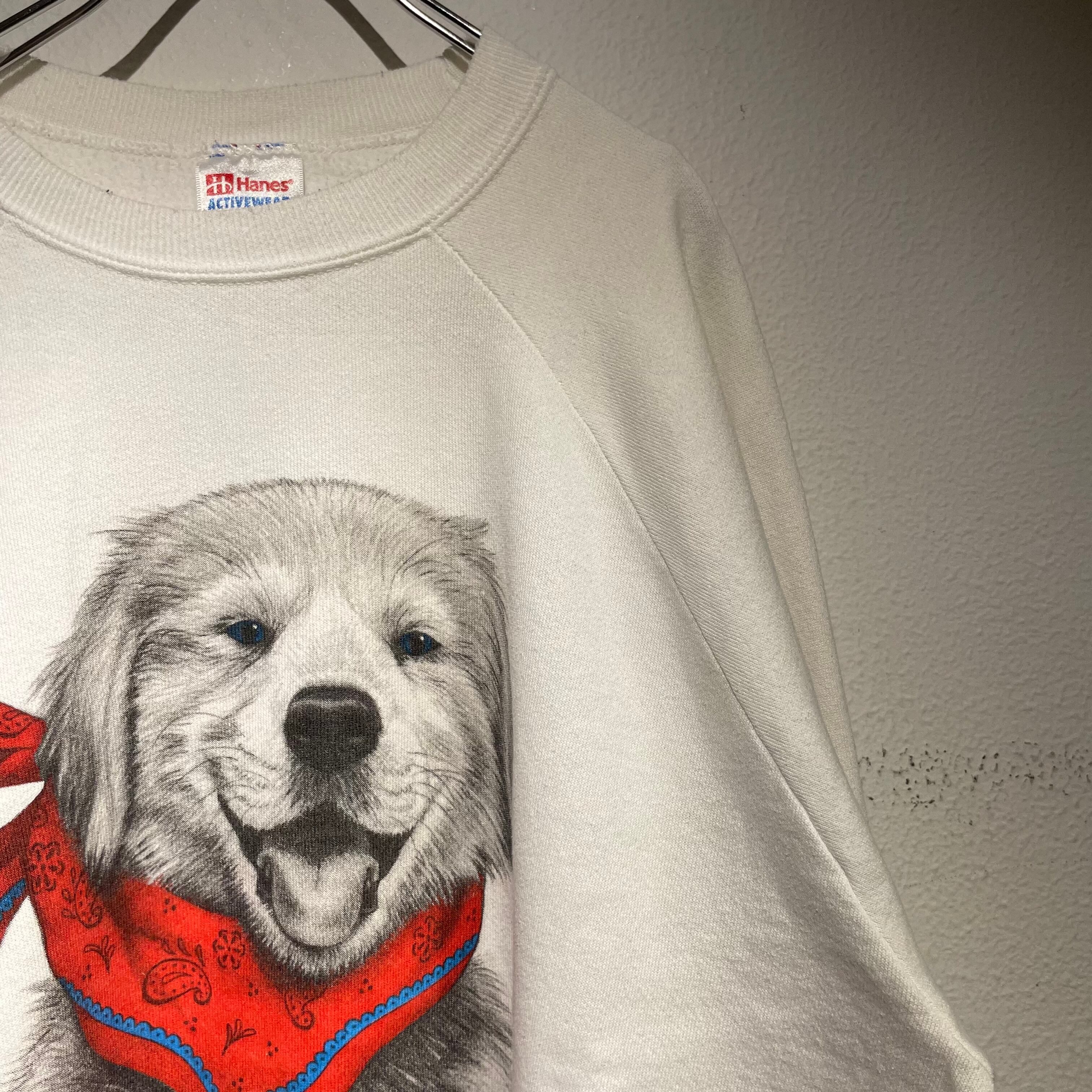 バンダナを巻いたワンちゃんが大きくプリントされたスウェットです。