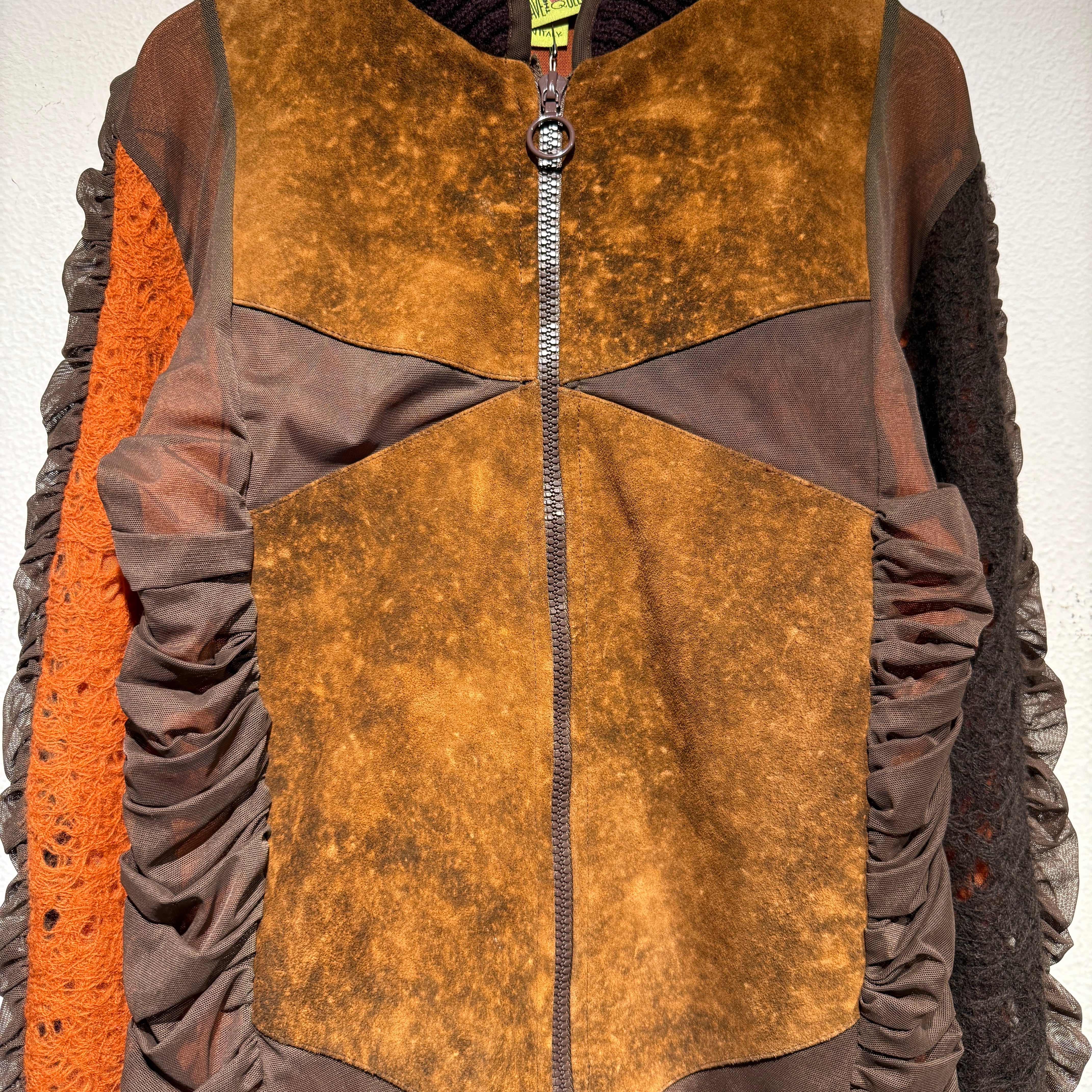 スエードやニット、シアー素材がミックスされたデザインジャケット。
