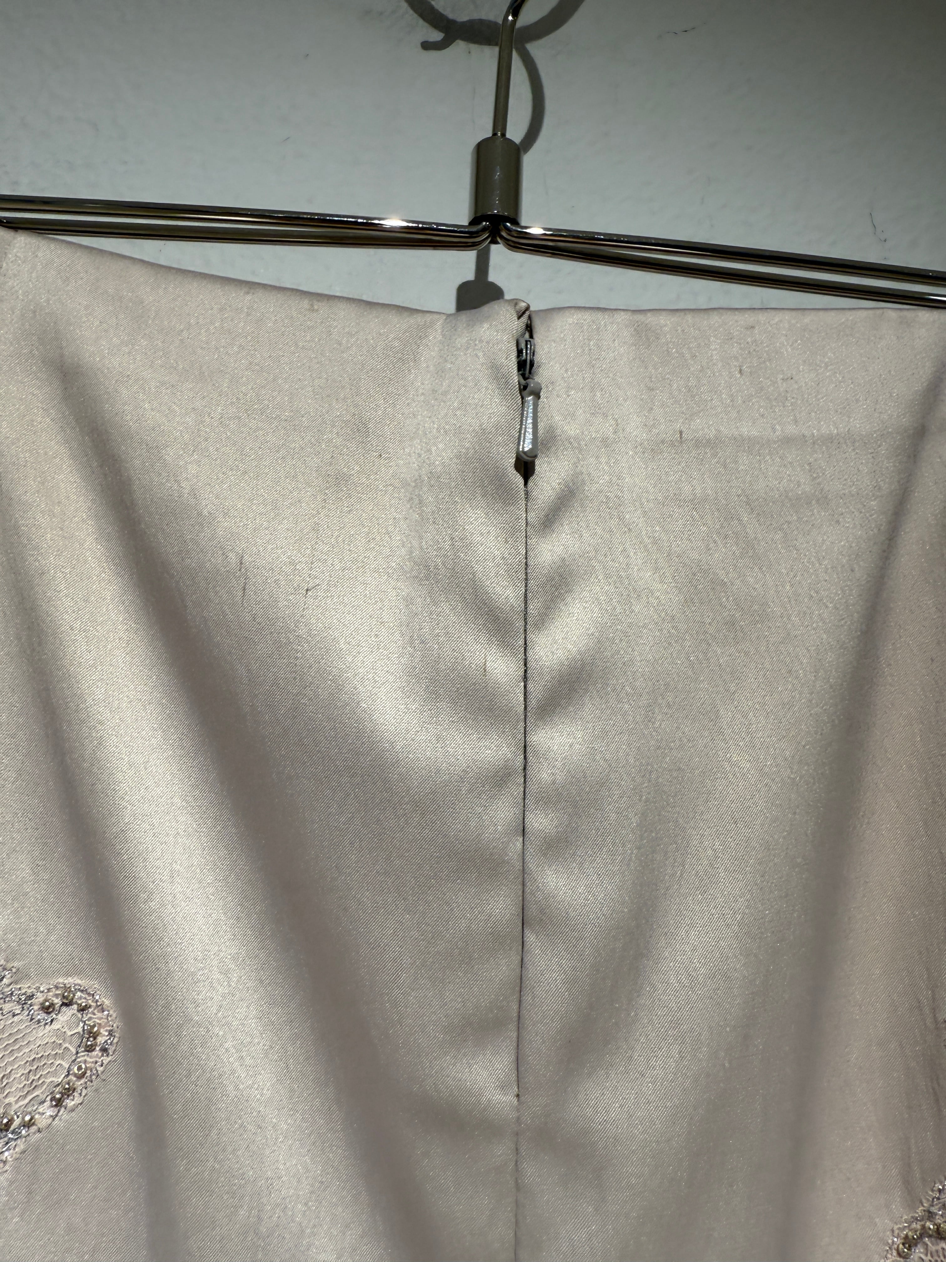 全体に施されたレース刺繍やスパンコールが可愛らしいマーメイドスカート。