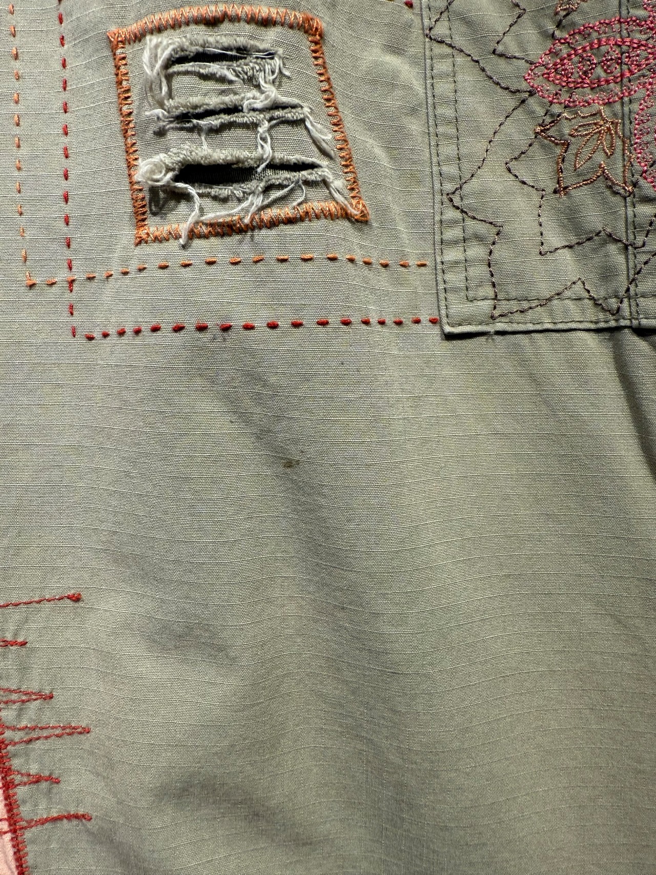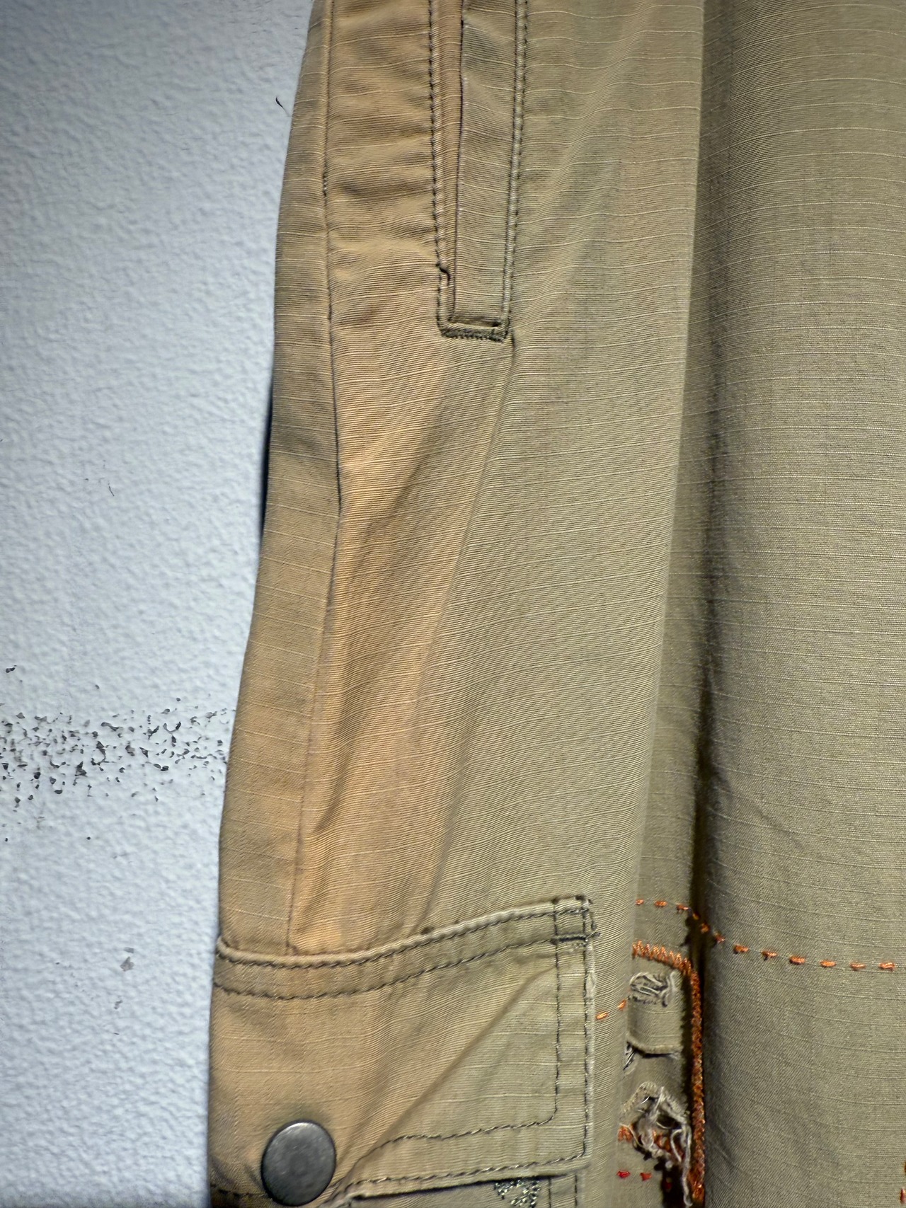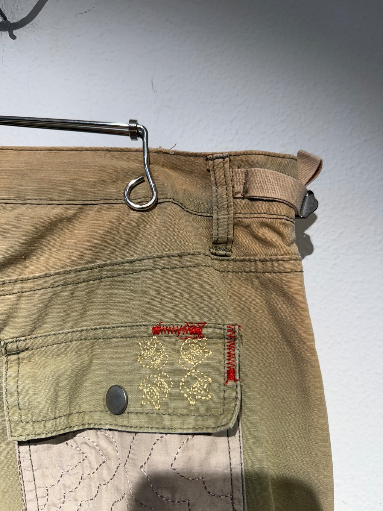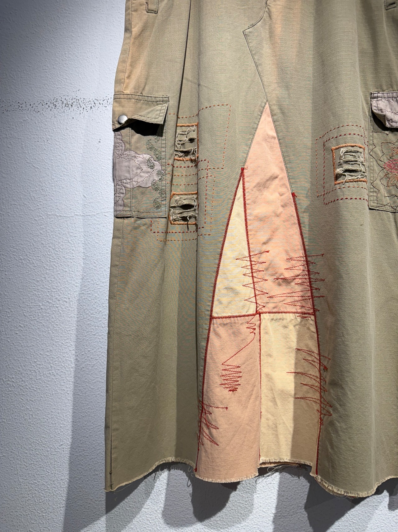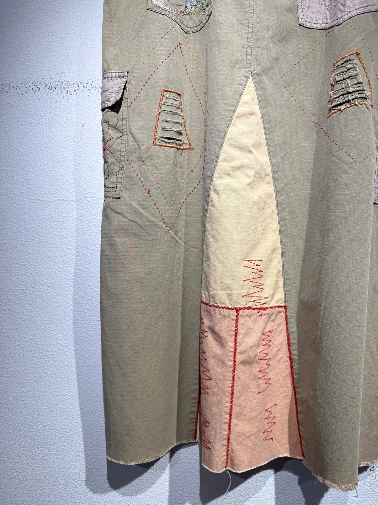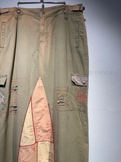 異なる生地を組み合わせたパッチワークやダメージ加工とステッチが施されており、古着ならではの雰囲気を楽しめる1着です◎