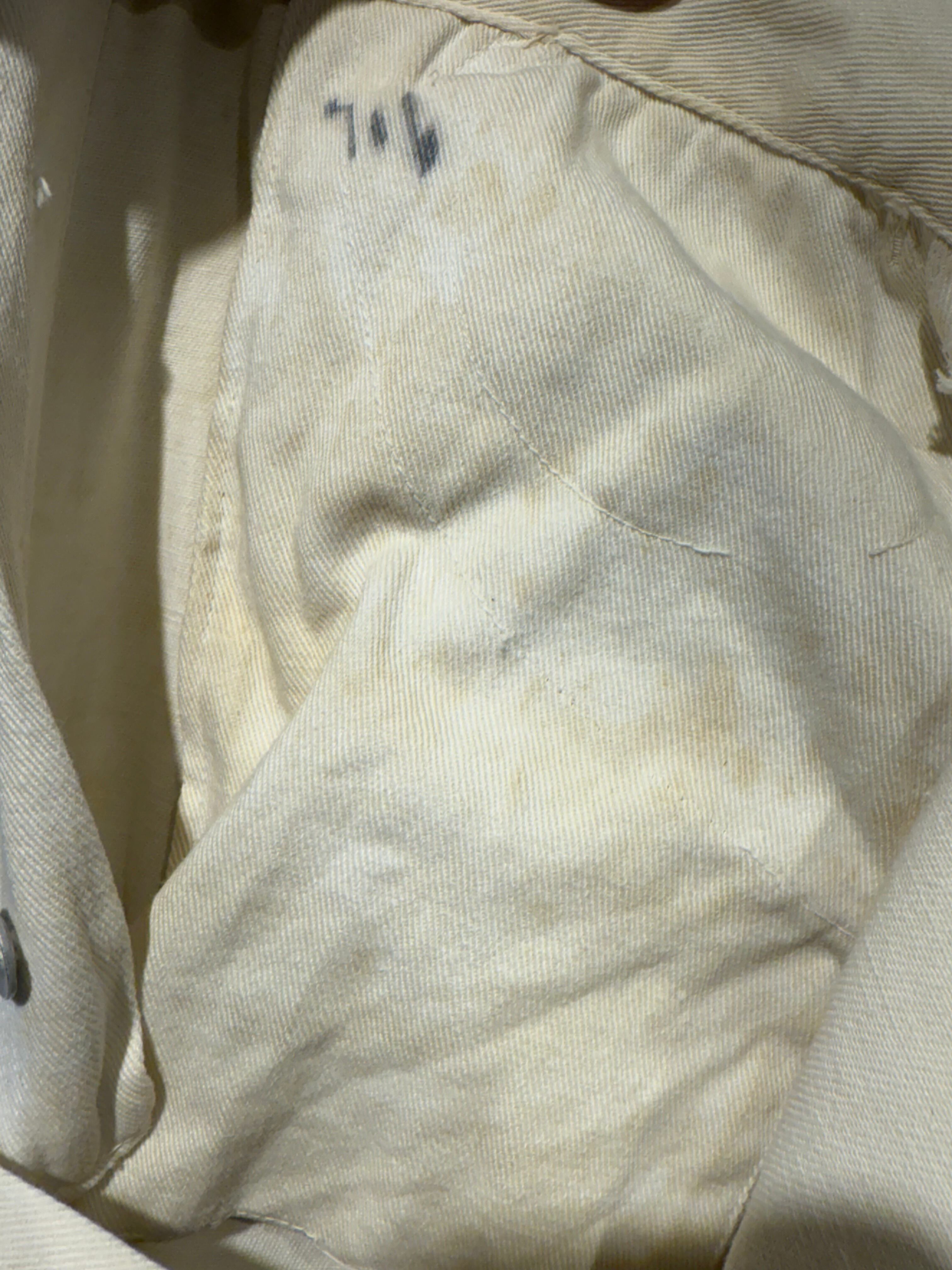 ・フロントボタン裏、フロント右腰、フロント両膝付近汚れ有り