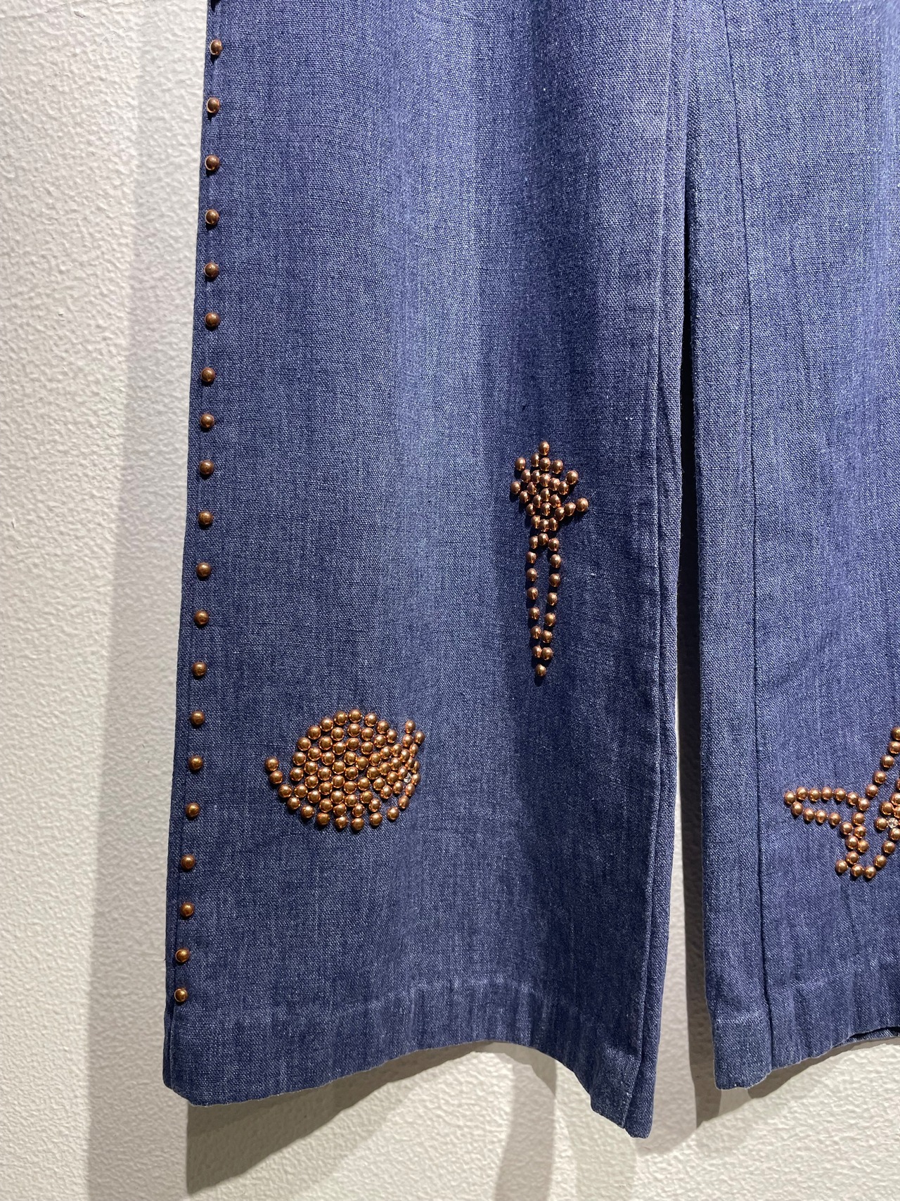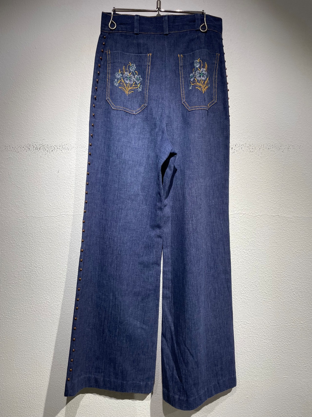 パール×刺繍デザインが可愛らしいデニムパンツ。