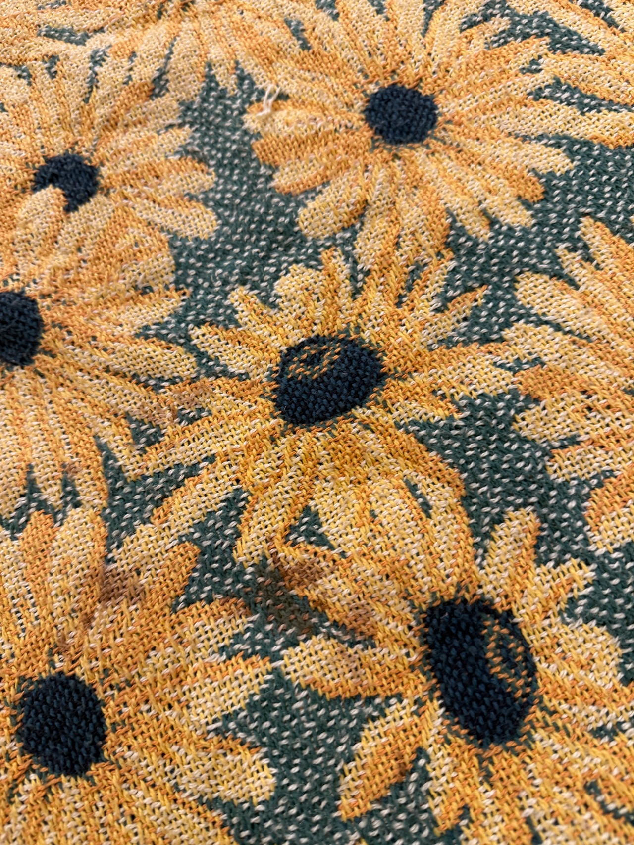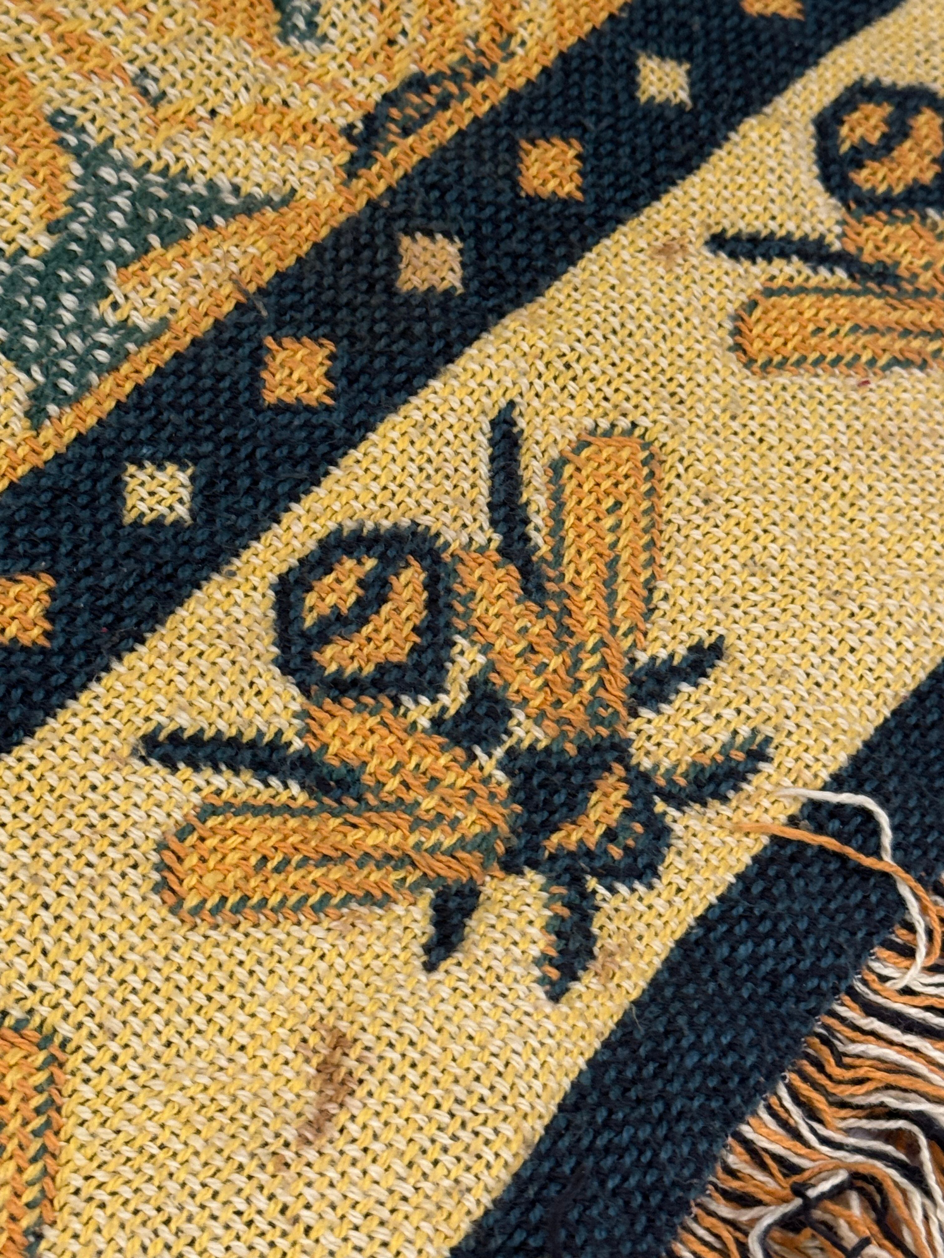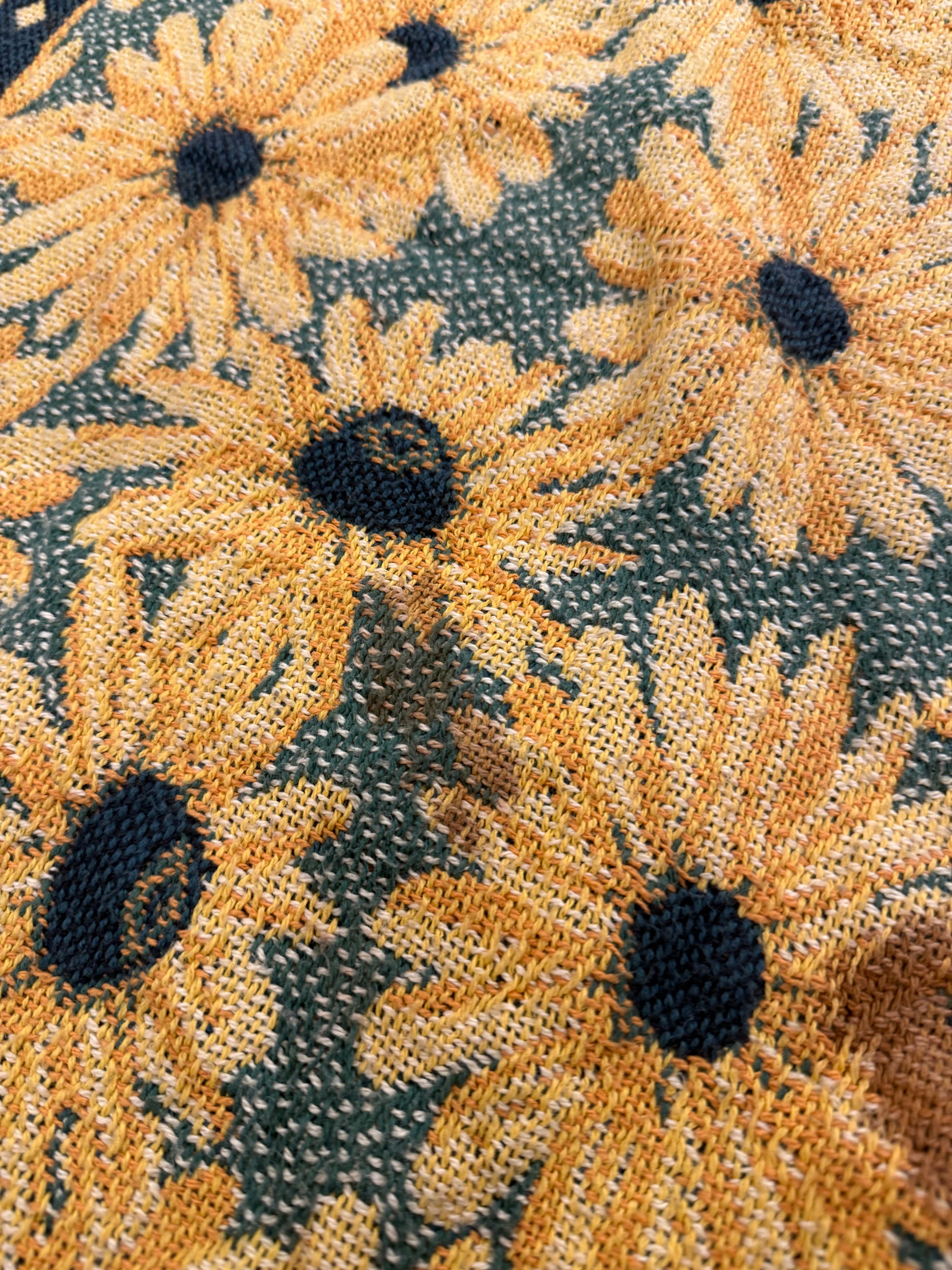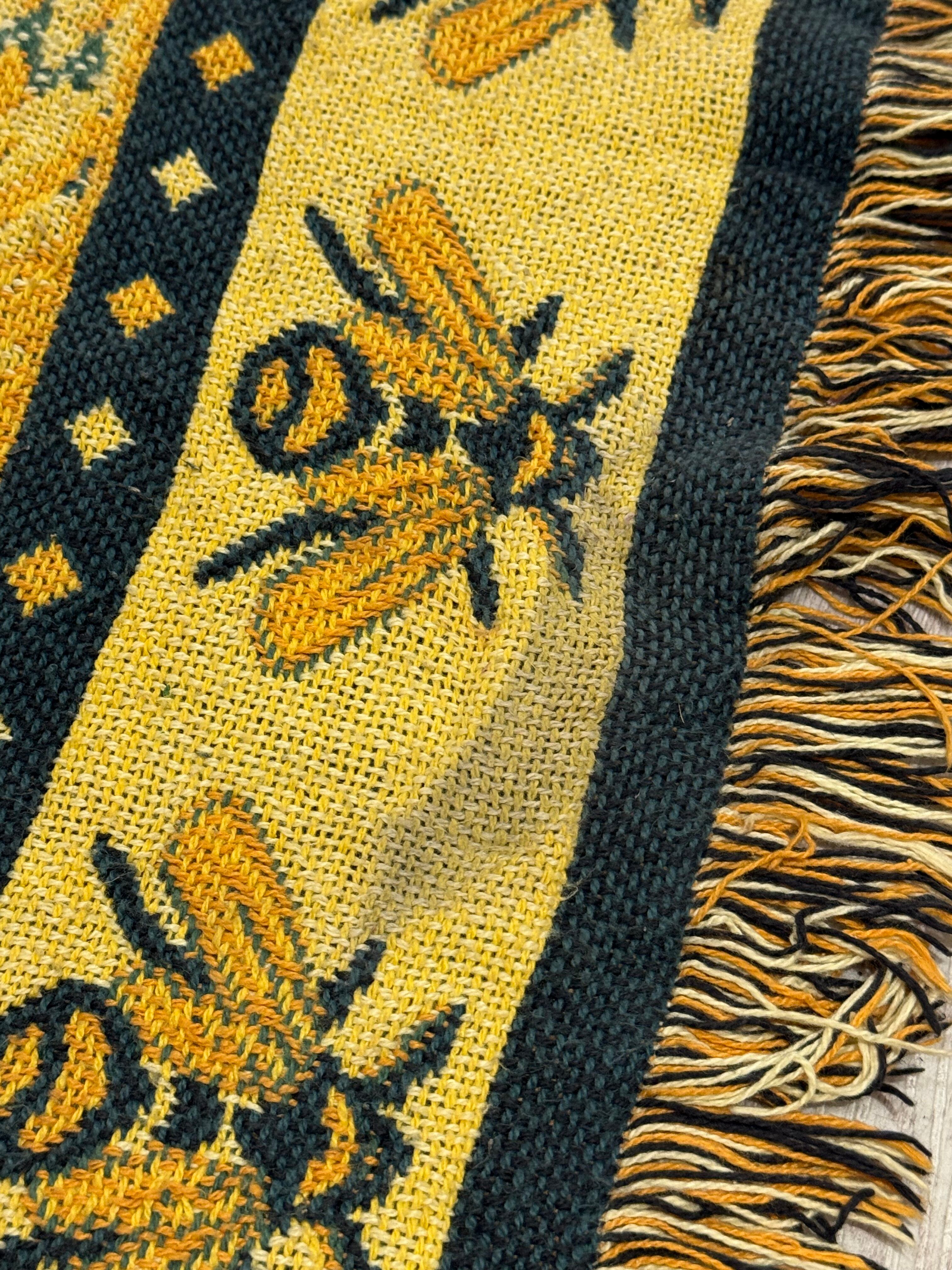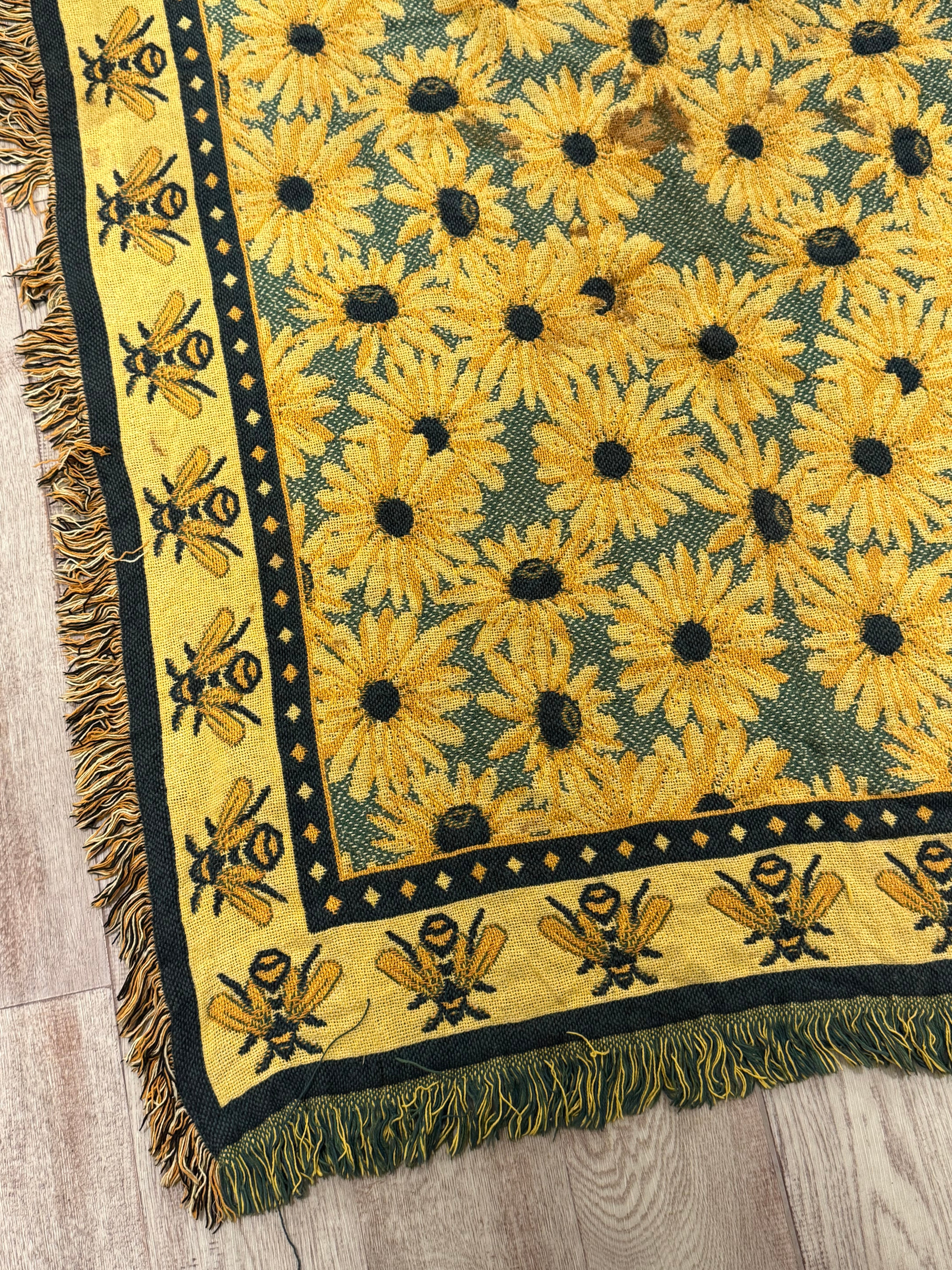 ひまわりとハチの総柄が可愛らしいブランケット。