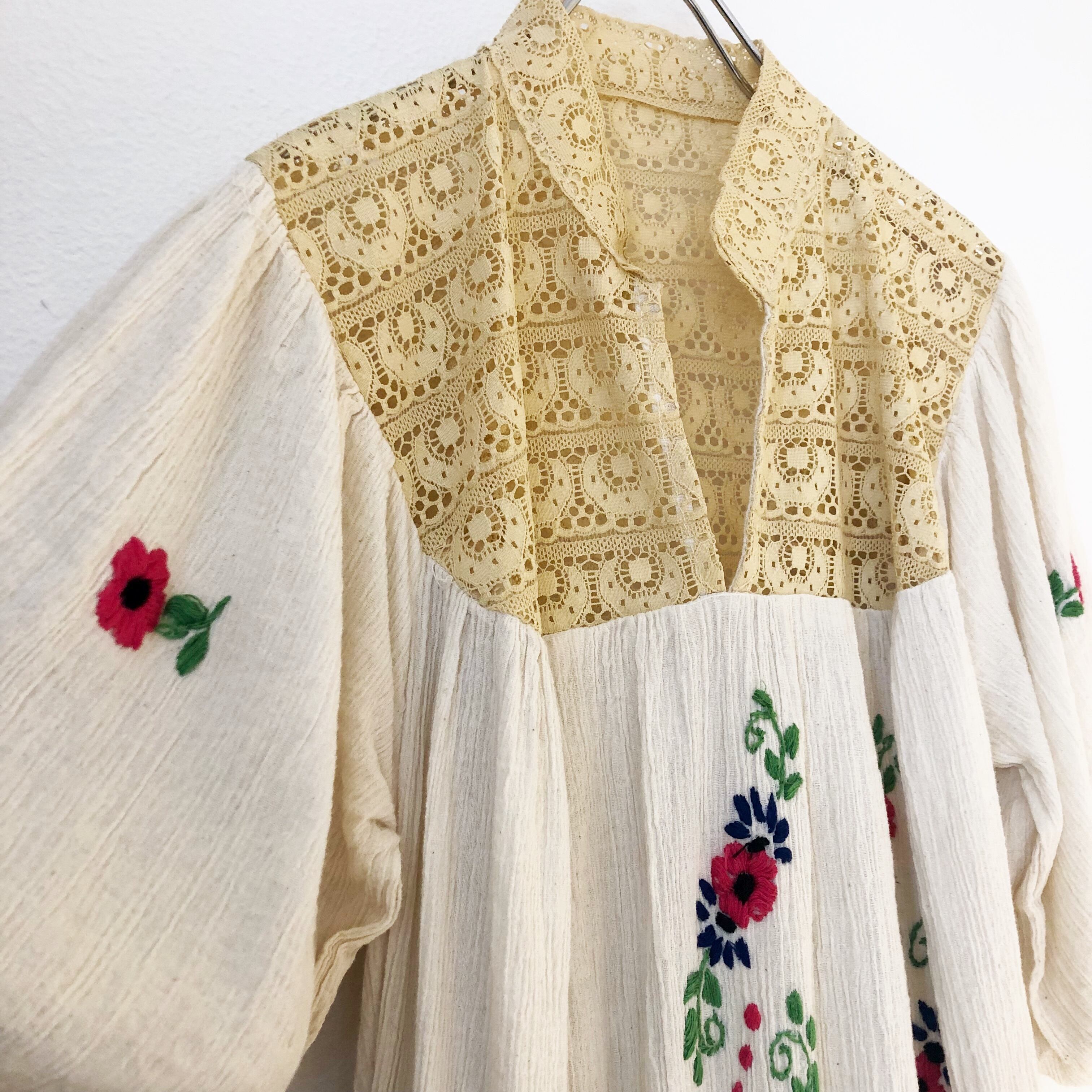 手刺繍のお花とレースの組み合わせが可愛い刺繍ワンピースです。