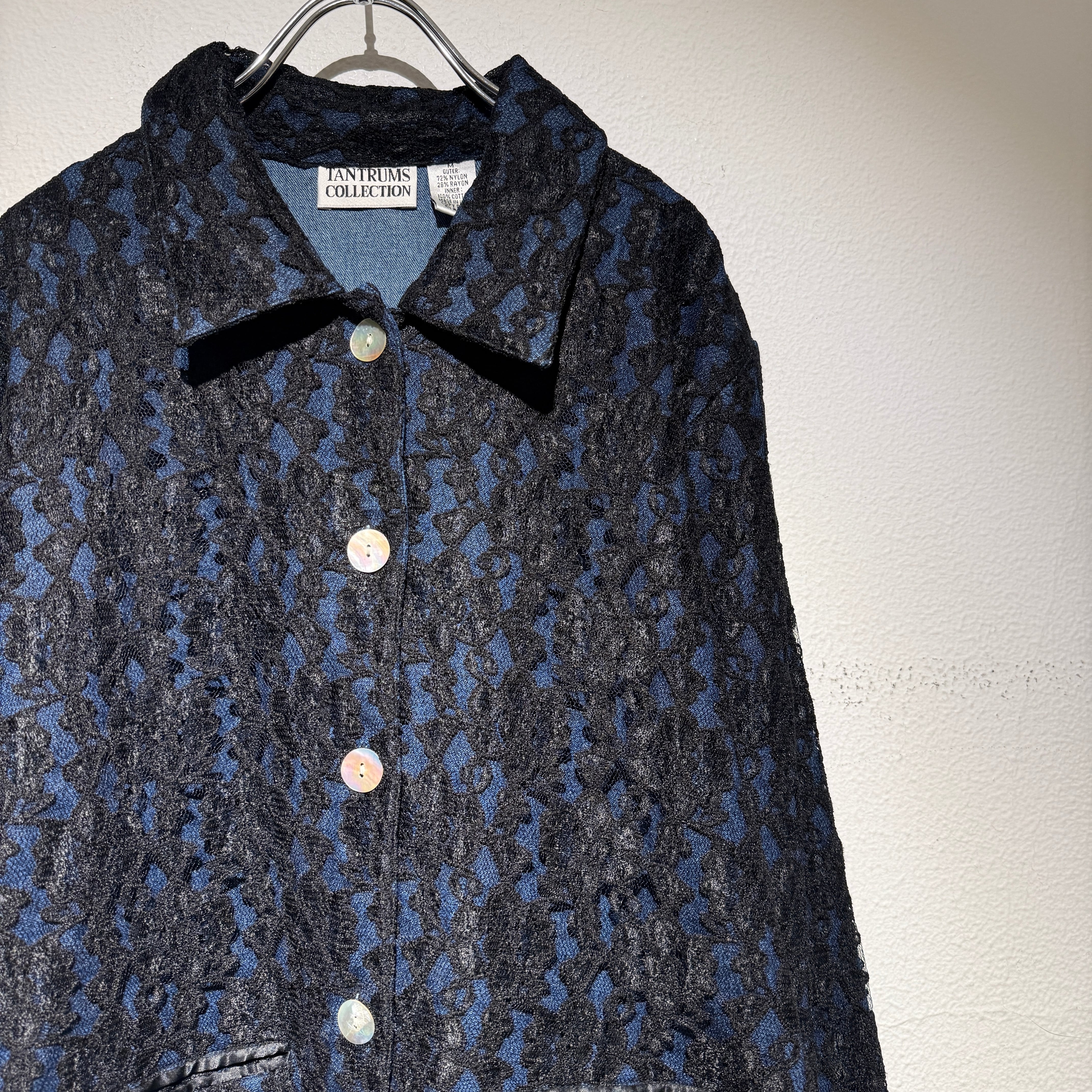 デニム地の上にブラックのレースを重ねたデザインジャケット◎
