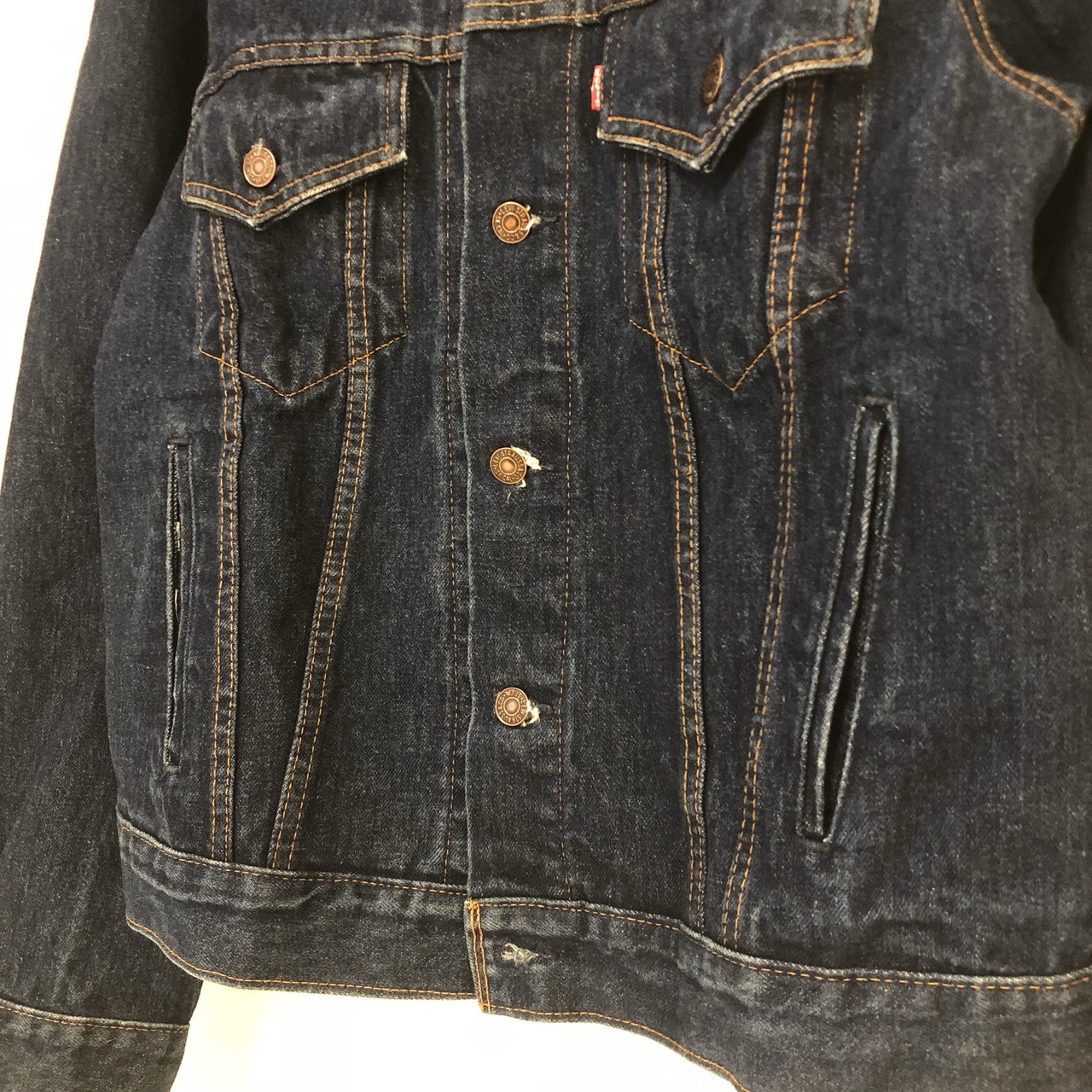 80年代ごろのリーバイスのデニムジャケットです。ハンドポケット付で着丈が長いタイプなので現代ファッションにもマッチします。