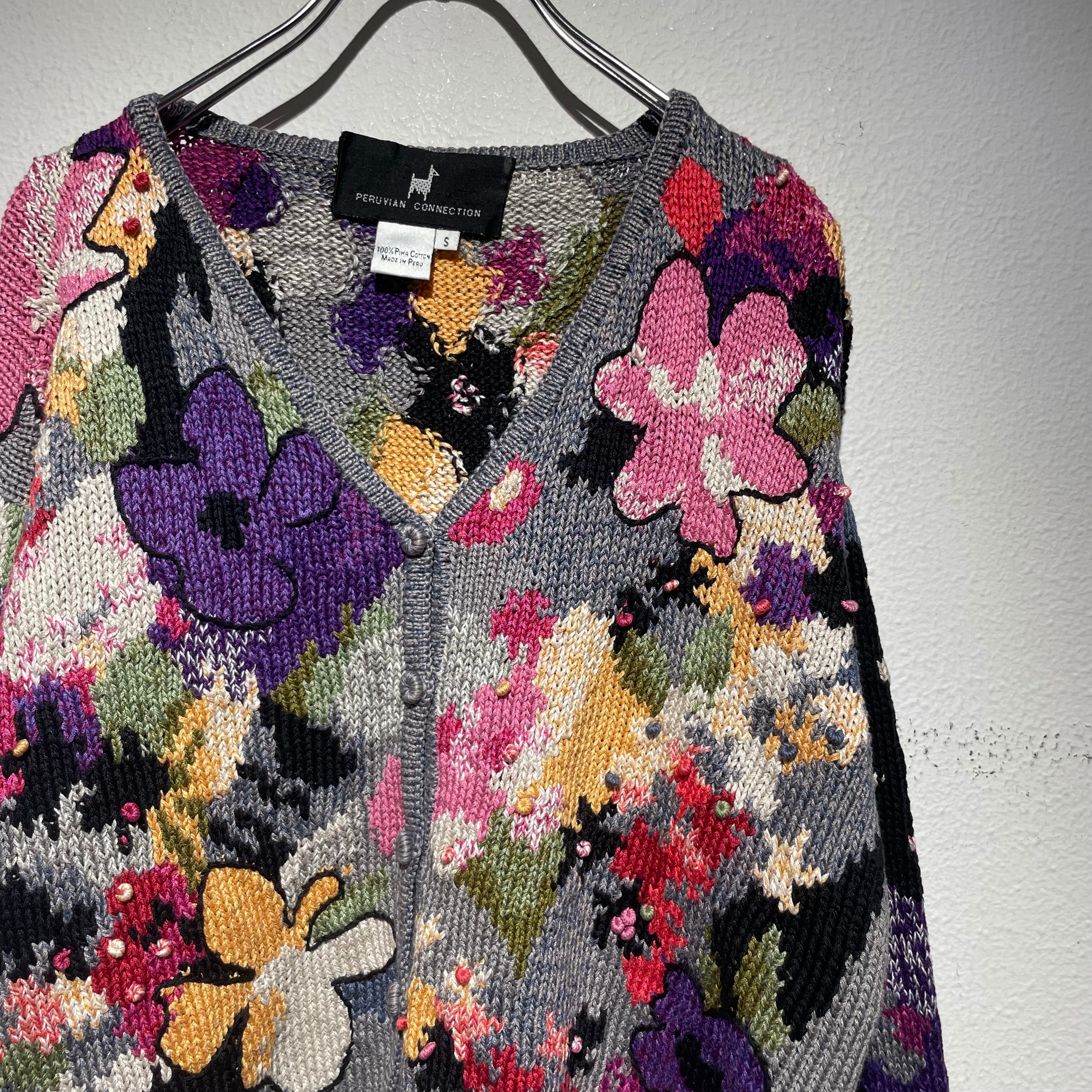全面に描かれたお花が可愛らしいニットカーディガン。