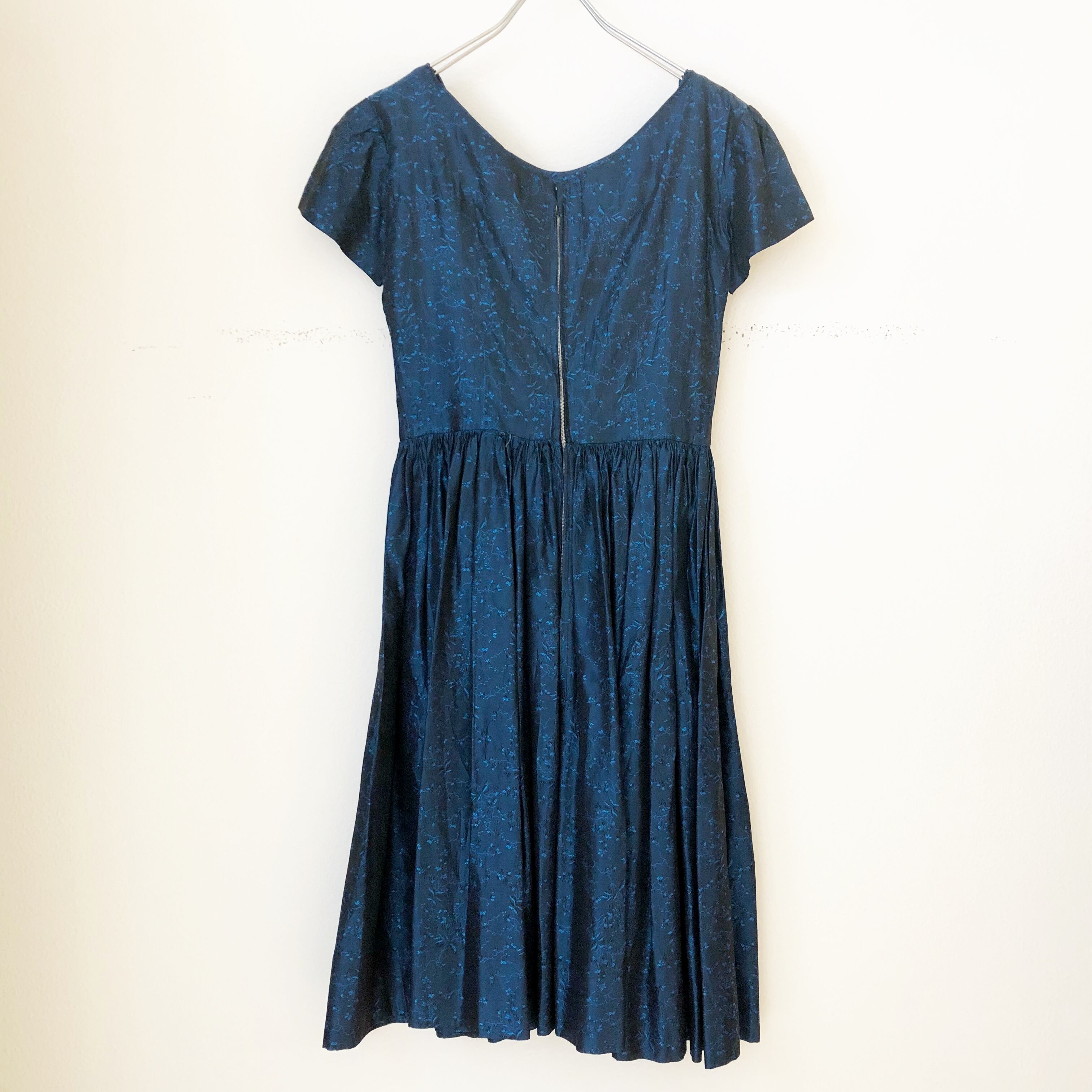 恐らくサテン生地だと思われますが、ハリのある生地とツヤ感が素敵です。ハンドメイドならではの温かみもあり是非特別な日に着ていただきたい一着です。