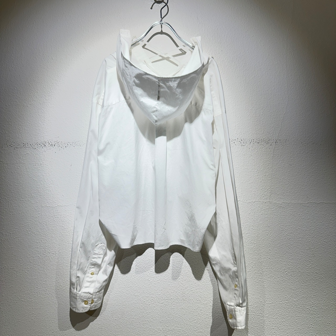 フードを付け、首元はレースアップに。丈はトレンドのショート丈に短くリメイクいたしました。