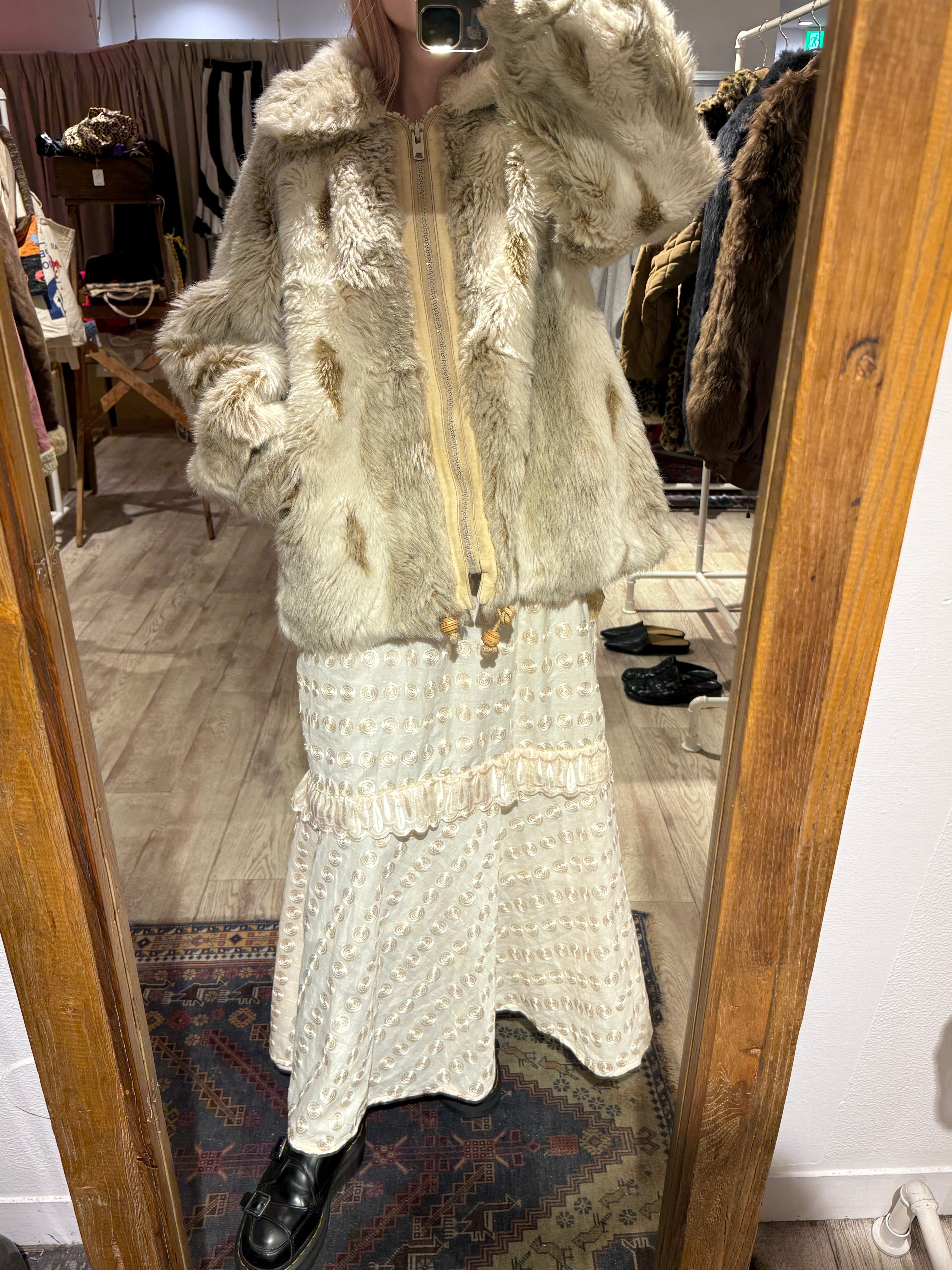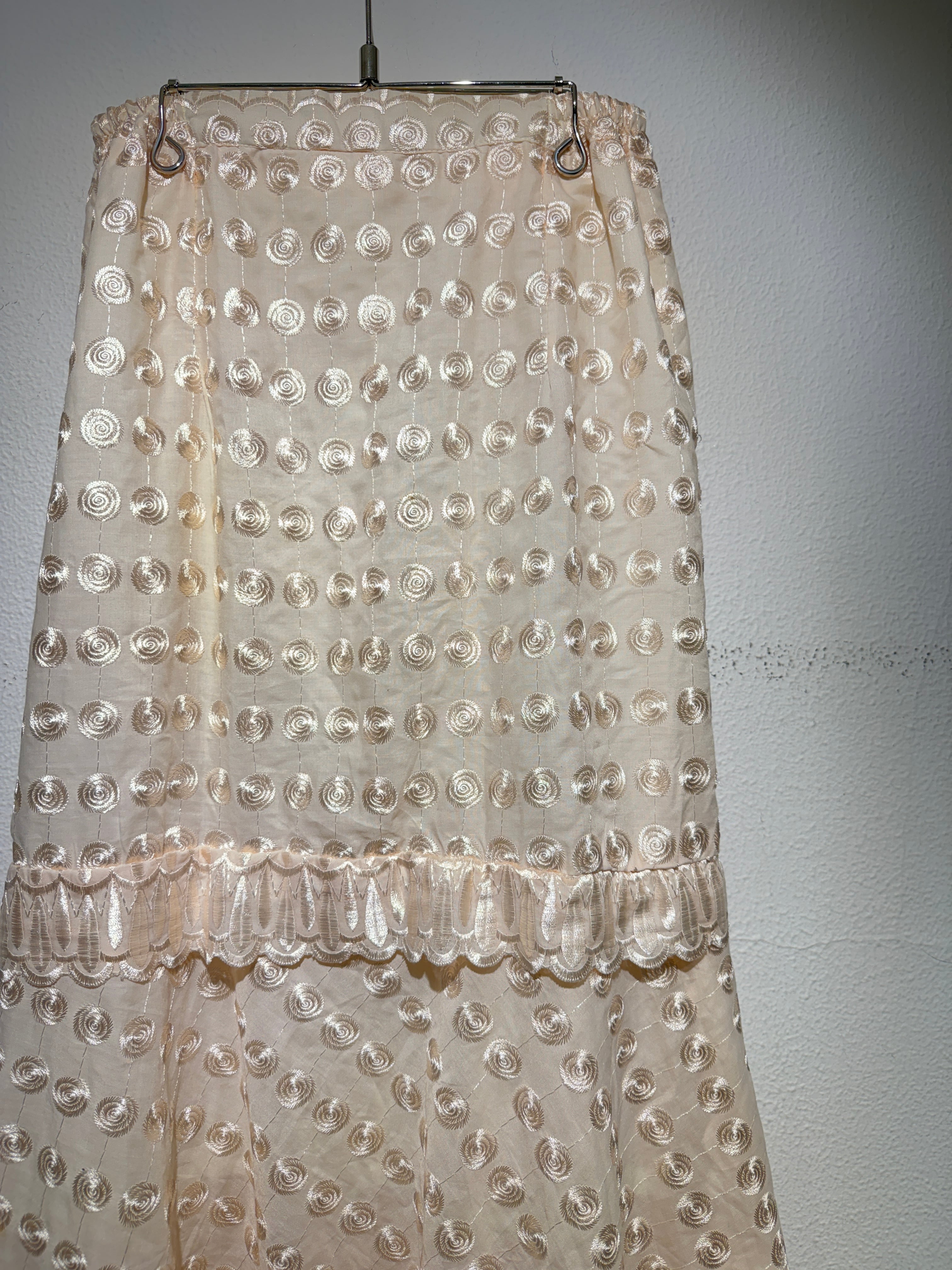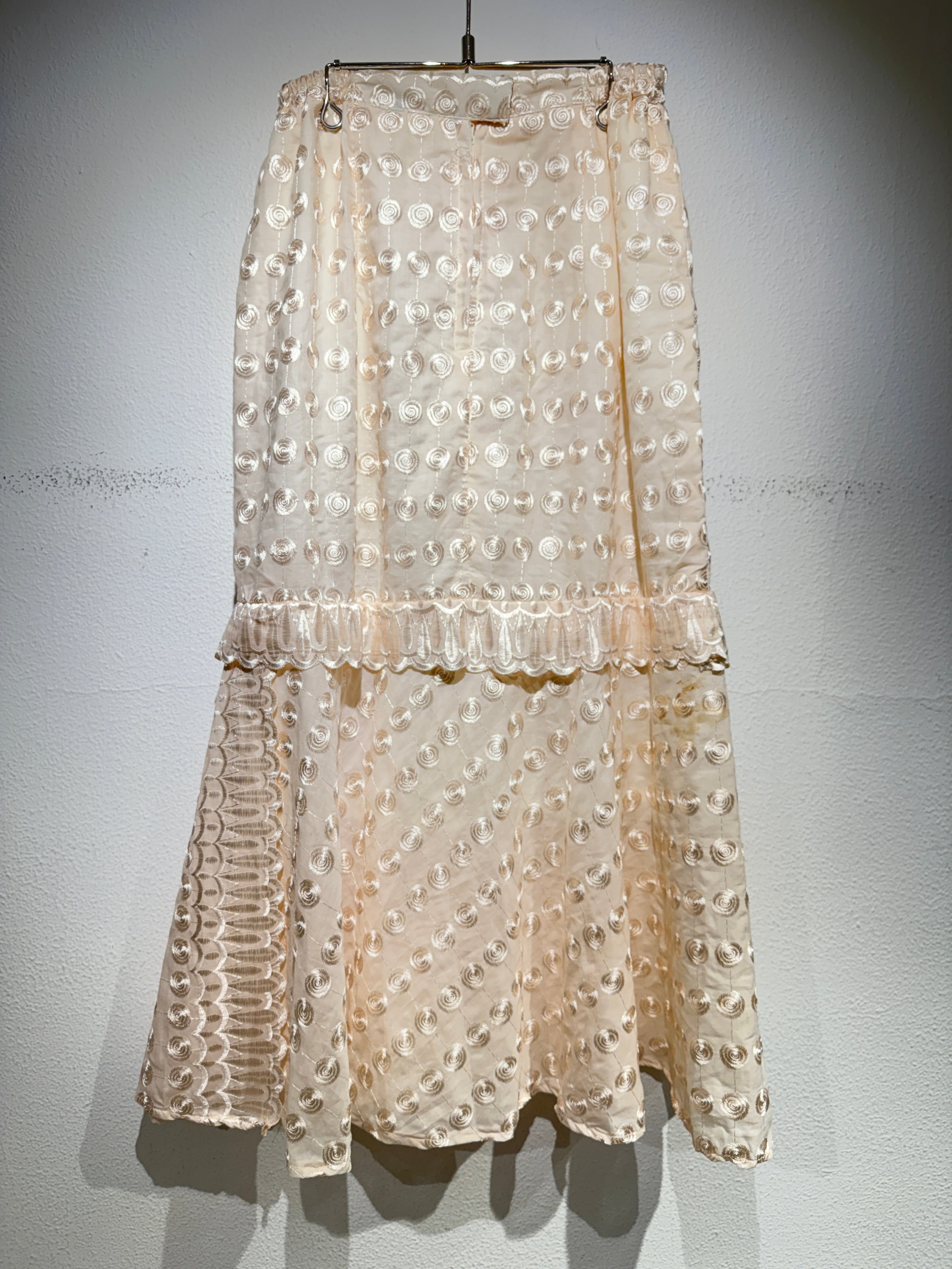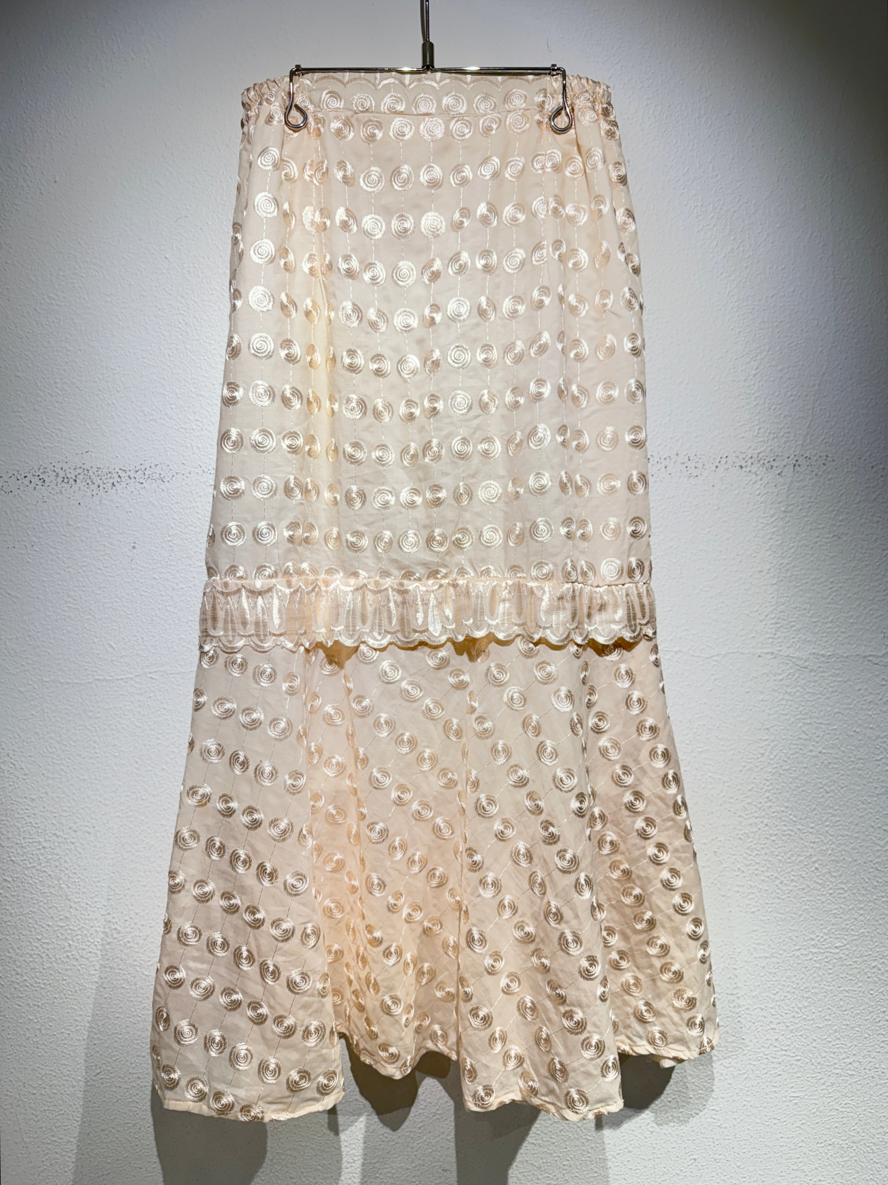 うずまきが全面に刺繍されたスカート。