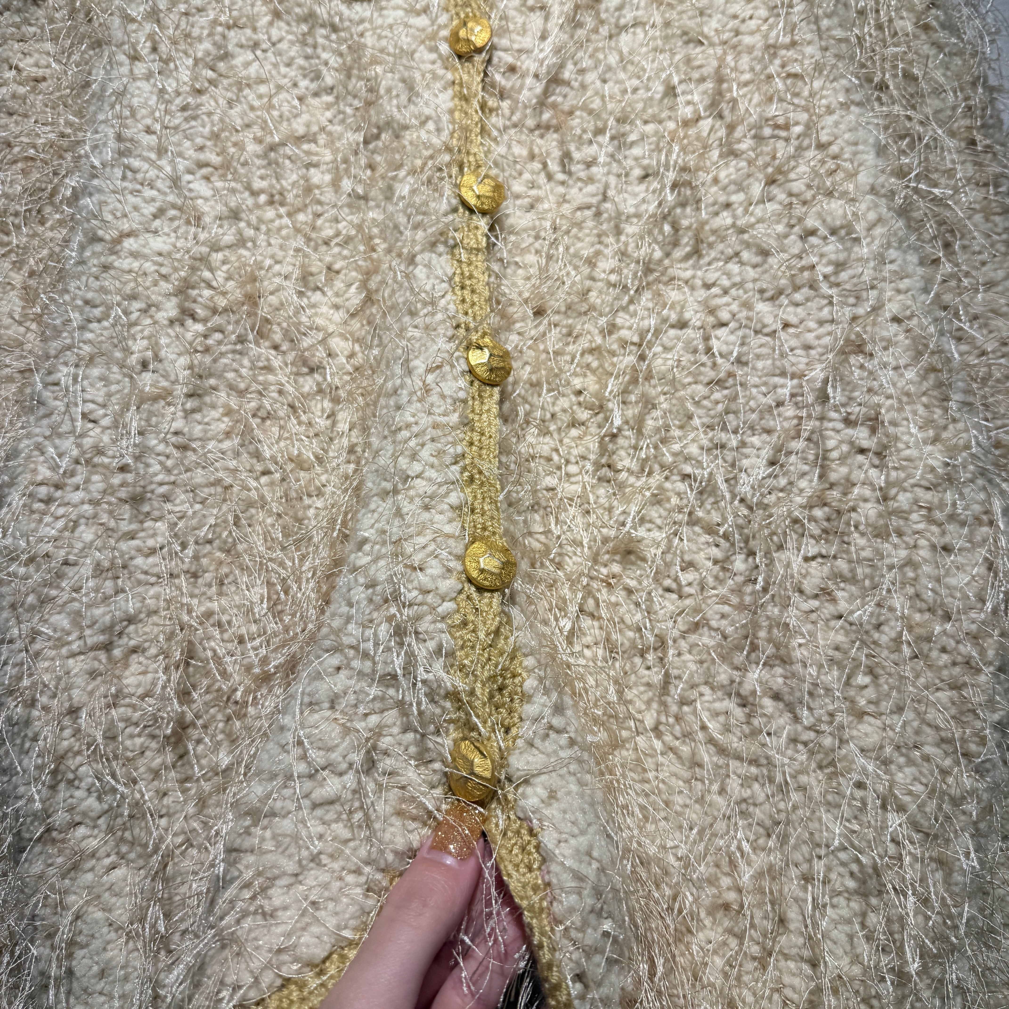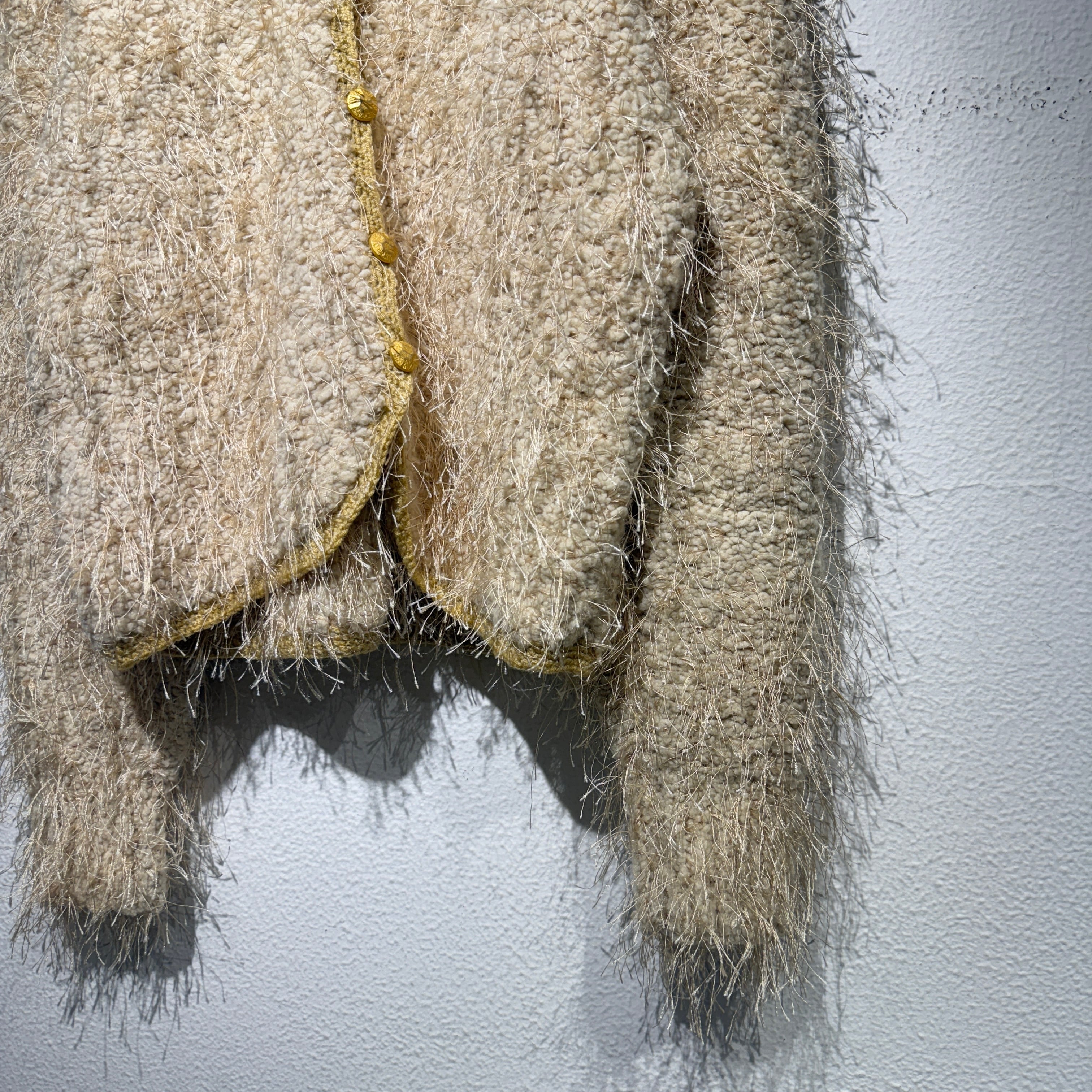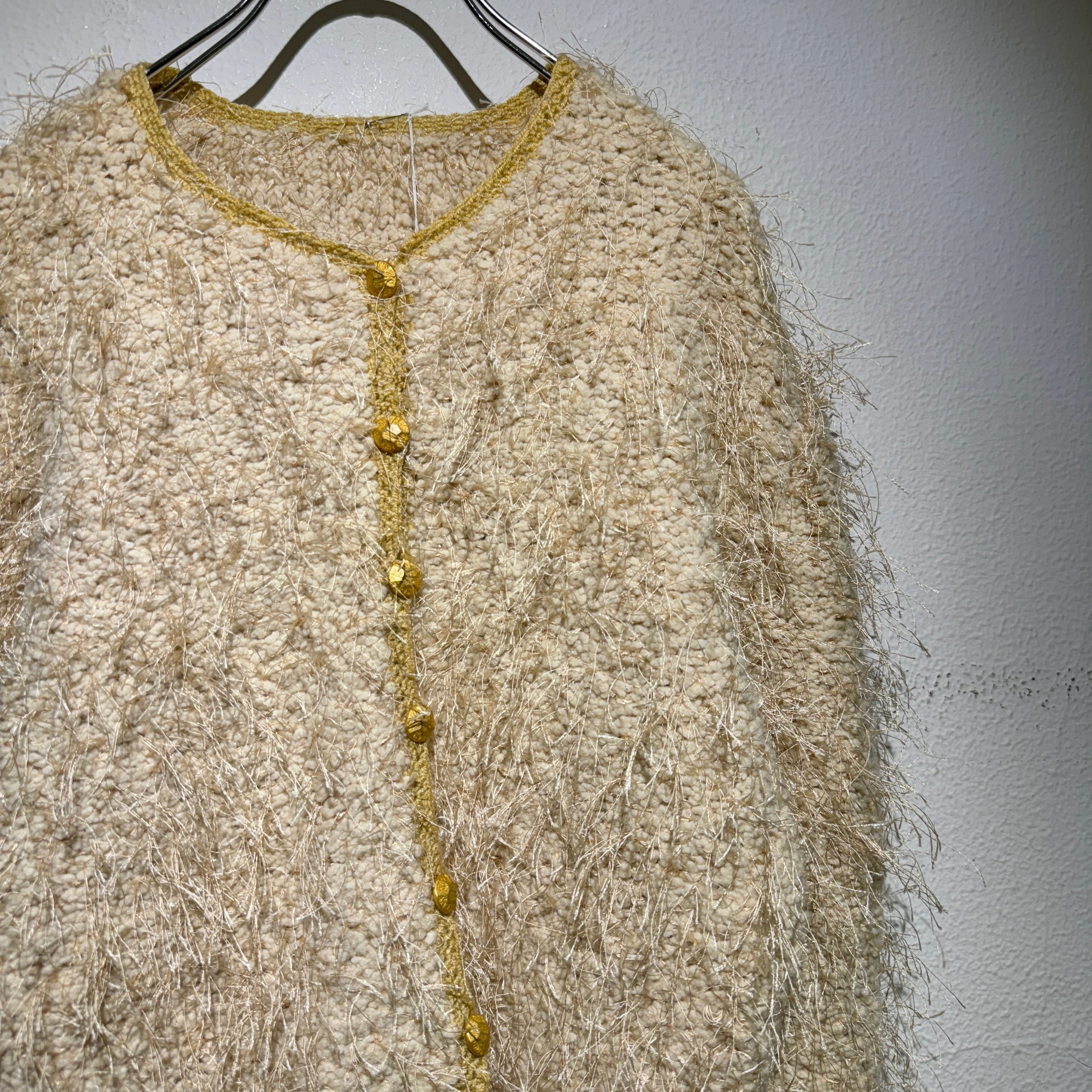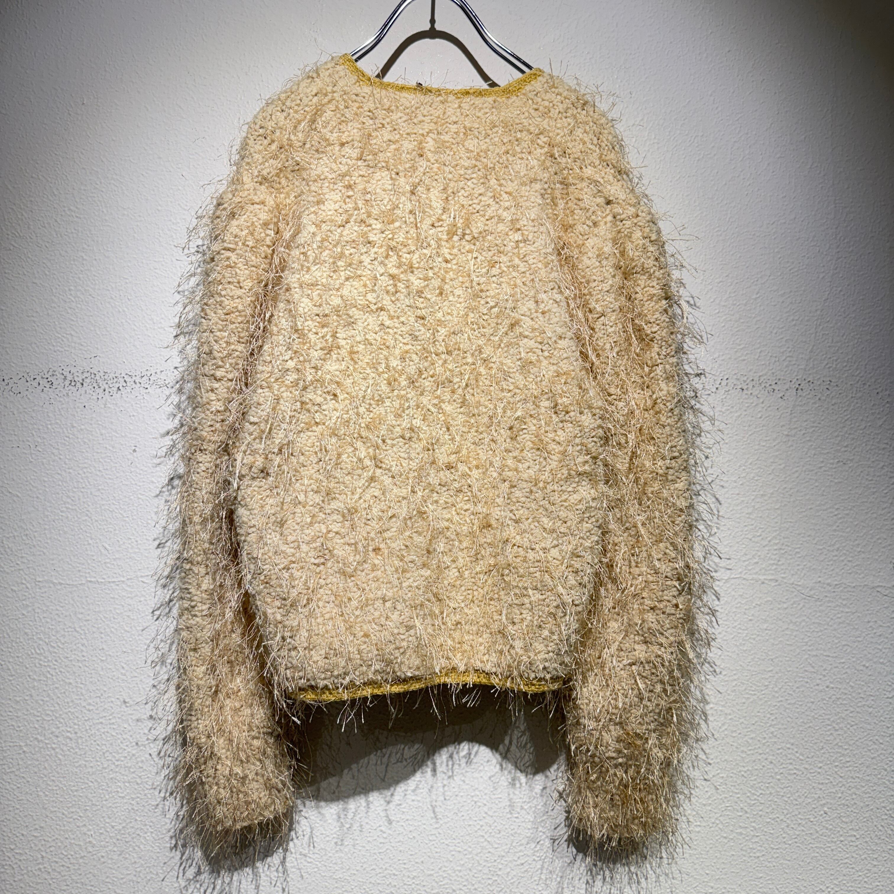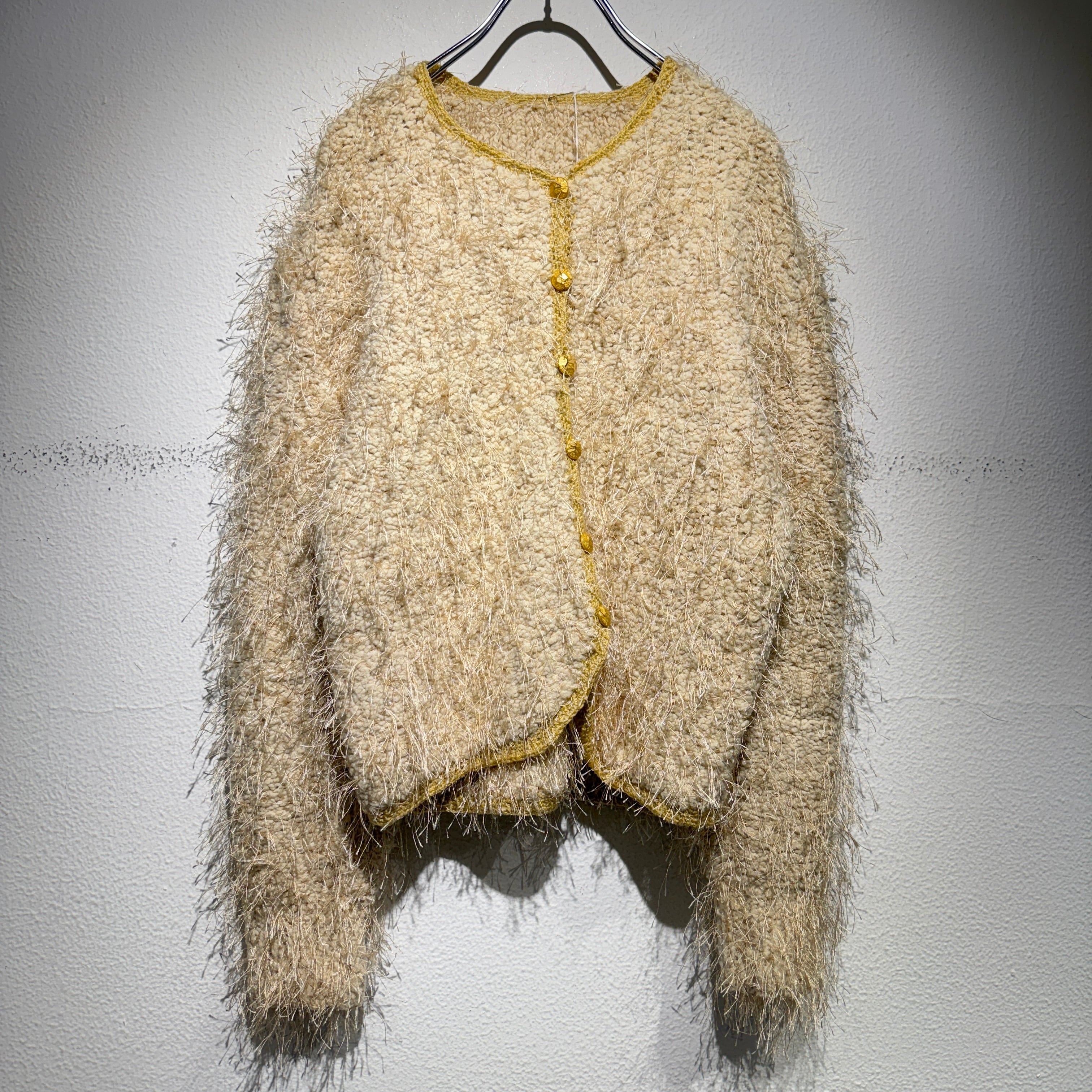全体に施されたモケモケが可愛らしいカーディガン。