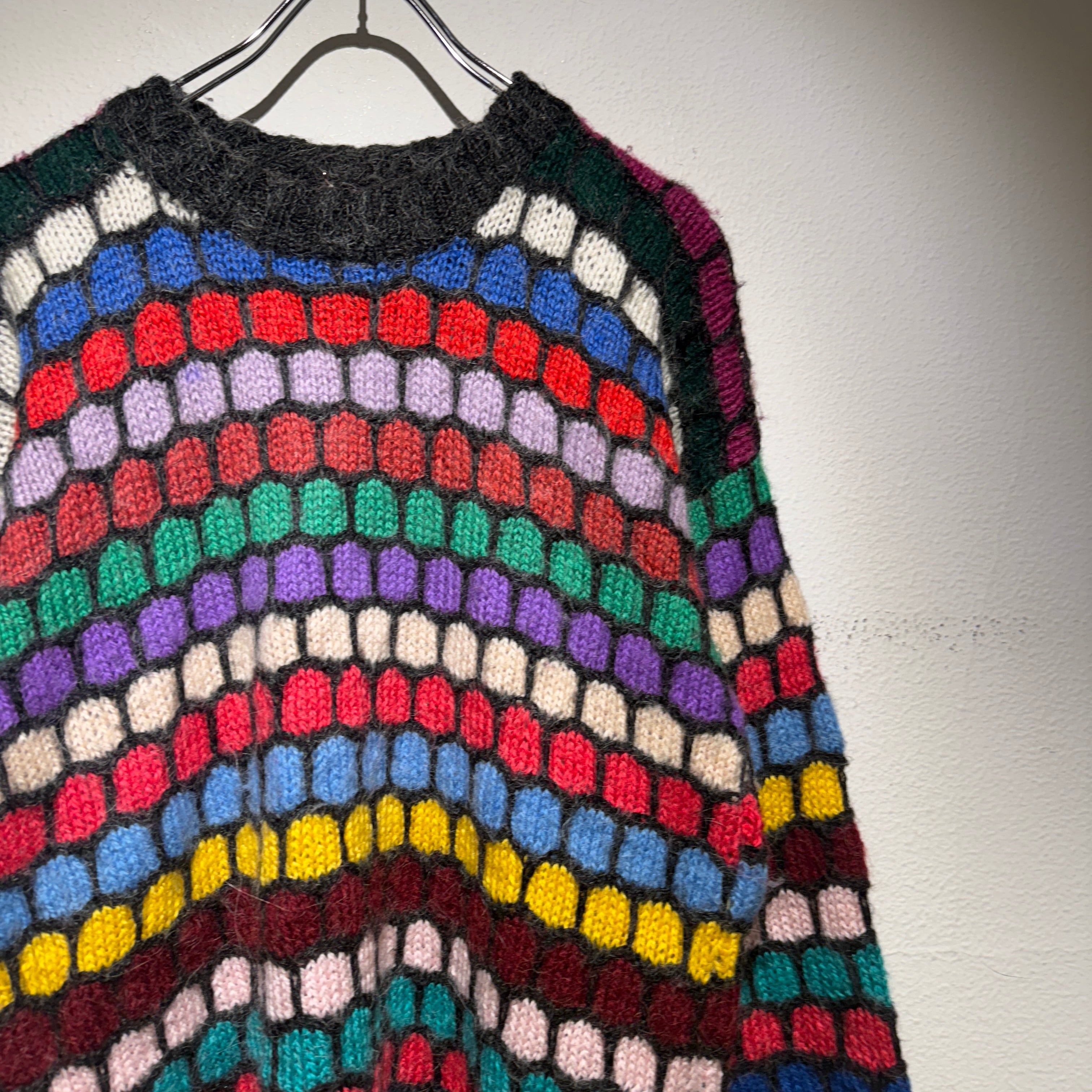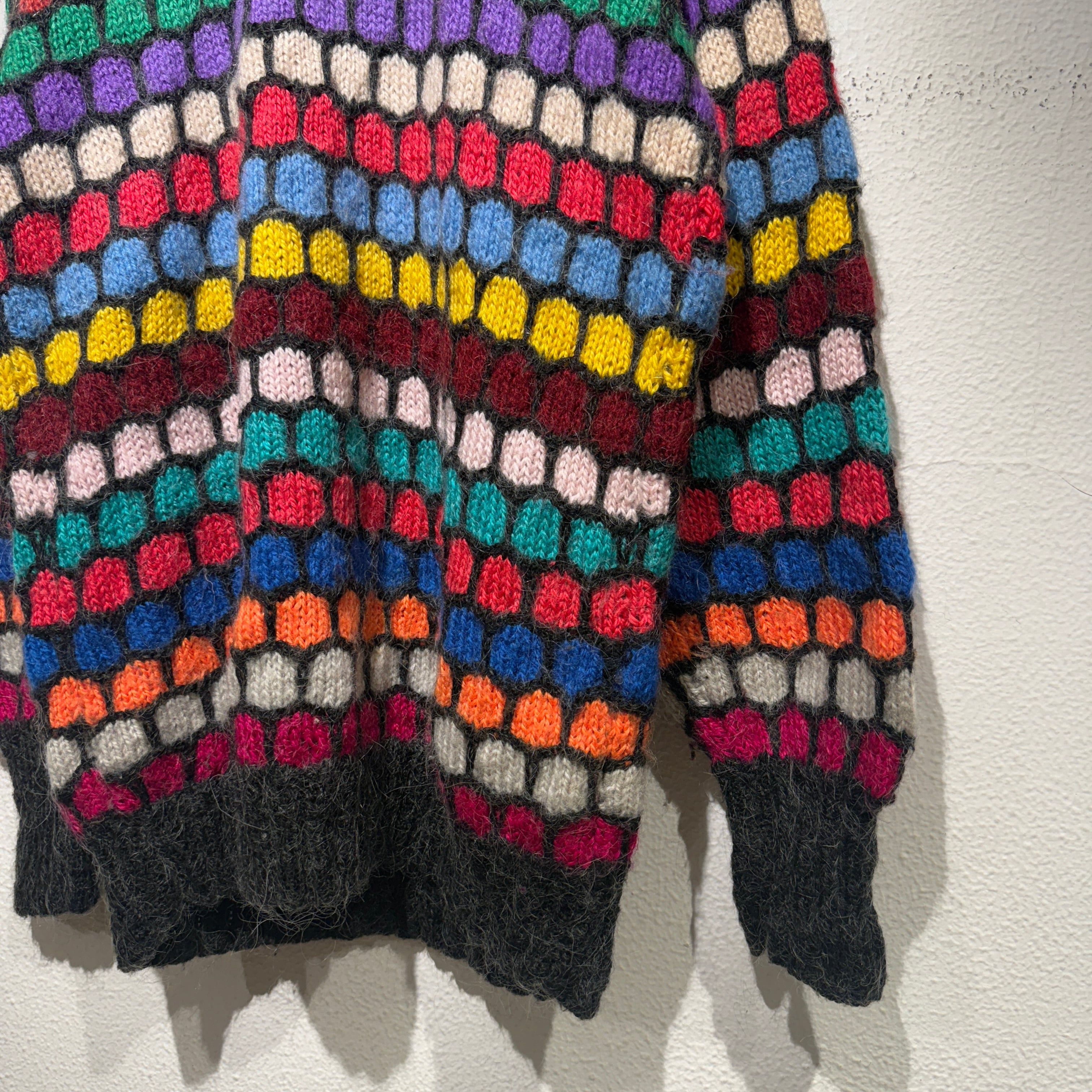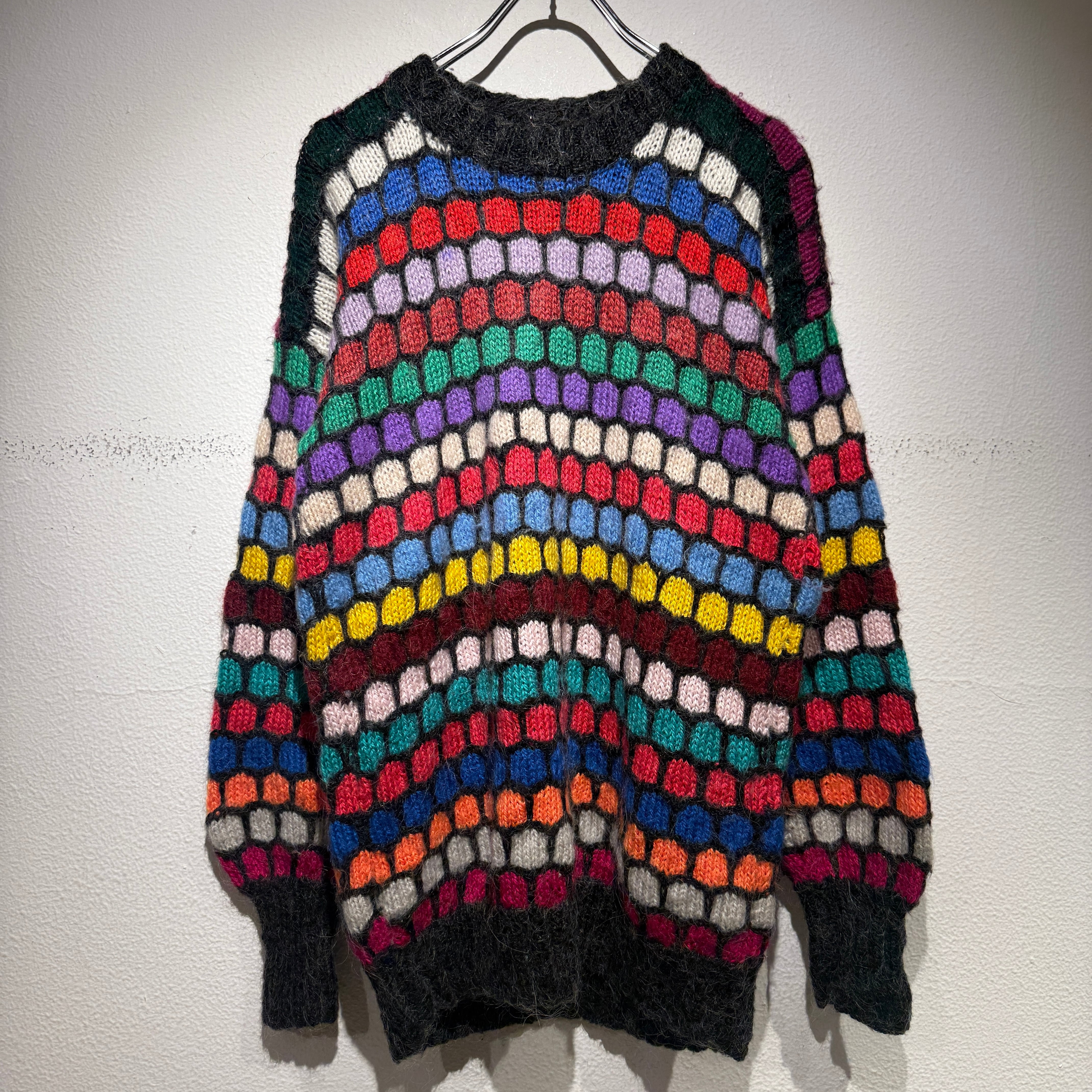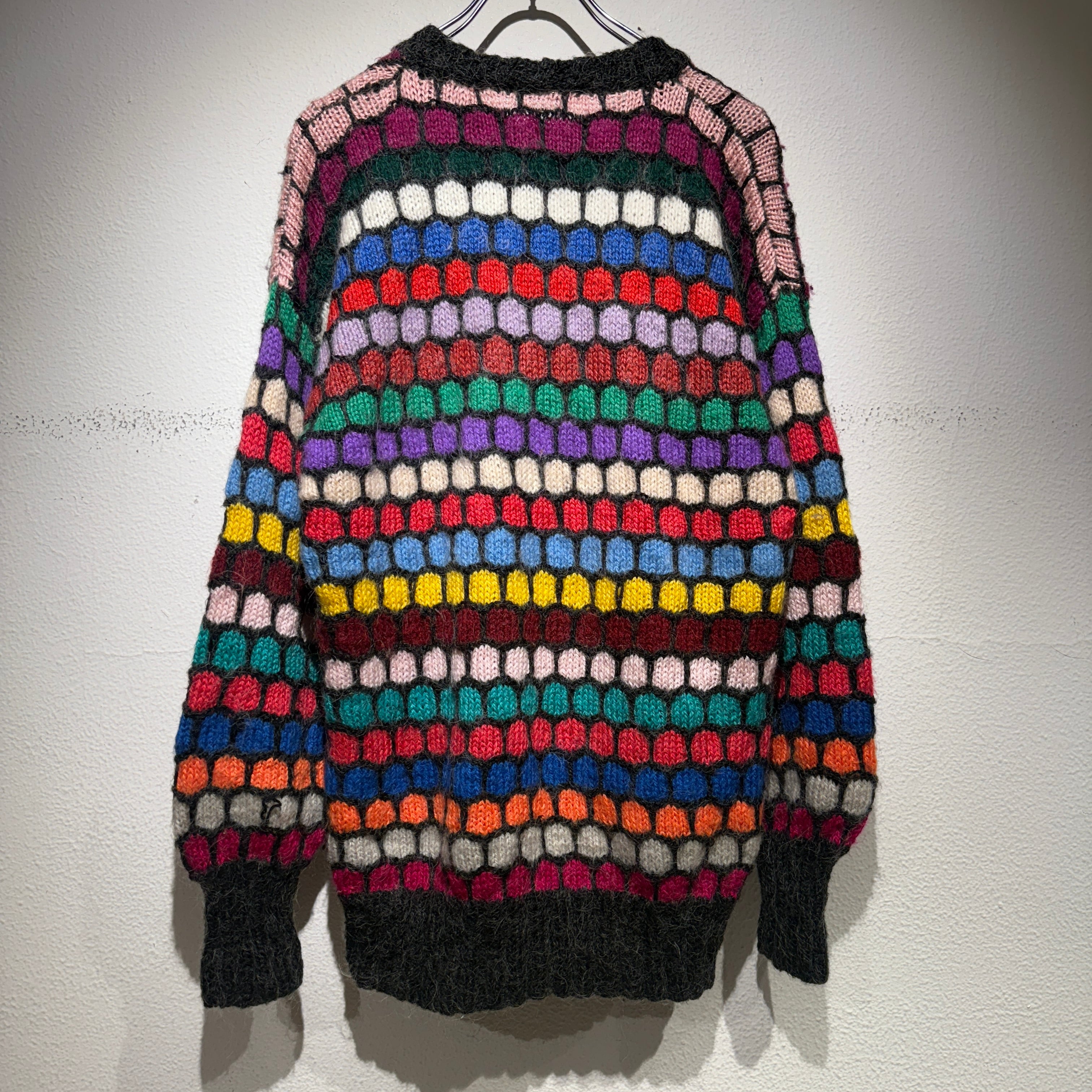 カラフルかつ総柄がインパクトのあるモヘアニット◎