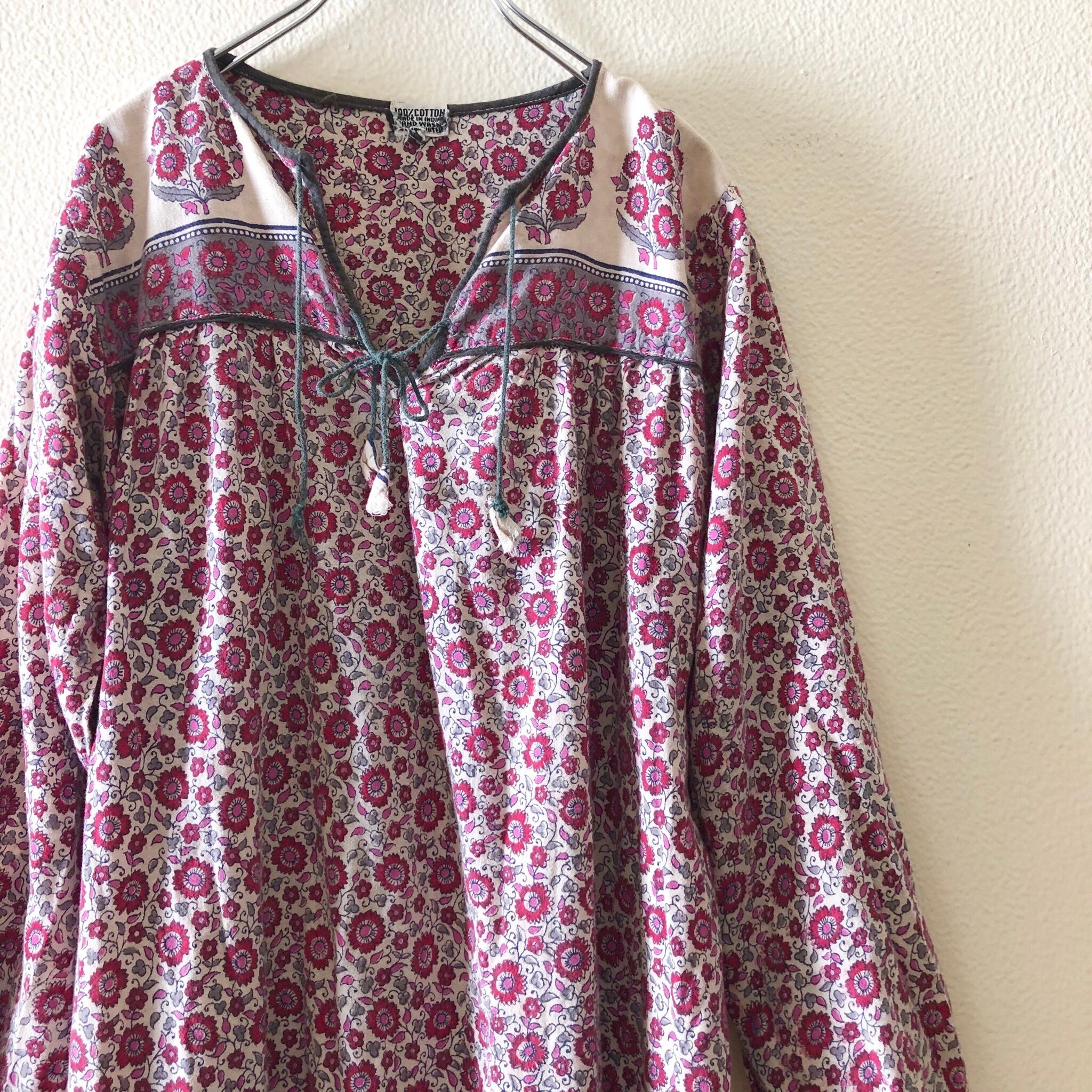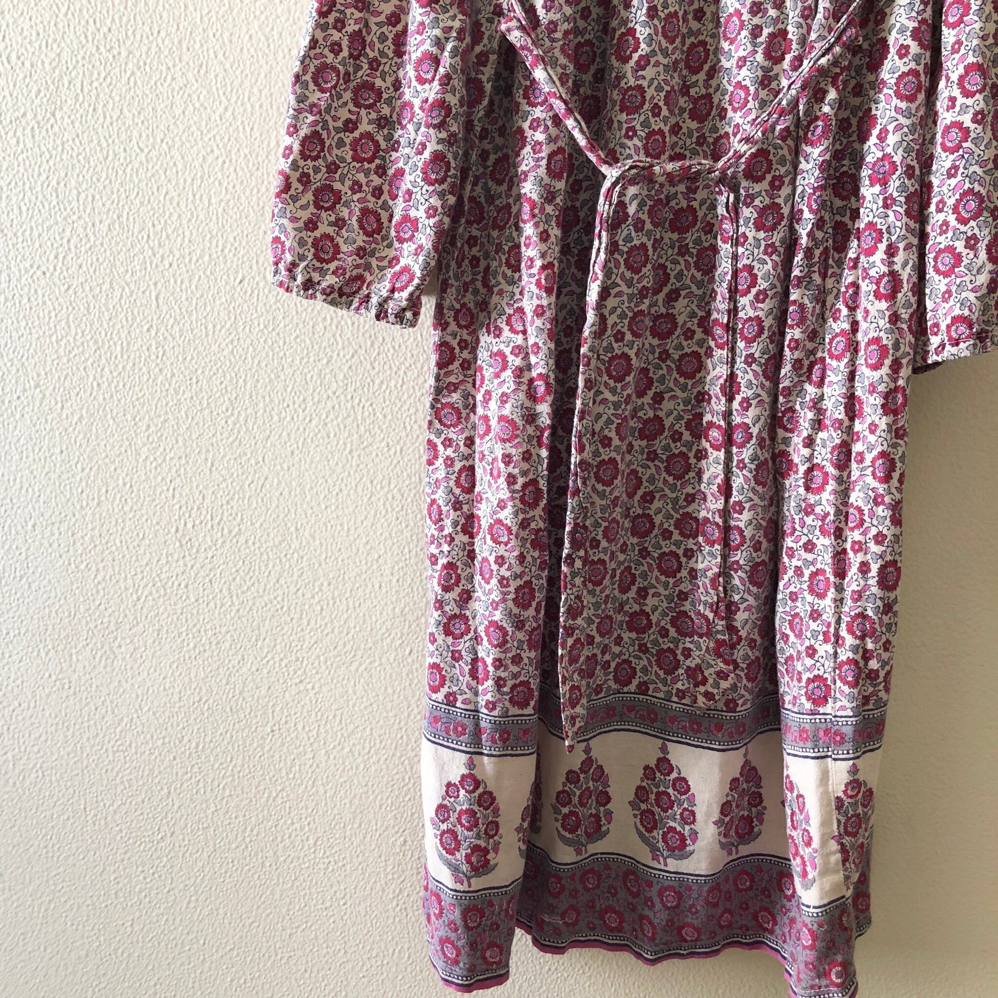 優しいピンクで柄もしつこくなく大人な着こなしができるワンピースです。