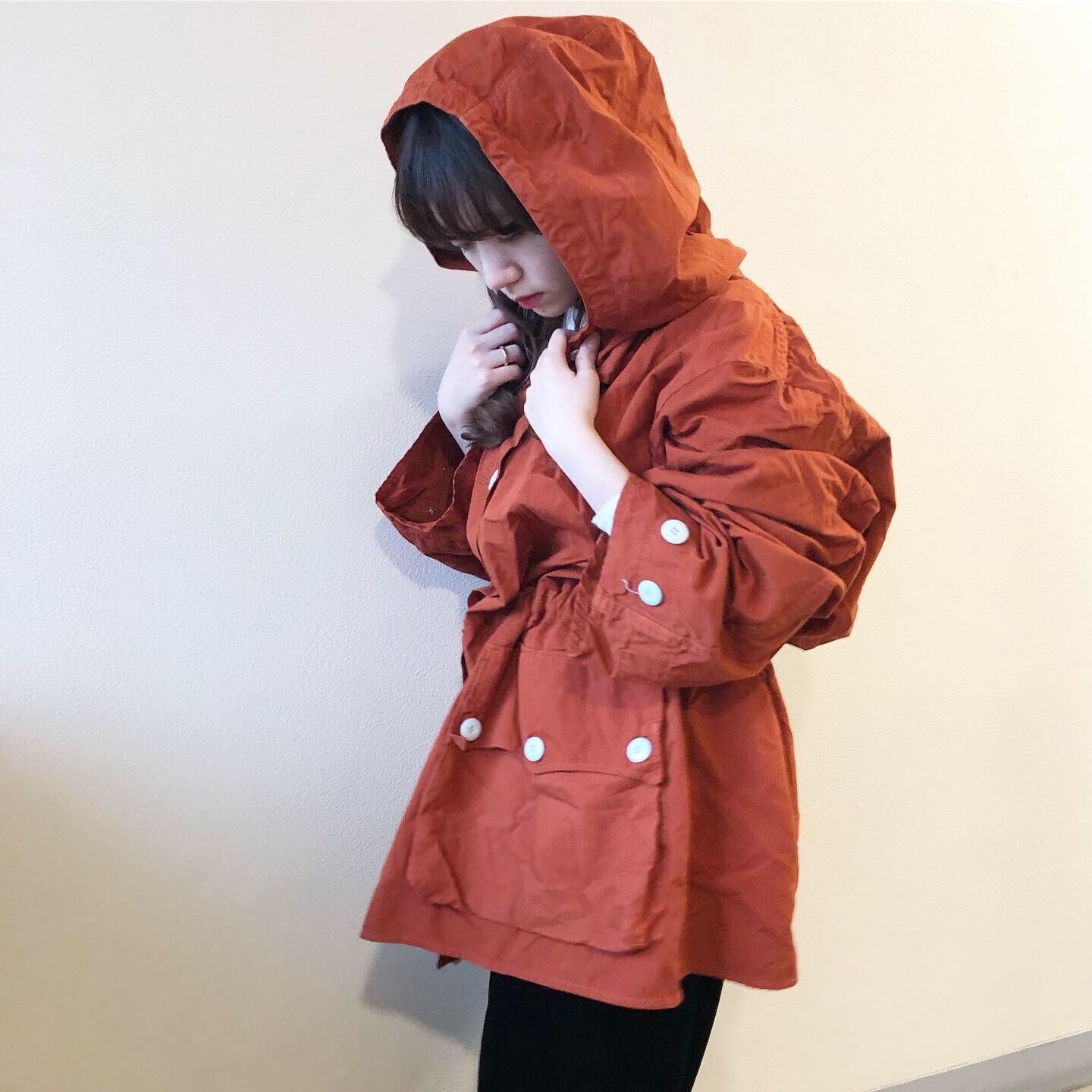 オーバーパーカーとなりますので大きく感じますが、女性の方でもウエスト部分のドローコードでボリュームを抑えたりと調整が可能です。