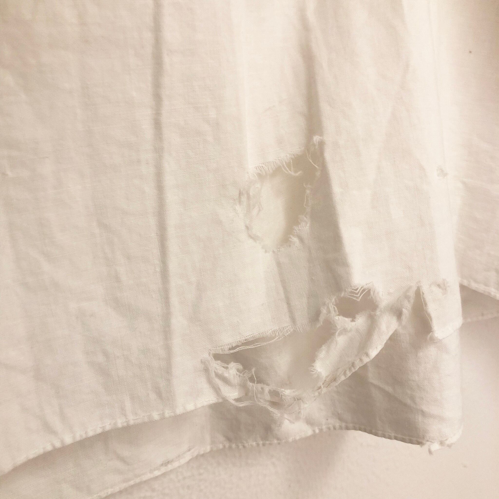 古いお洋服ですのでボタンの欠け、裾のダメージがございます。