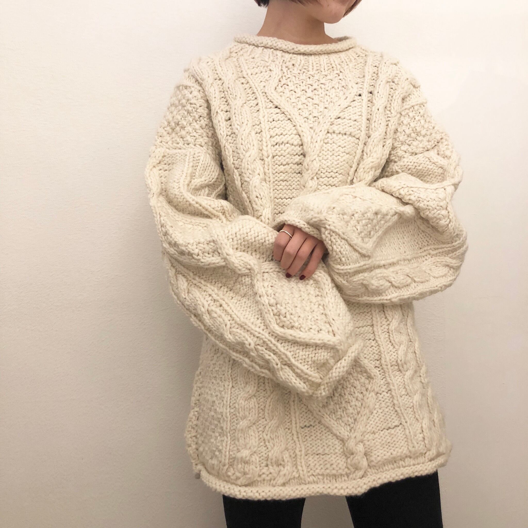 太い毛糸でずっしりとしており、オーバーサイズになりますのでこれ一枚でアウターとして着ていただけます。