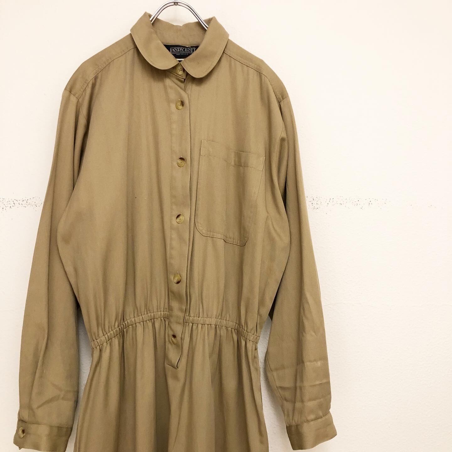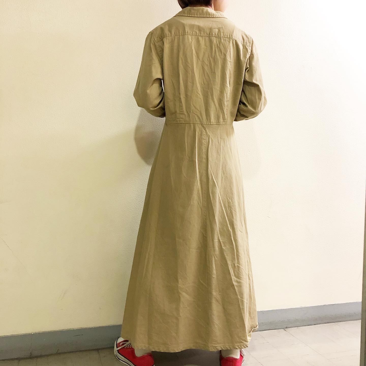ベージュカラーのワンピースは1枚あれば長いシーズン重宝するのでお勧めです。