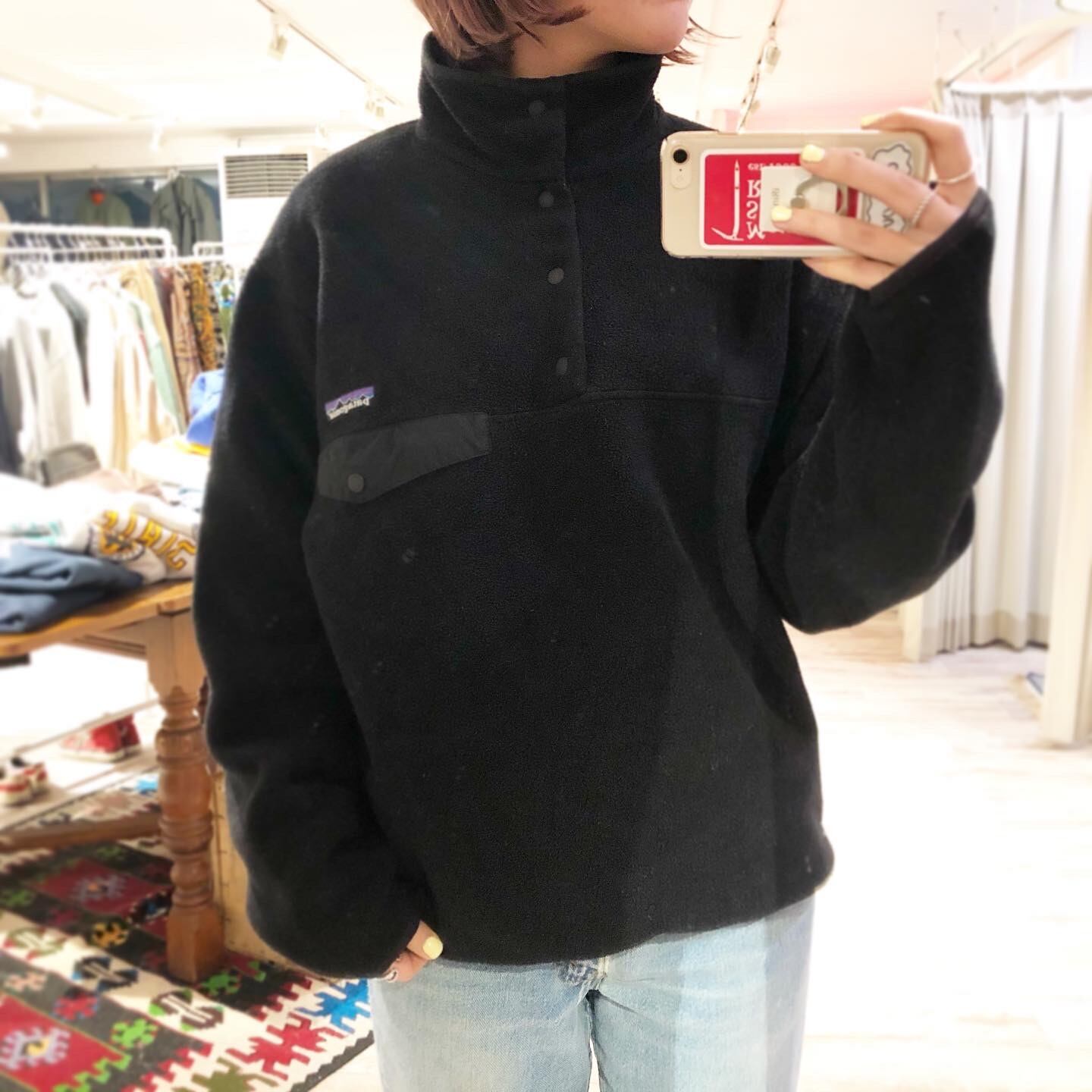 合わせやすいシンプルなブラックカラー。パイピングも同じ黒で統一感があります。メンズのSサイズなのでレディースの方ならゆとりを持って着ていただけます。