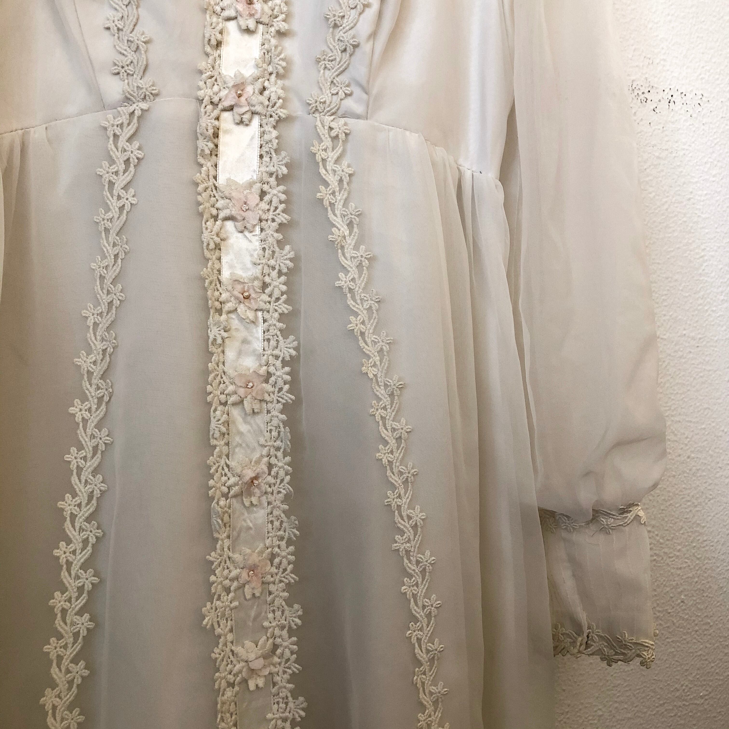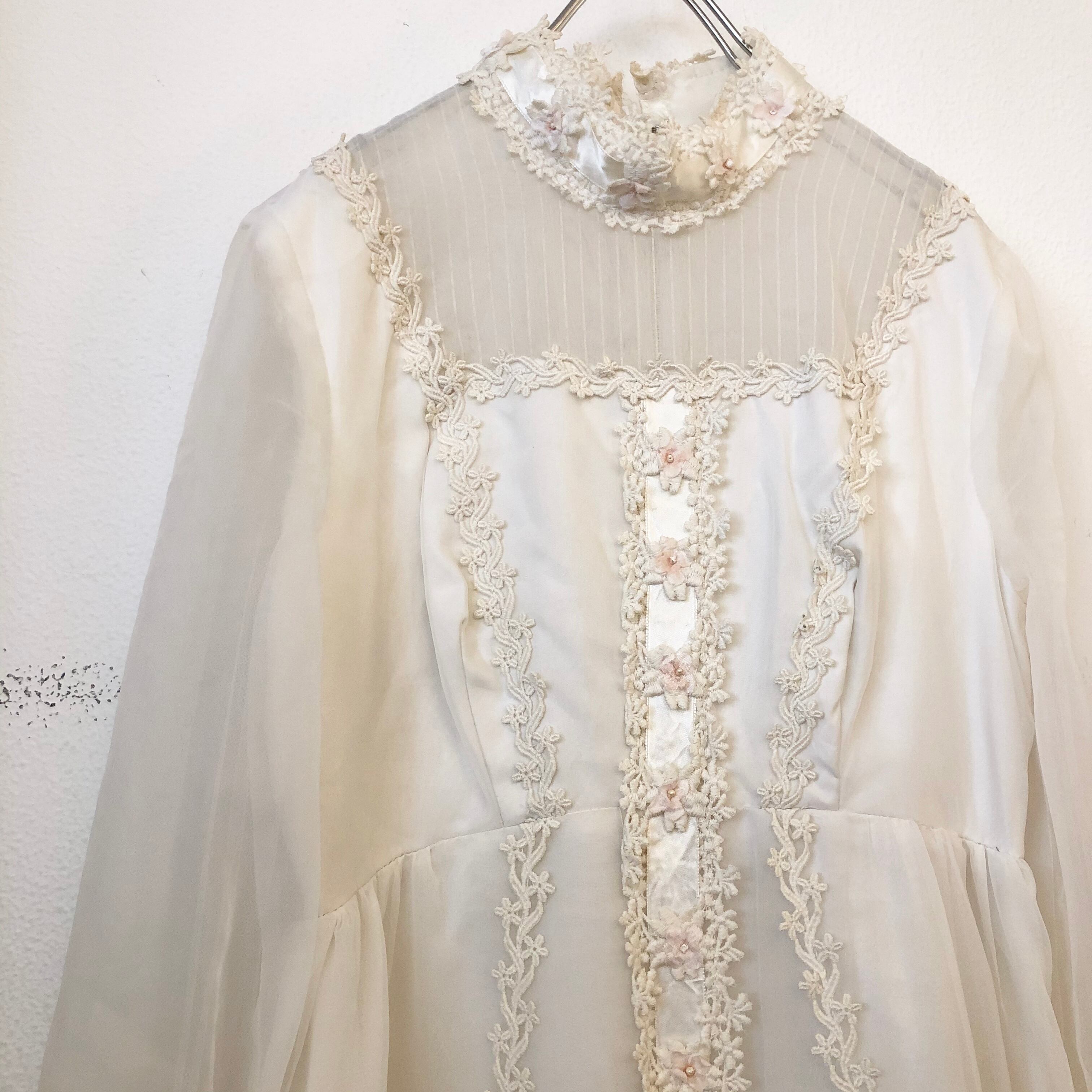 首元と真ん中にはお花の装飾が施されており、細部まで拘っている可愛らしいドレスです。