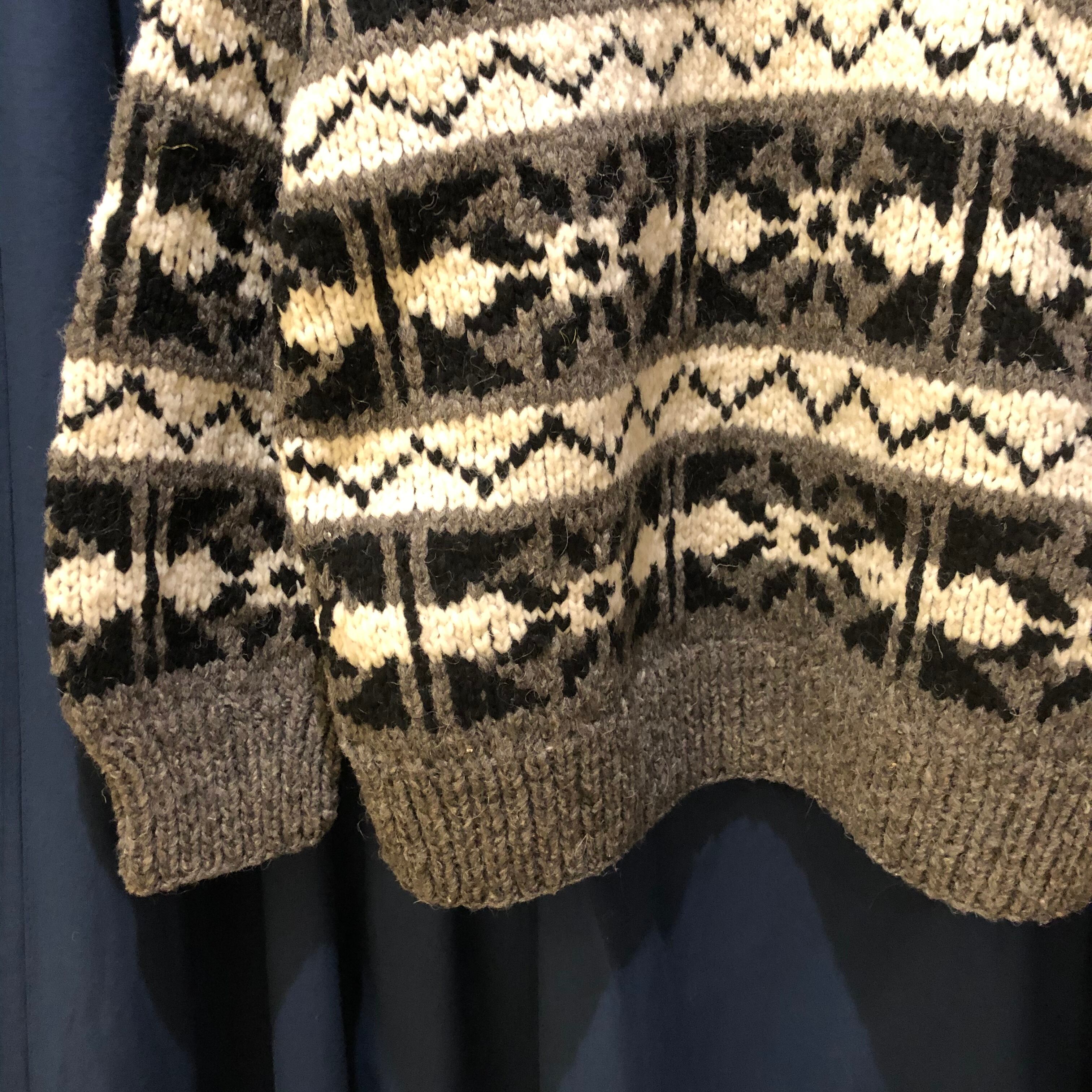 太い毛糸でしっかりと編まれ、厚みのあるニットなので薄手のアウターでも暖かく着ていただけます。