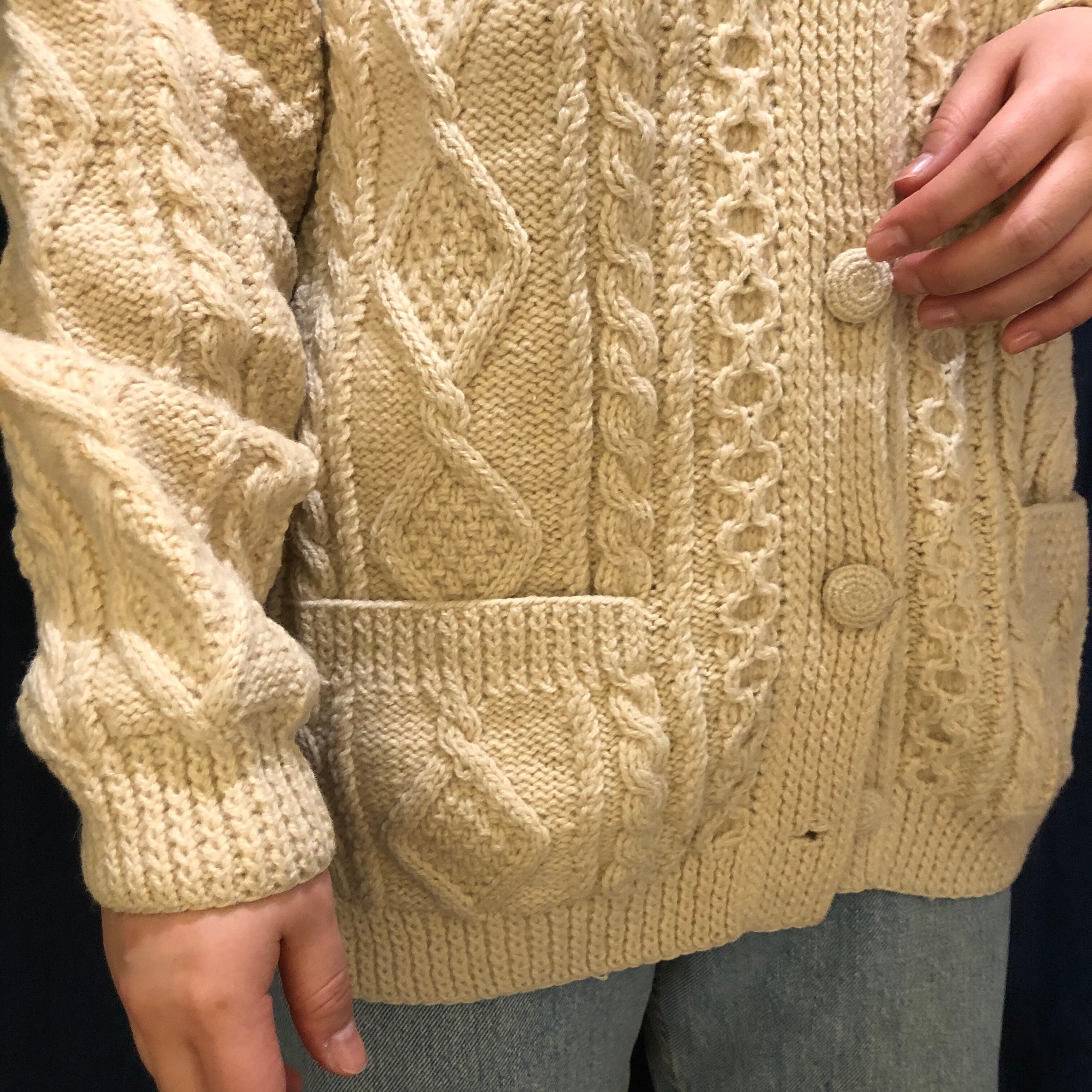 ダイヤ柄やケーブル編みもしっかりと立体的に編まれ、可愛らしい1着です◎