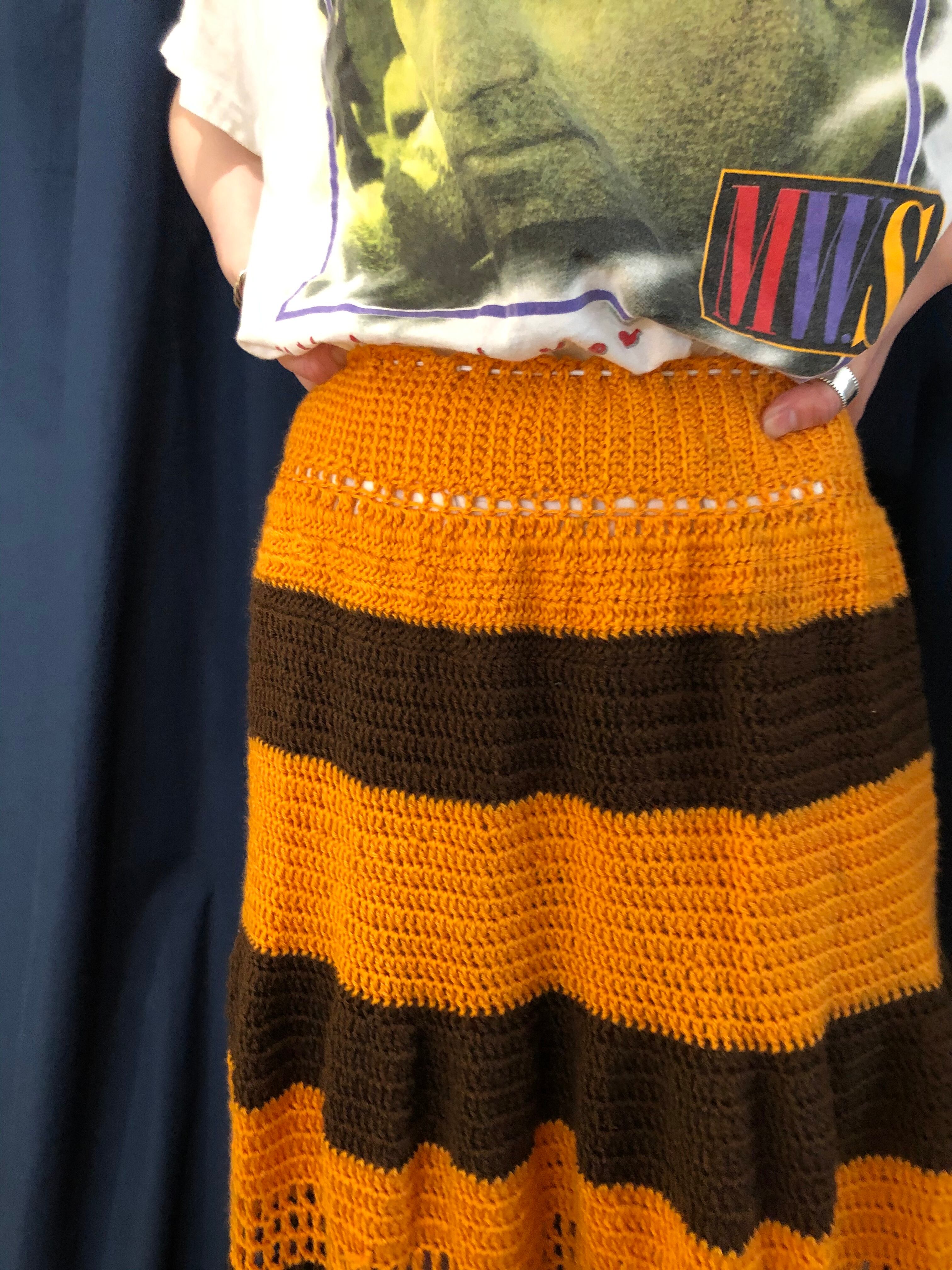 今期トレンドのクロッシェ編み。usedのマルチカバーなどでは良く見かけますが、古着のスカートでは中々出ないアイテムです。