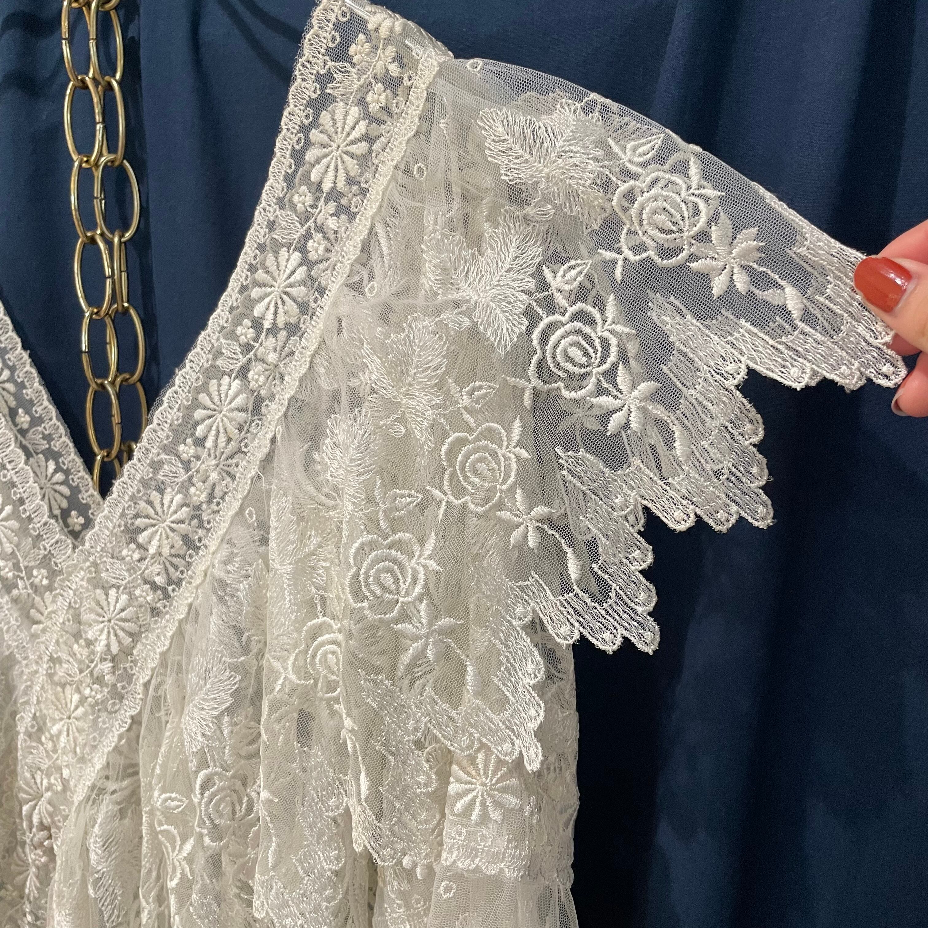 細やかな刺繍が入ったレースをふんだんに使用したブラウス。