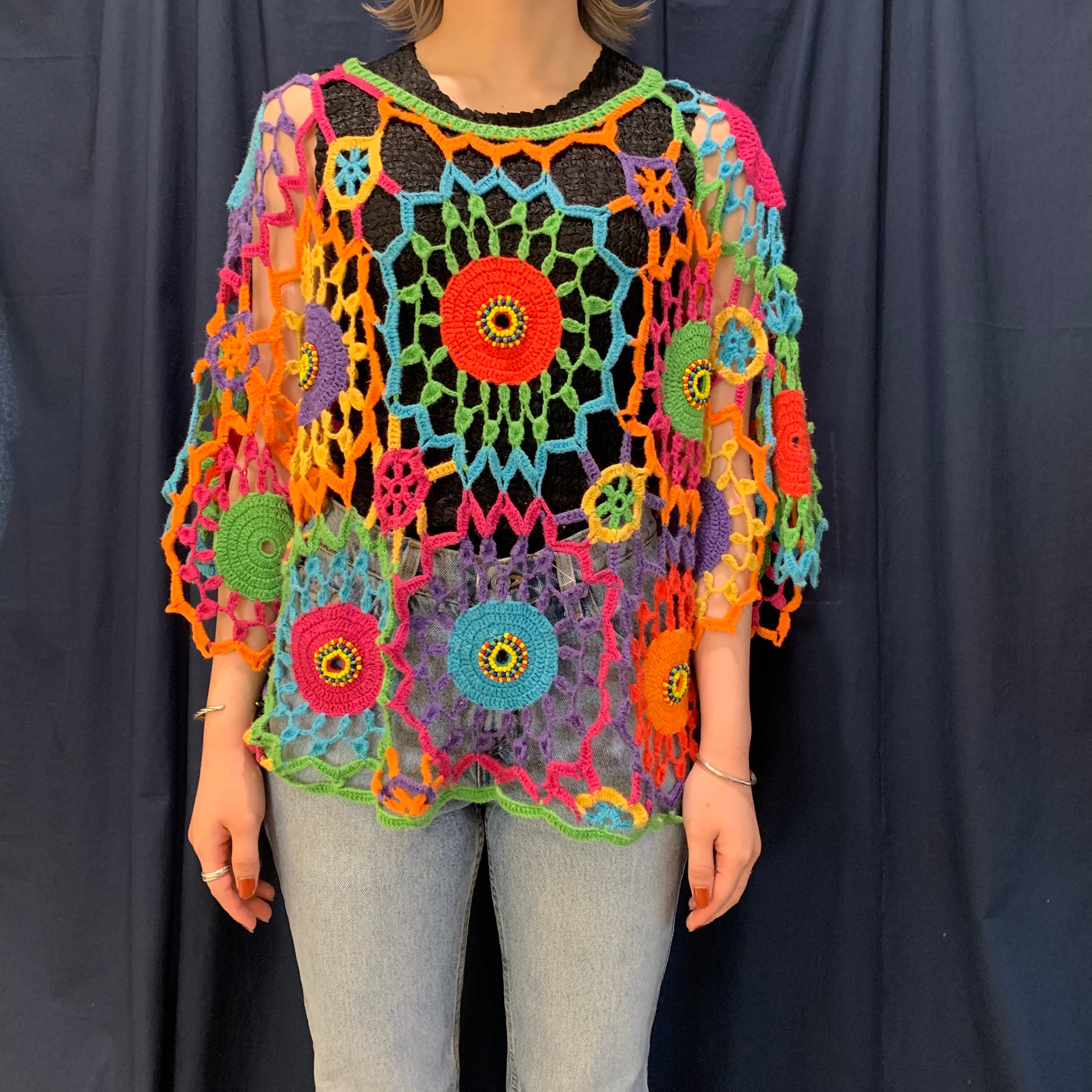 カラフルな色使いが可愛らしいクロシェトップス