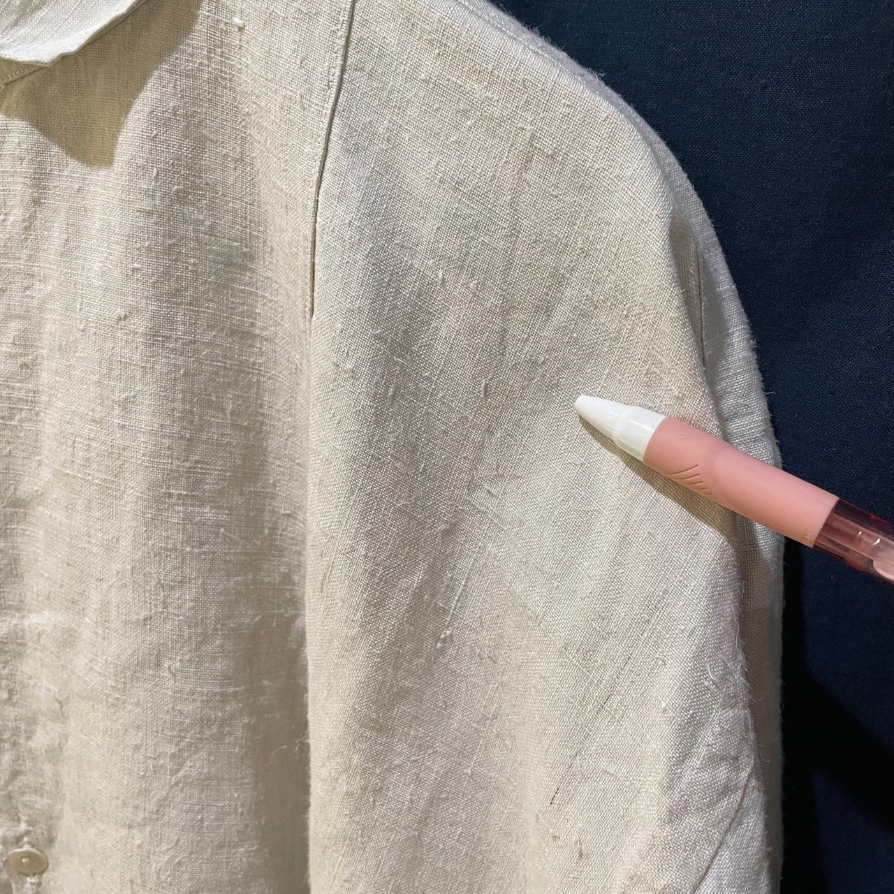 リネンのシャリ感、生成り色が雰囲気のある一枚。