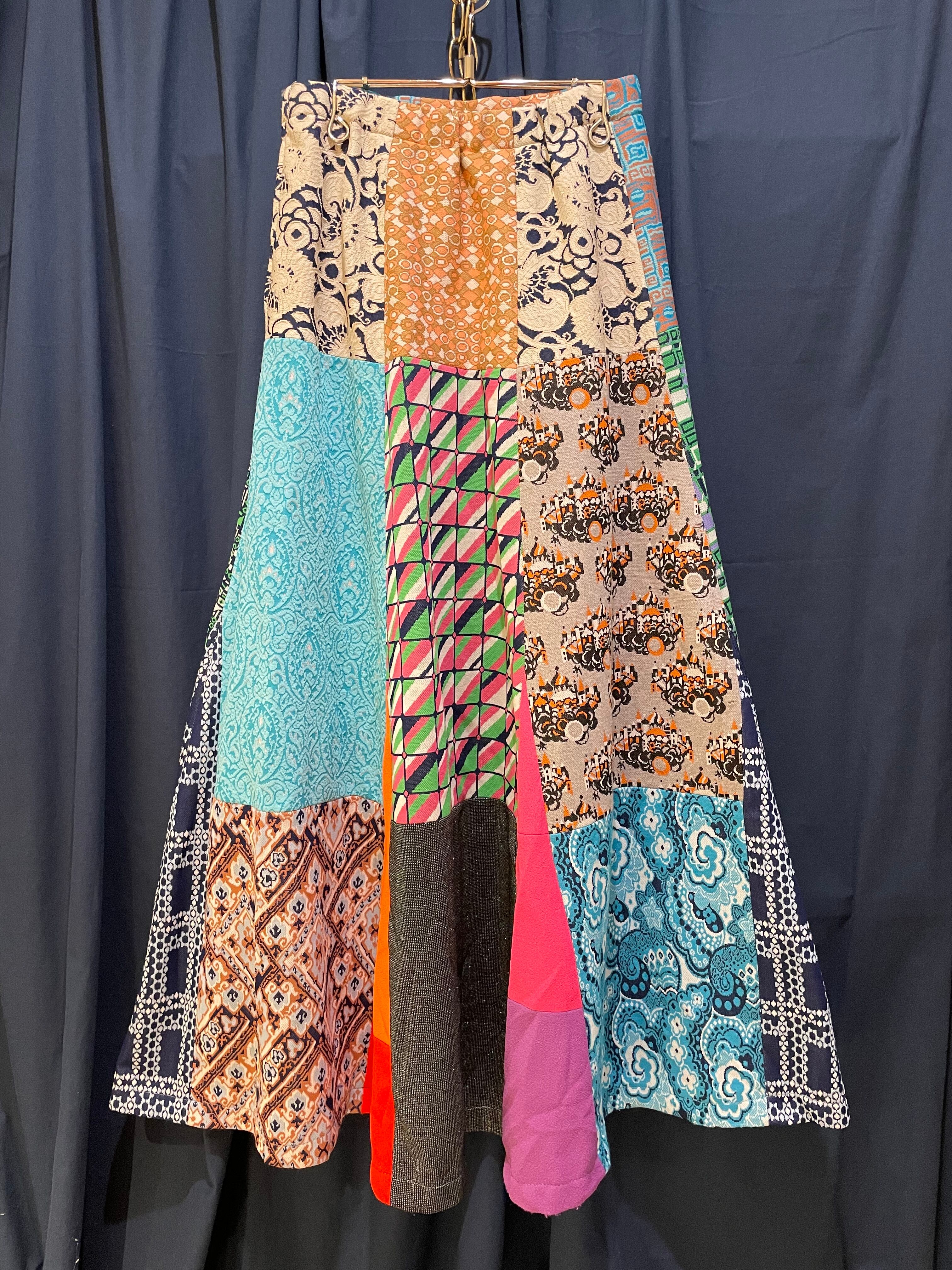 何パターンもの柄を合わせ、Aラインのフレアシルエットに作られたこちらは唯一無二のスペシャルなスカート!