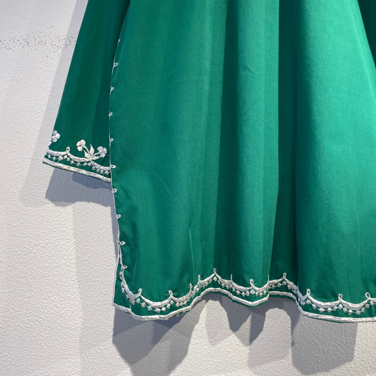 製の鮮やかなグリーンに白の刺繍が映えるチュニックシャツです。