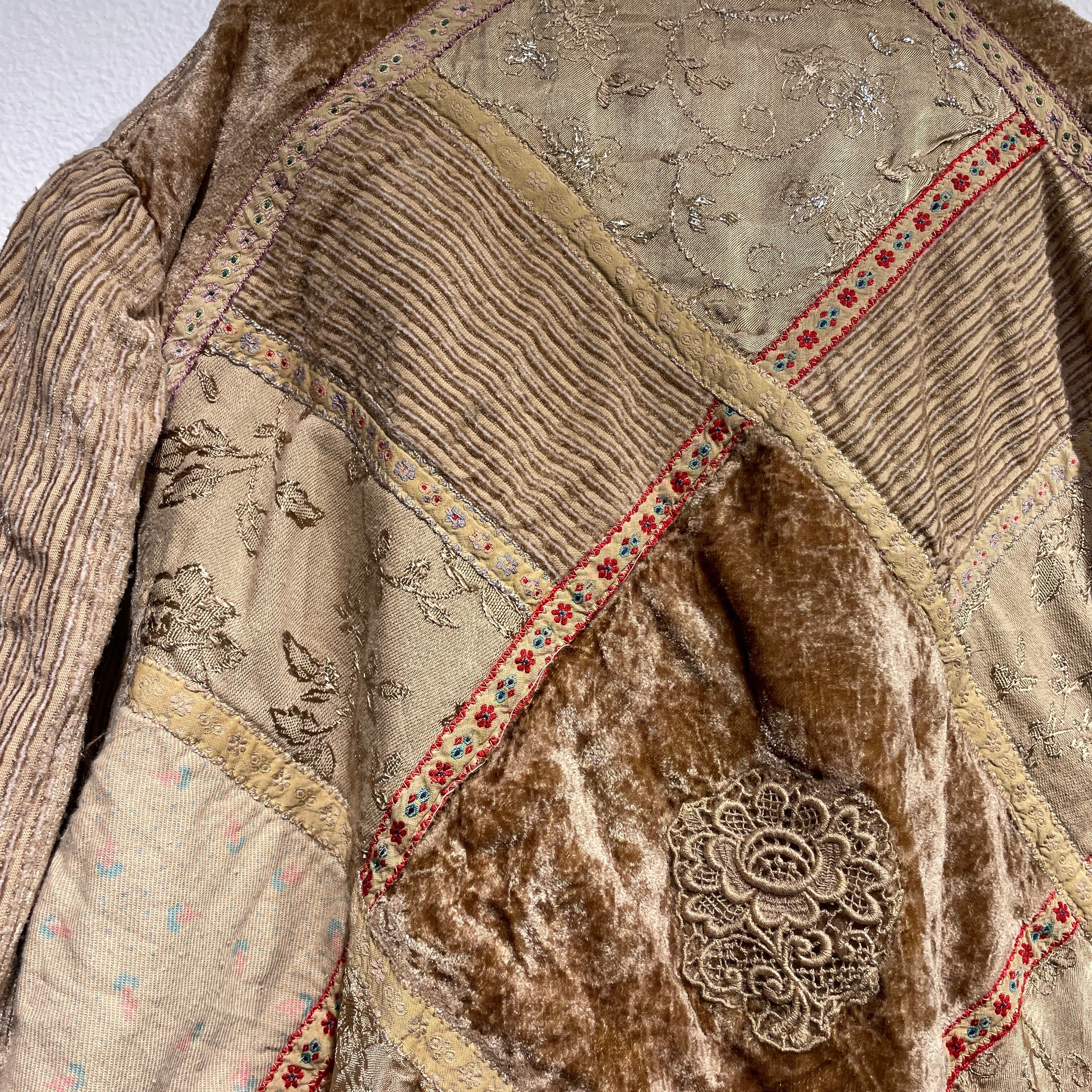 ベロアや刺繍などデザイン製たっぷりのパッチワークカーディガンです。
