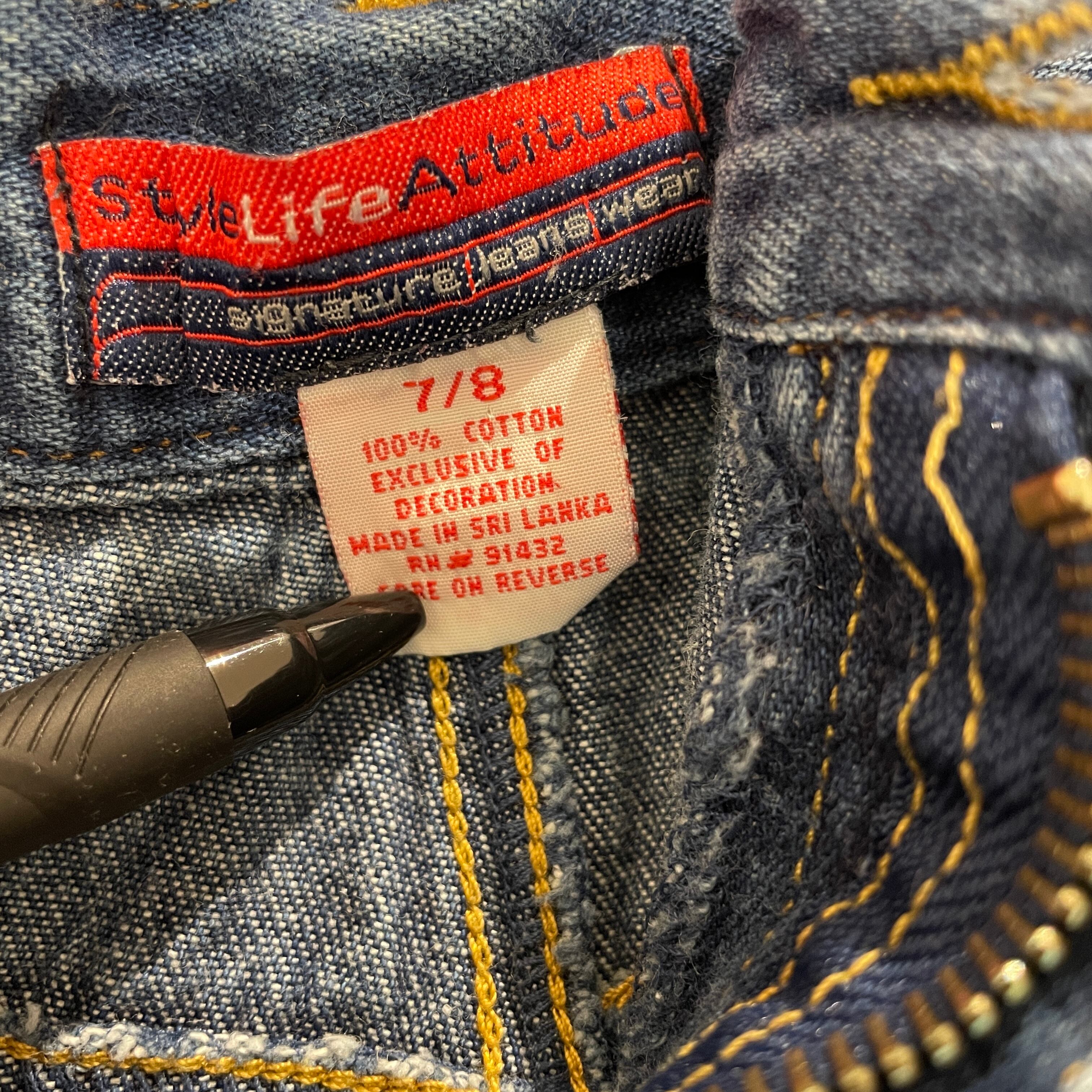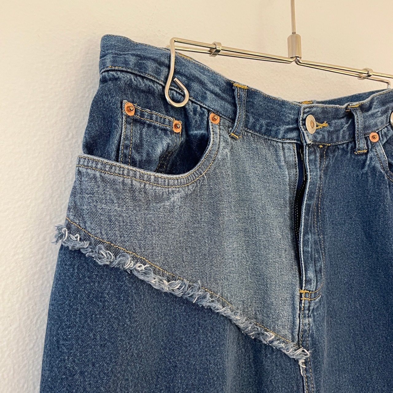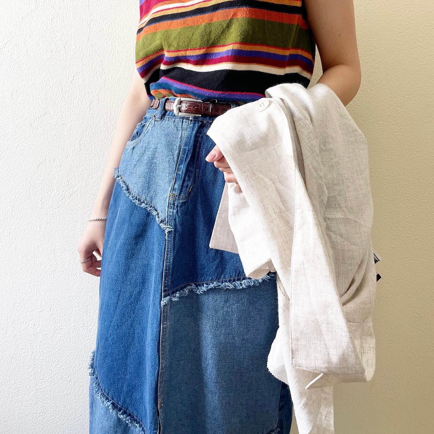 デニムのフリンジがステッチ部分にチラッと可愛い。