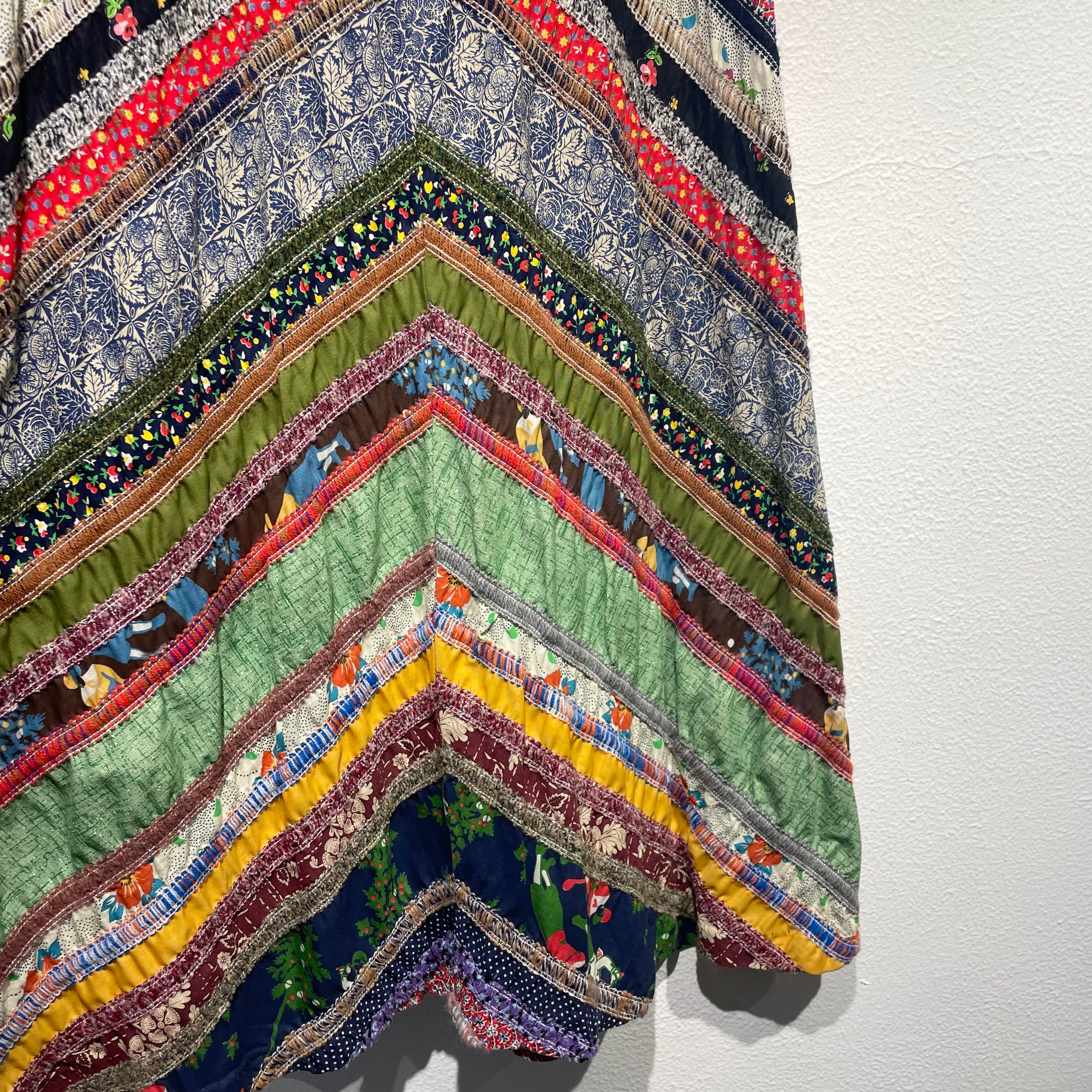 細かいパッチワークがかわいいvintageスカート。