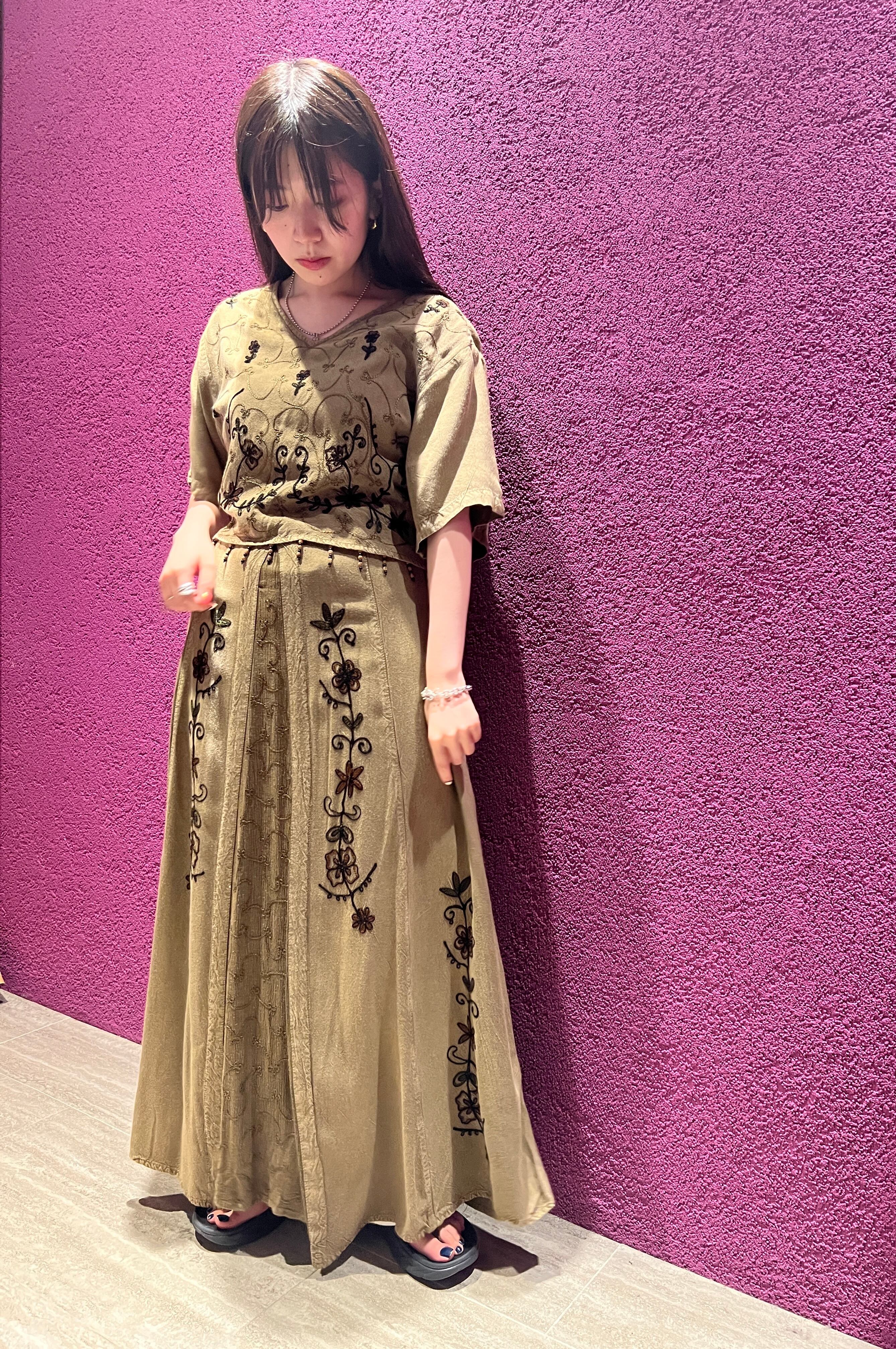 フロント中央についたビーズのアクセントが可愛らしい一着です。
