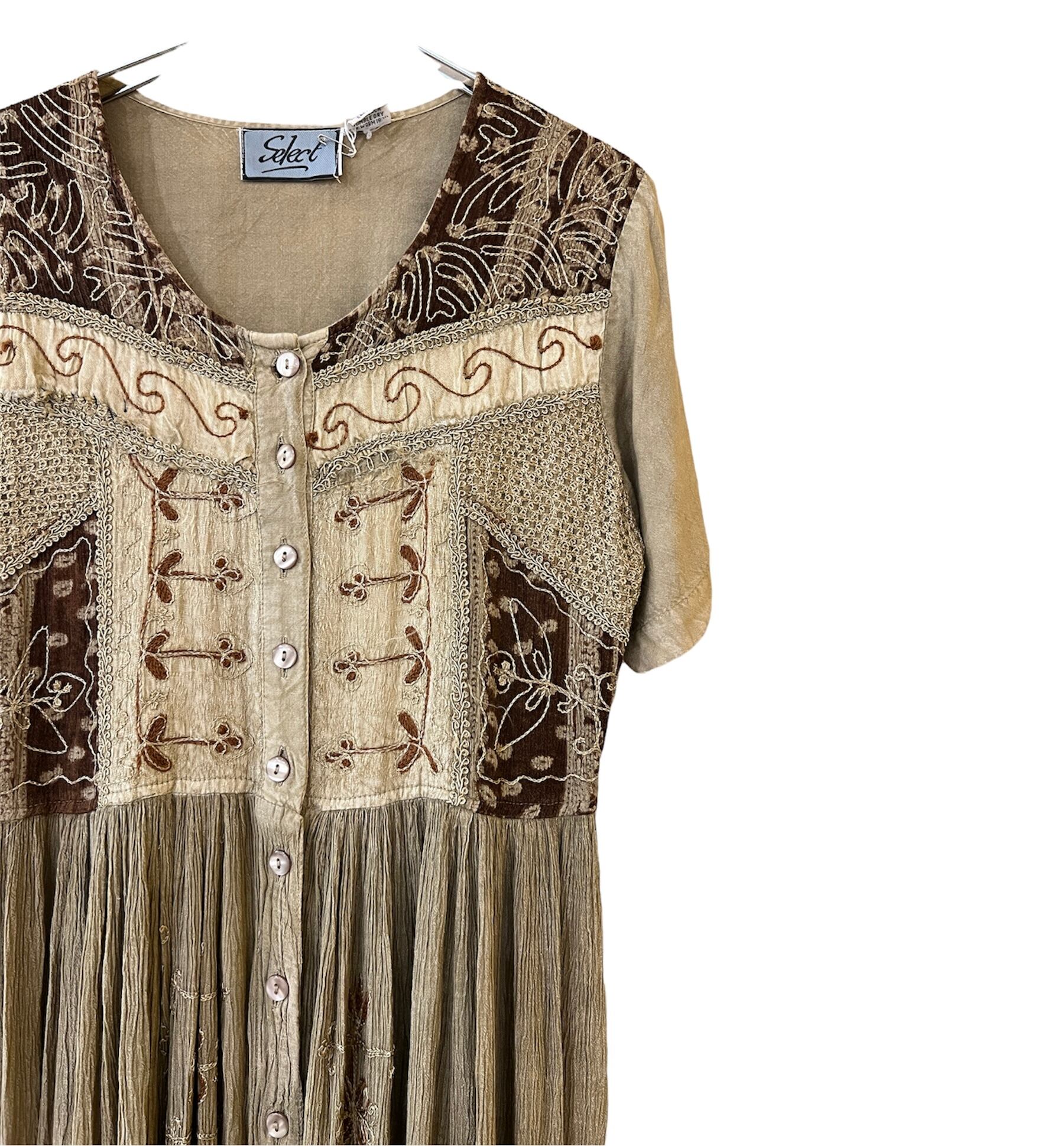 落ち着いたカラーリングのデザインワンピース。