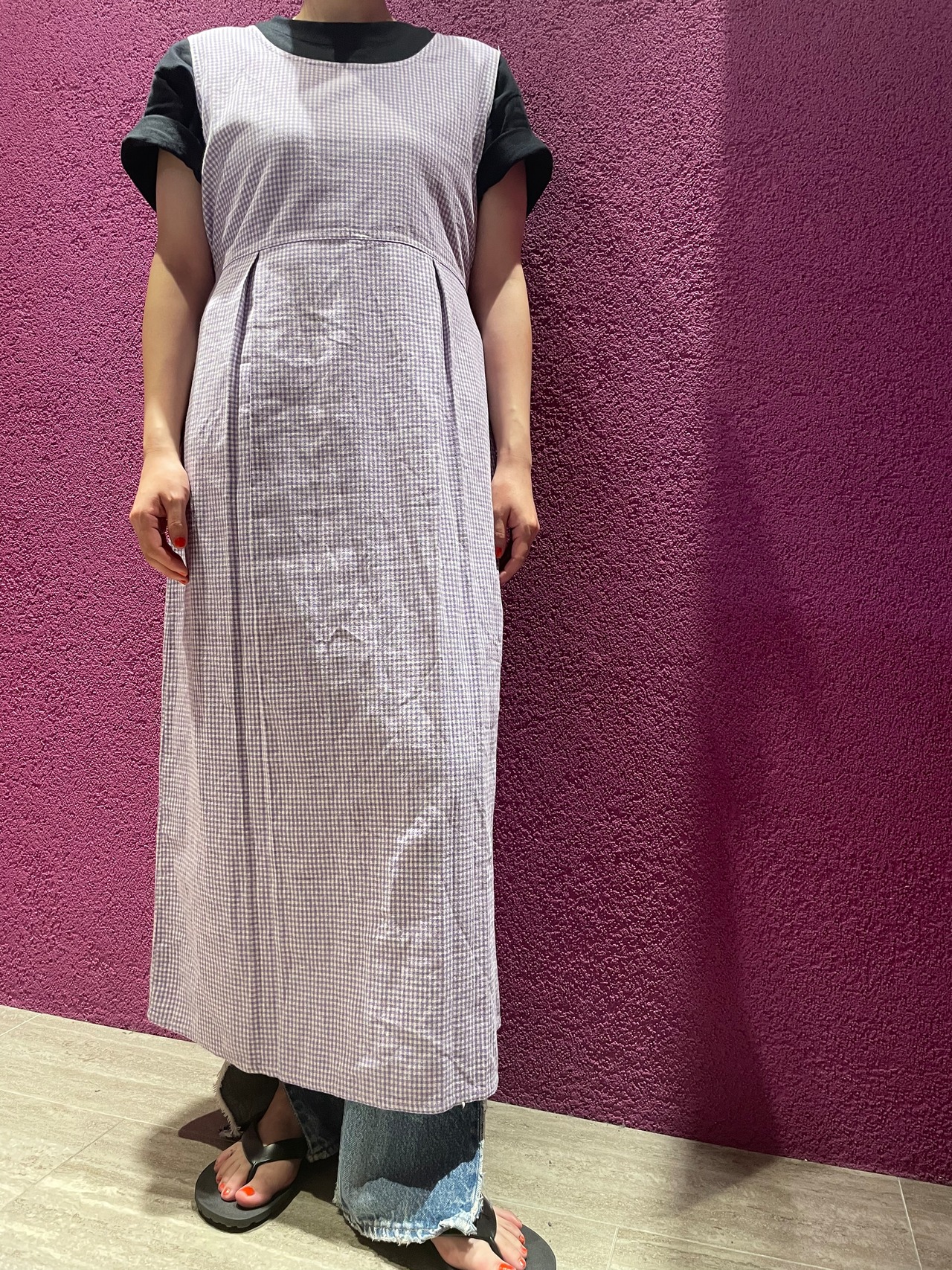 前にはタック、後ろにはスリット入りでさらりと着心地のよいワンピースです。