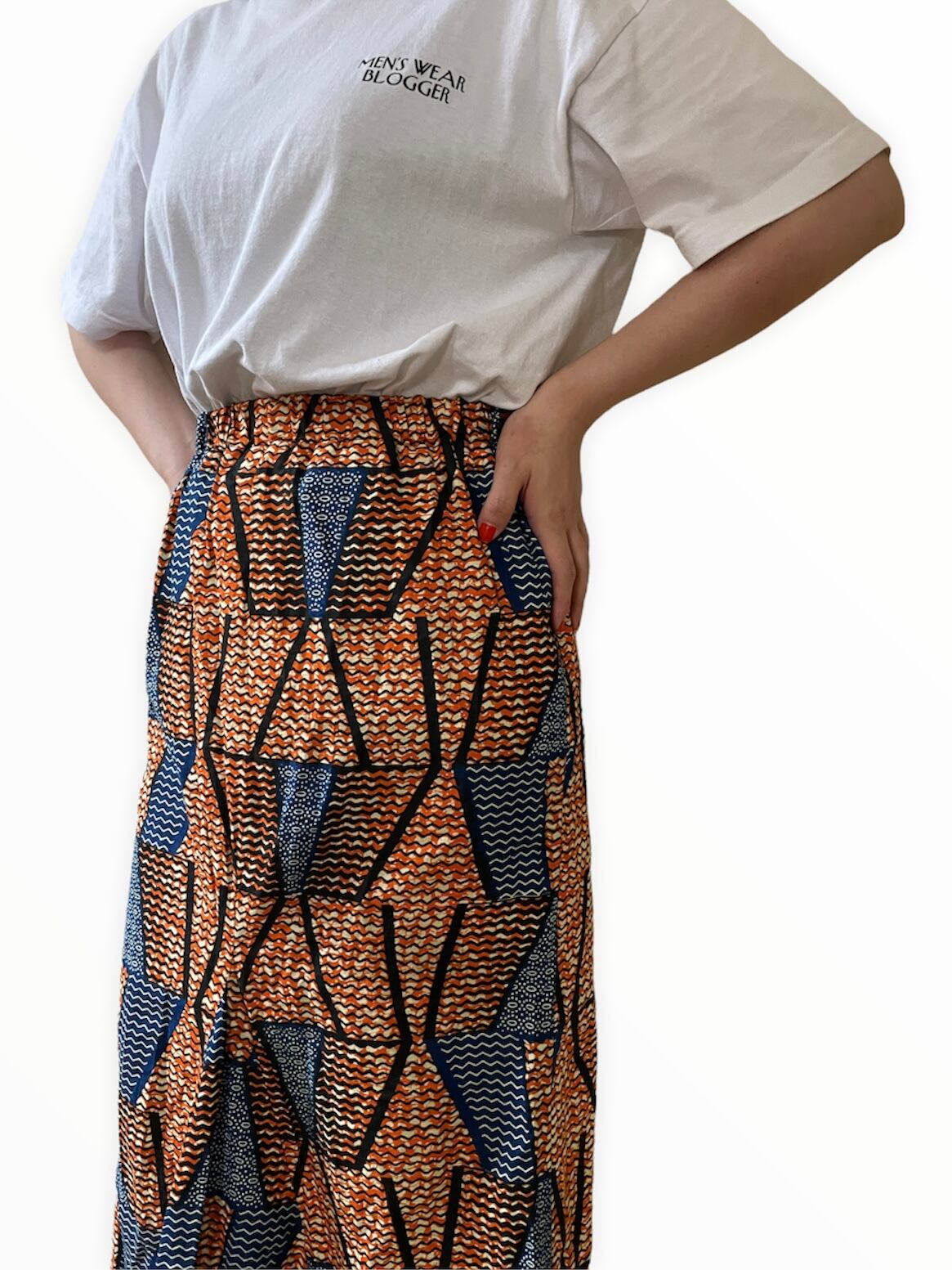 ストレートシルエットですが裾のセンター部分に切り替えがあるので裾部分にほんのりフレアが。